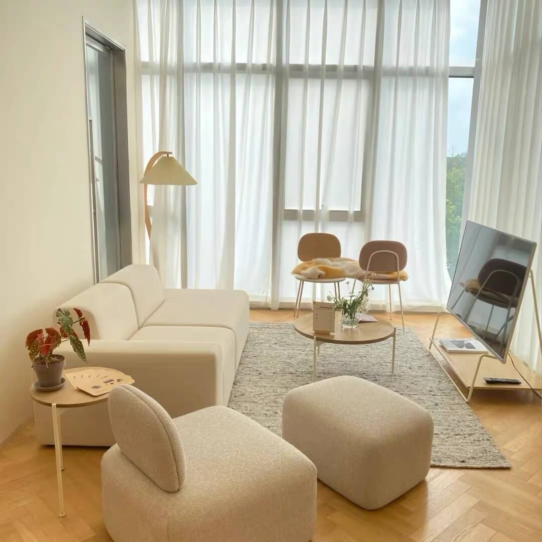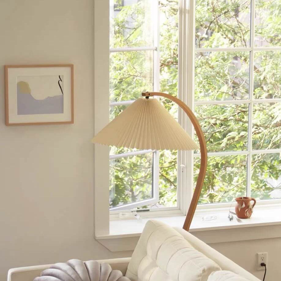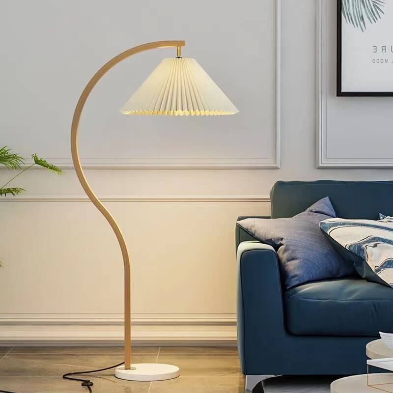Japanese Minimalist Pleated Fabric Curved Iron 1-Light Standing Floor Lamp