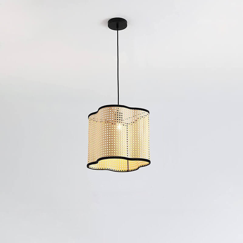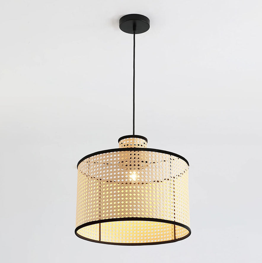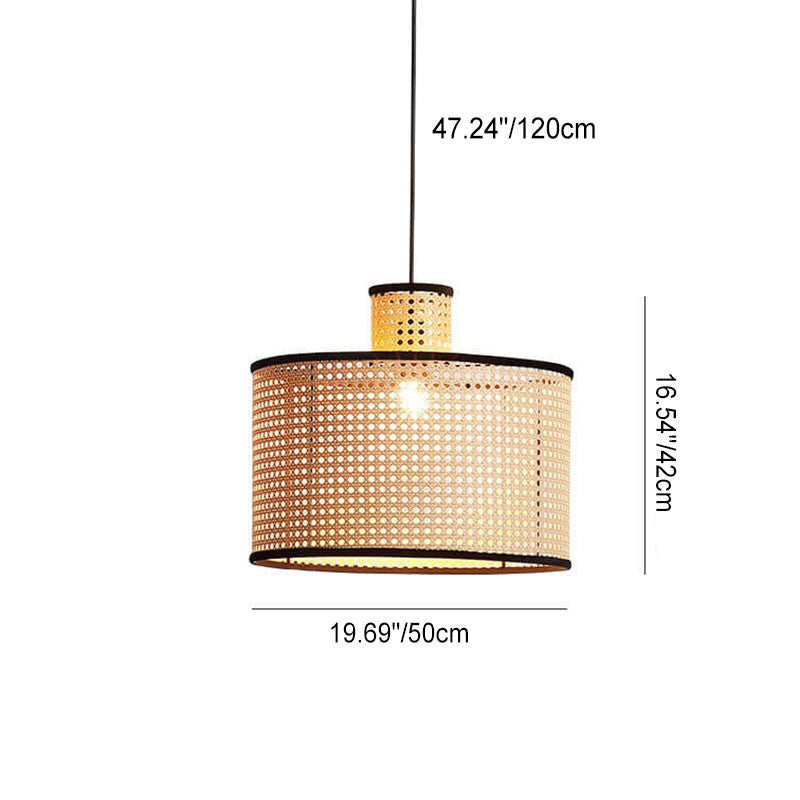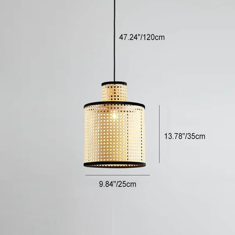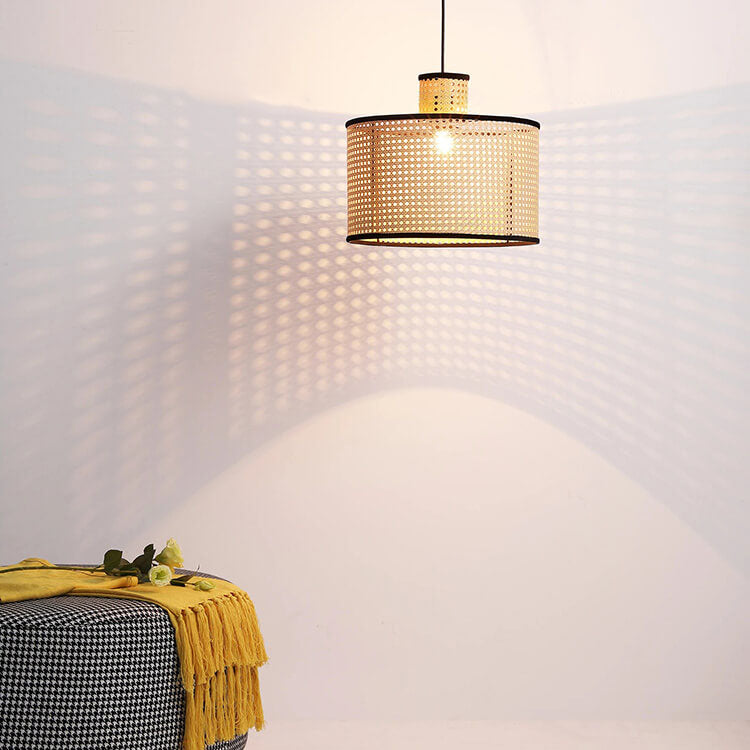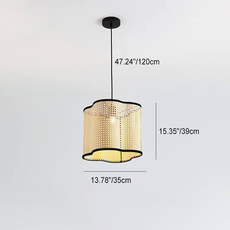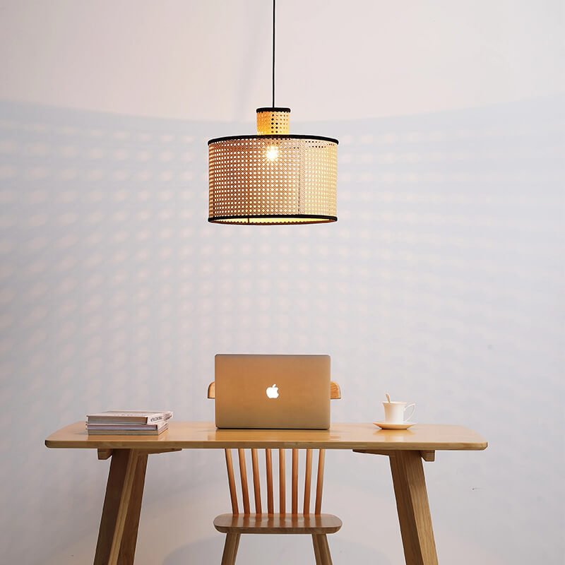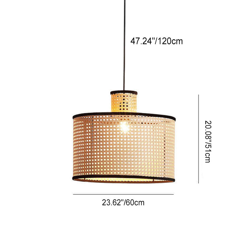 Japanese Minimalist Round Plum PVC Rattan 1-Light Pendant Light