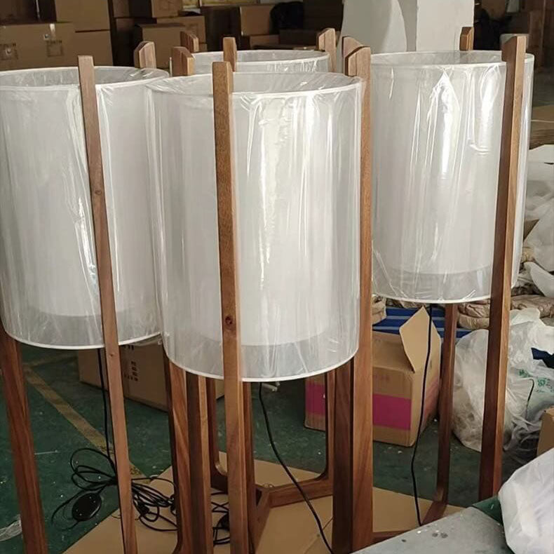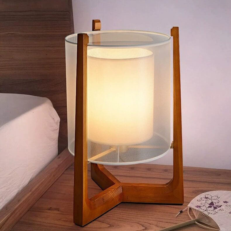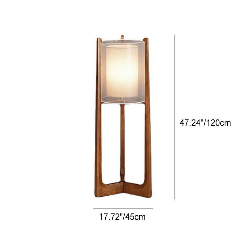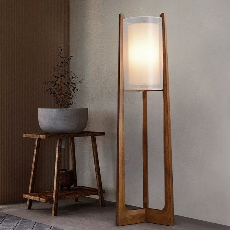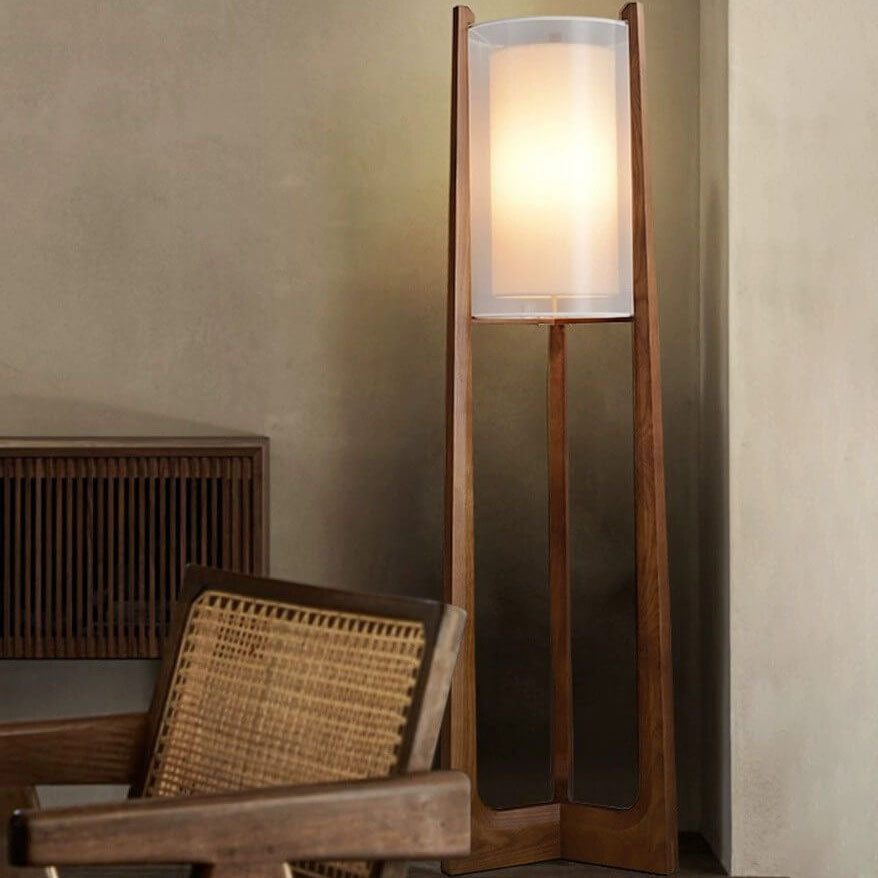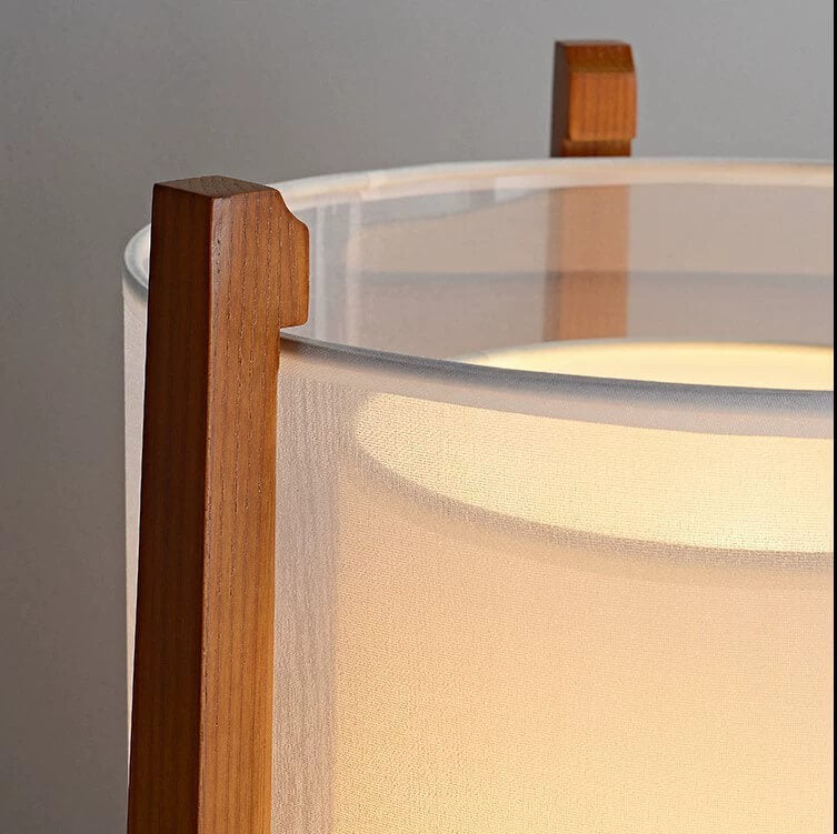 Japanese Minimalist Solid Wood Fabric Column 1-Light Standing Floor Lamp
