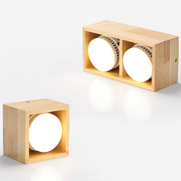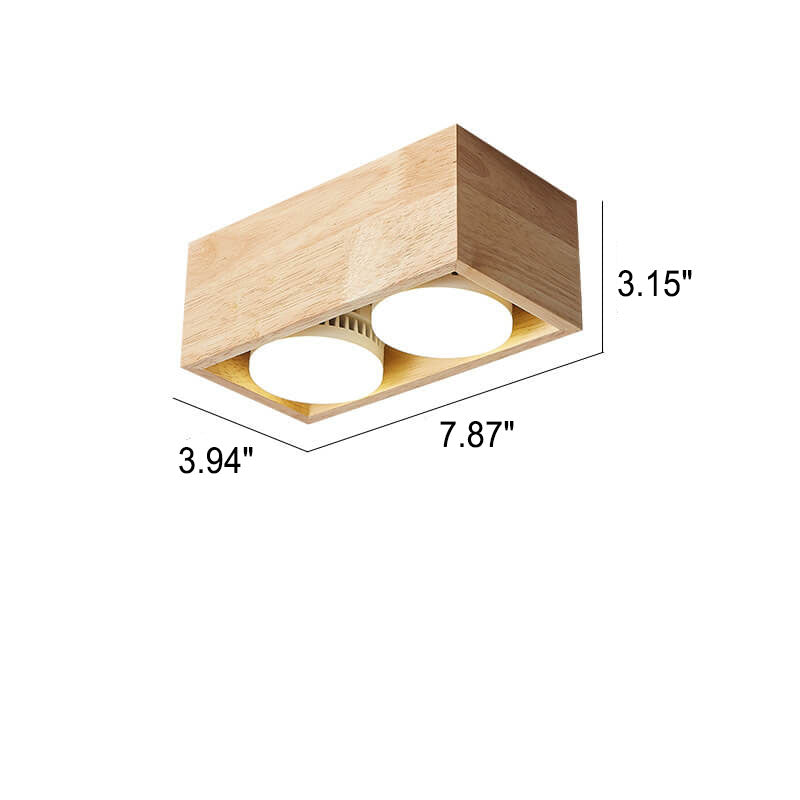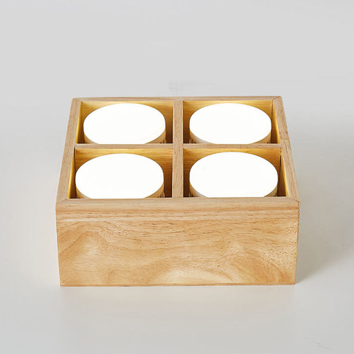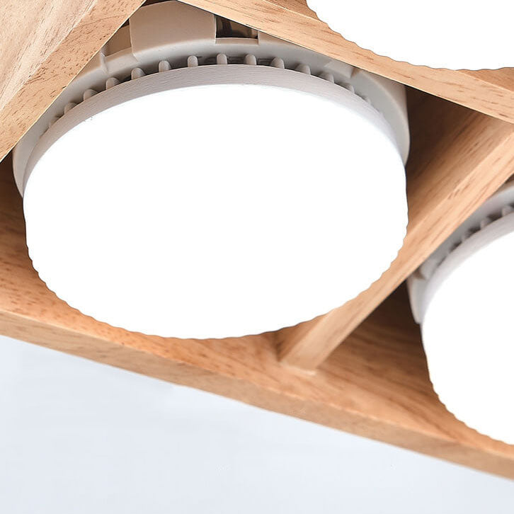 Japanese Minimalist Square Solid Wood Spotlight LED Flush Mount Ceiling Light