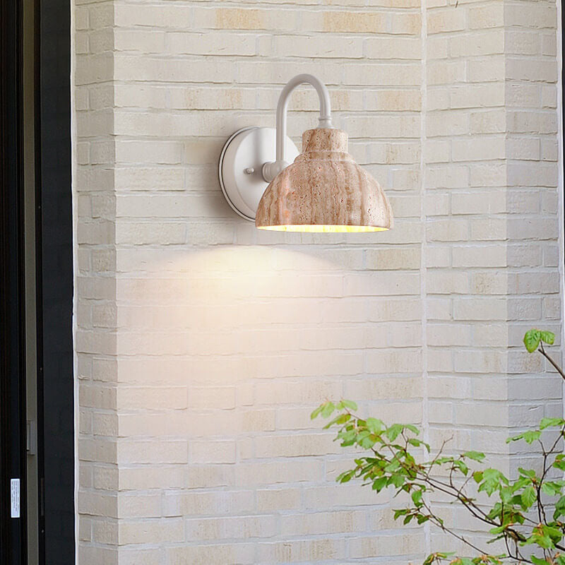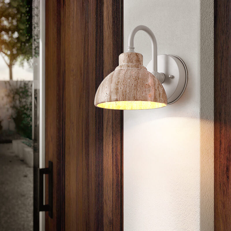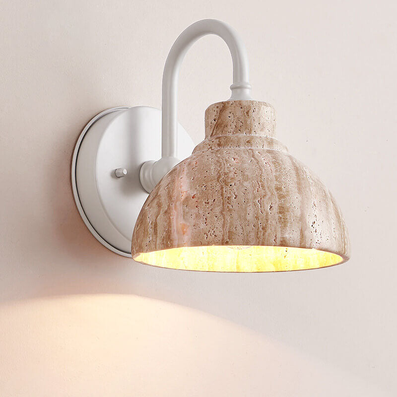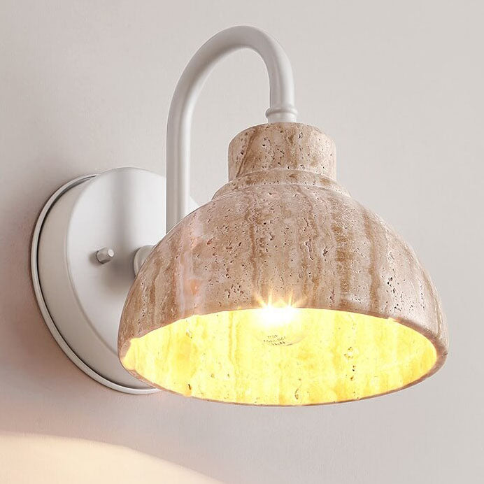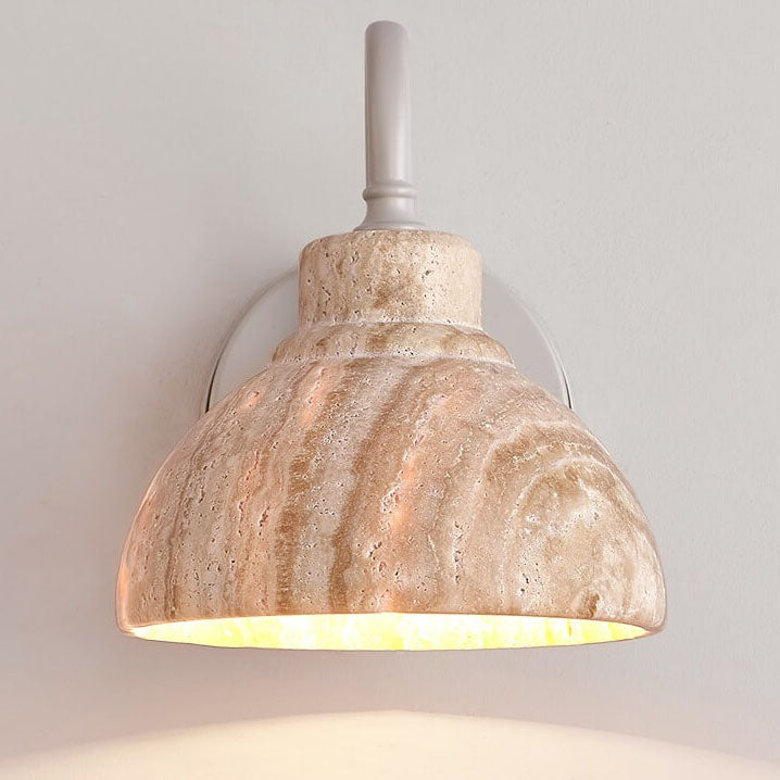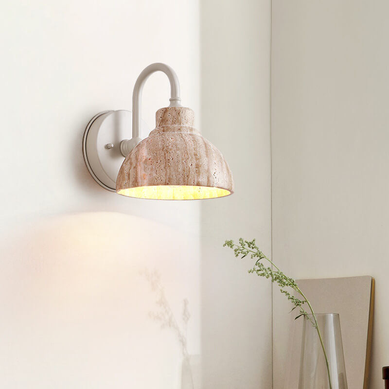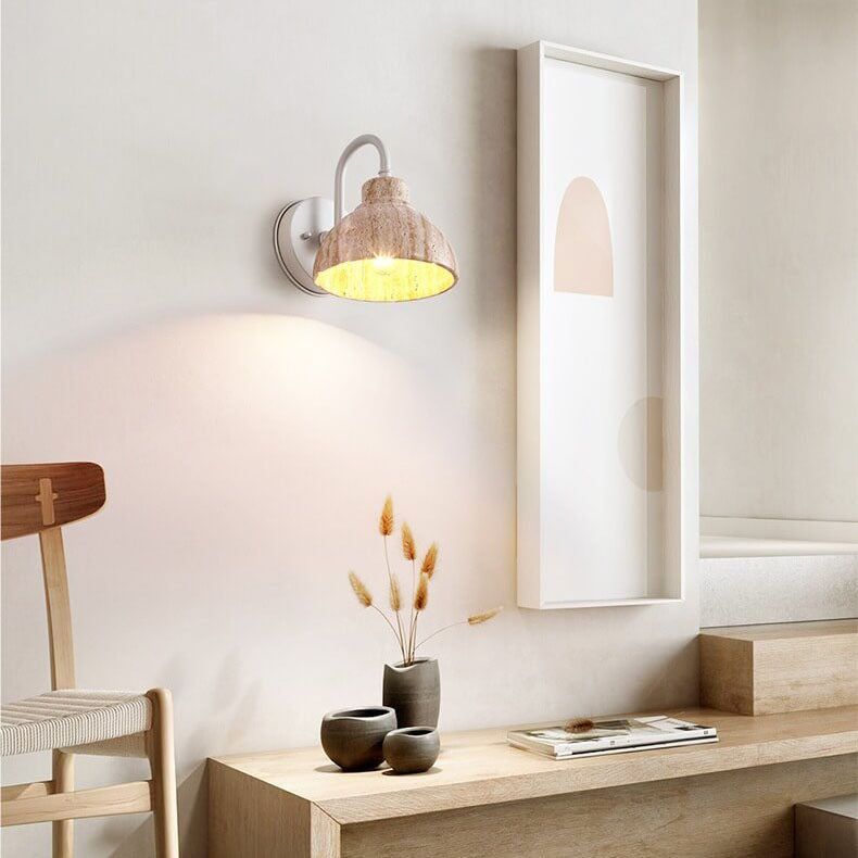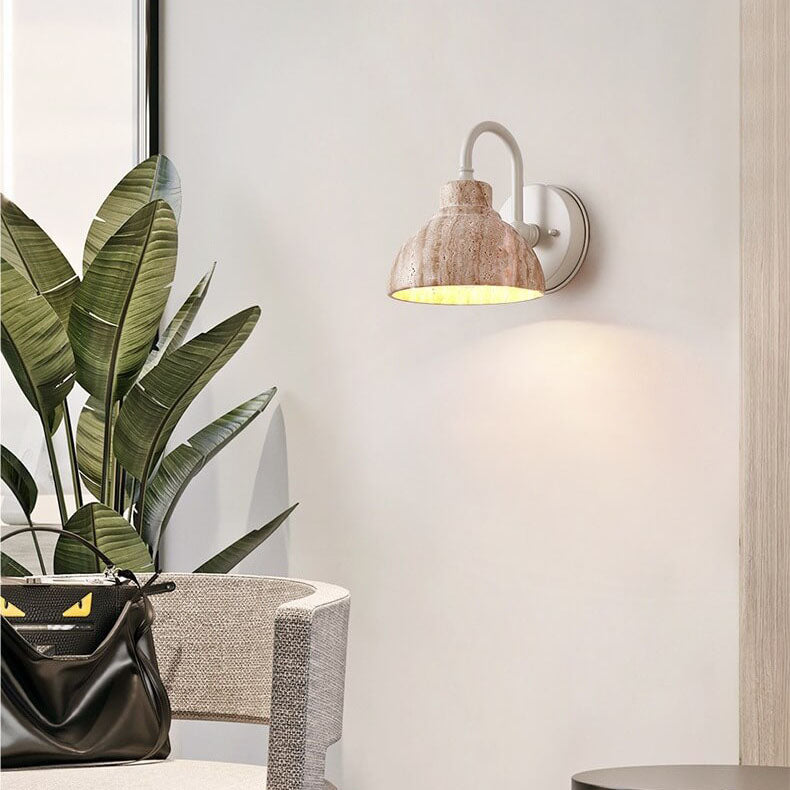 Japanese Minimalist Yellow Travertine Bowl Shape 1-Light Wall Sconce Lamp