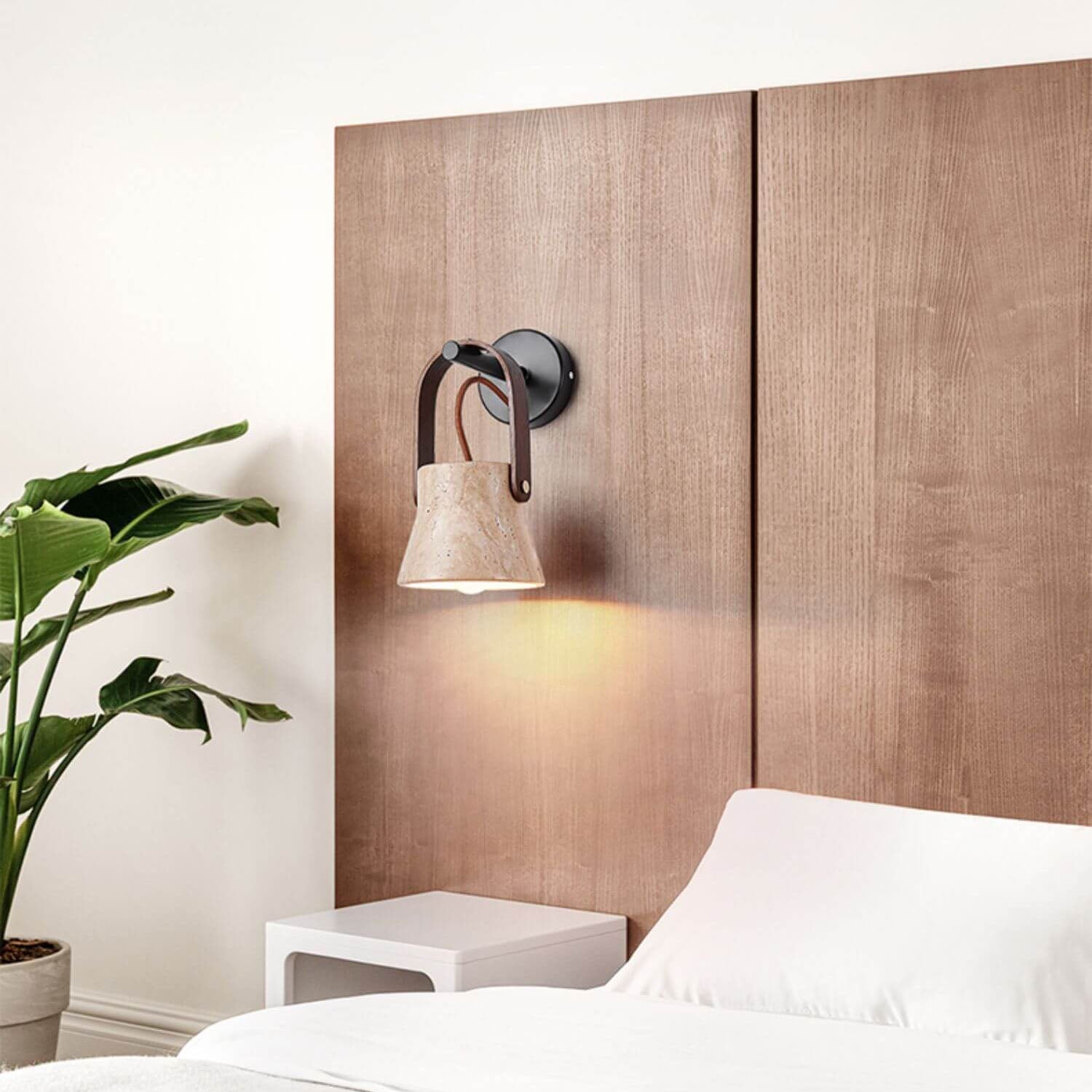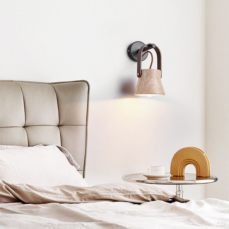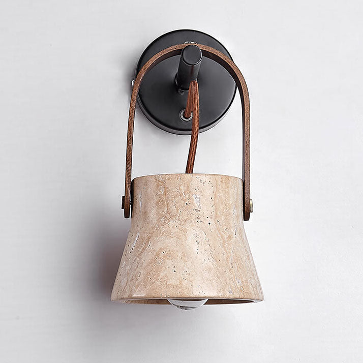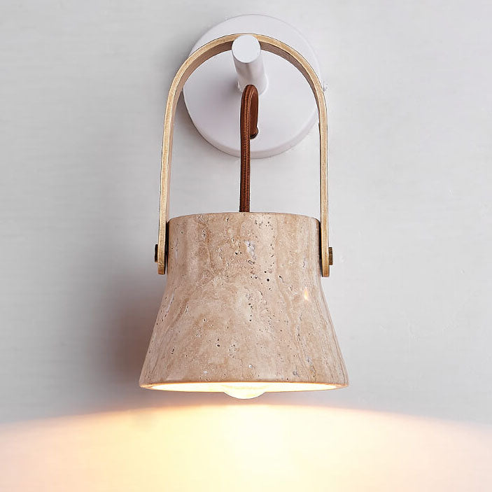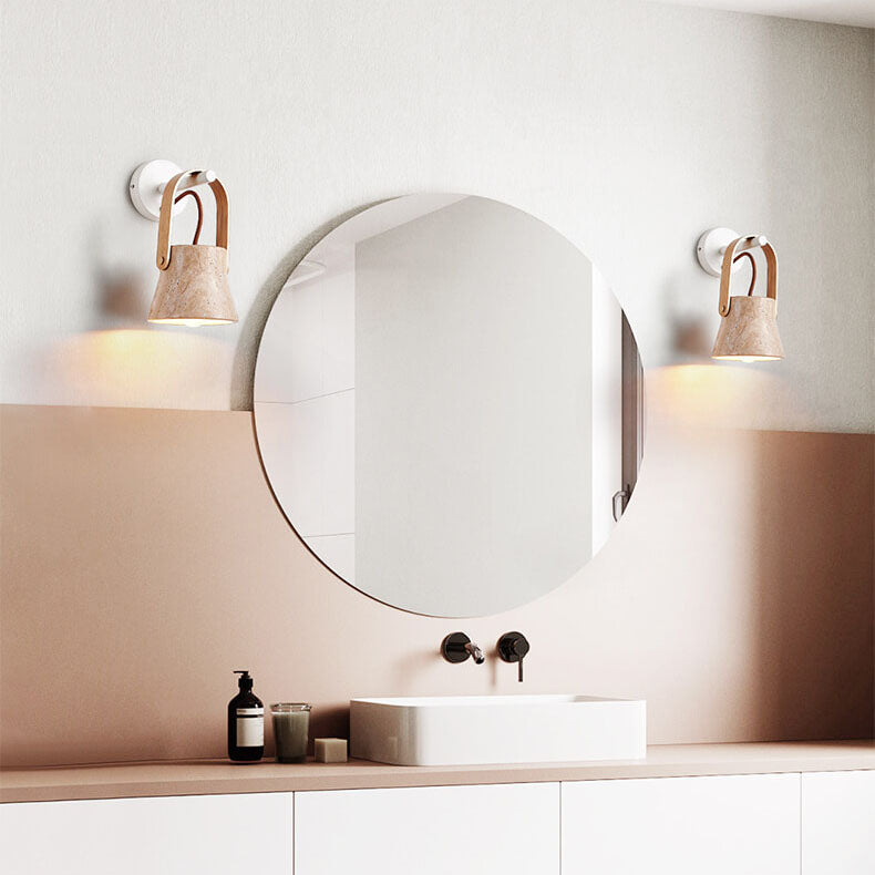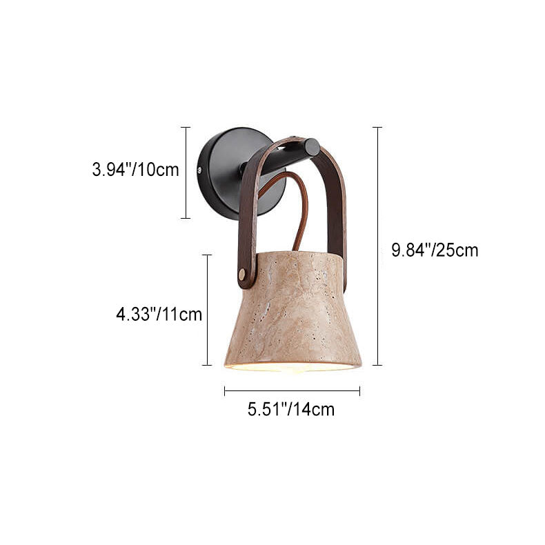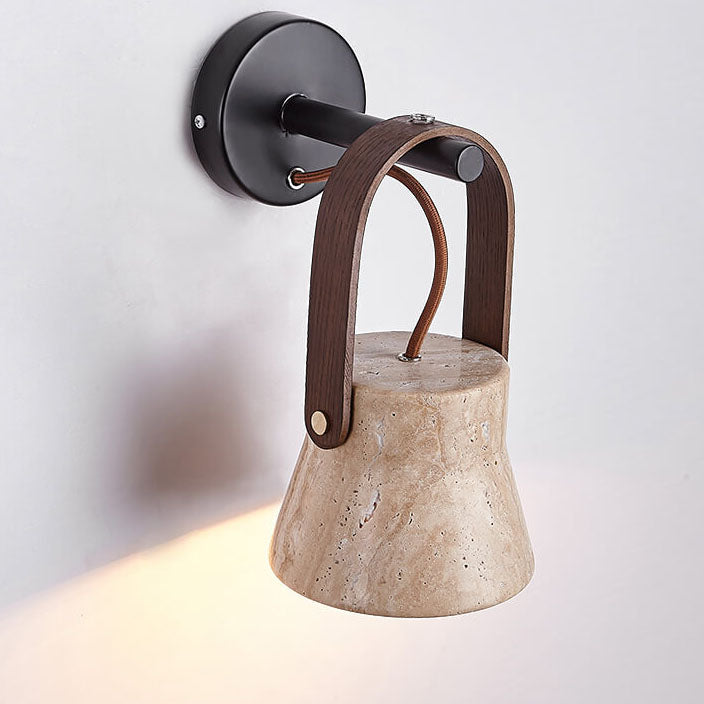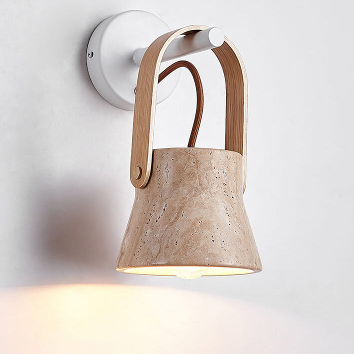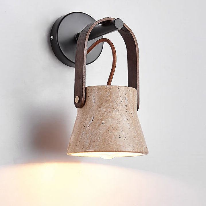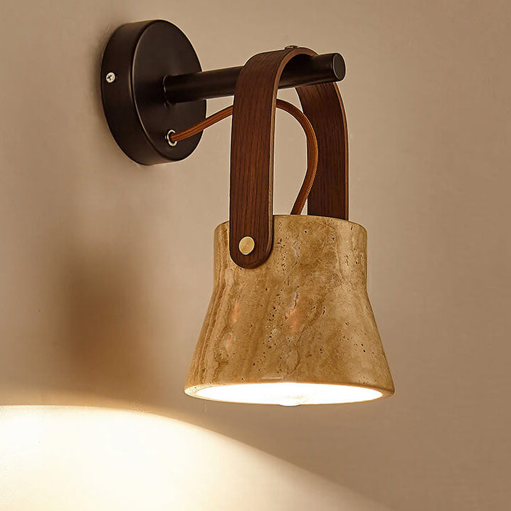 Japanese Retro Walnut Yellow Travertine Round 1-Light Wall Sconce Lamp