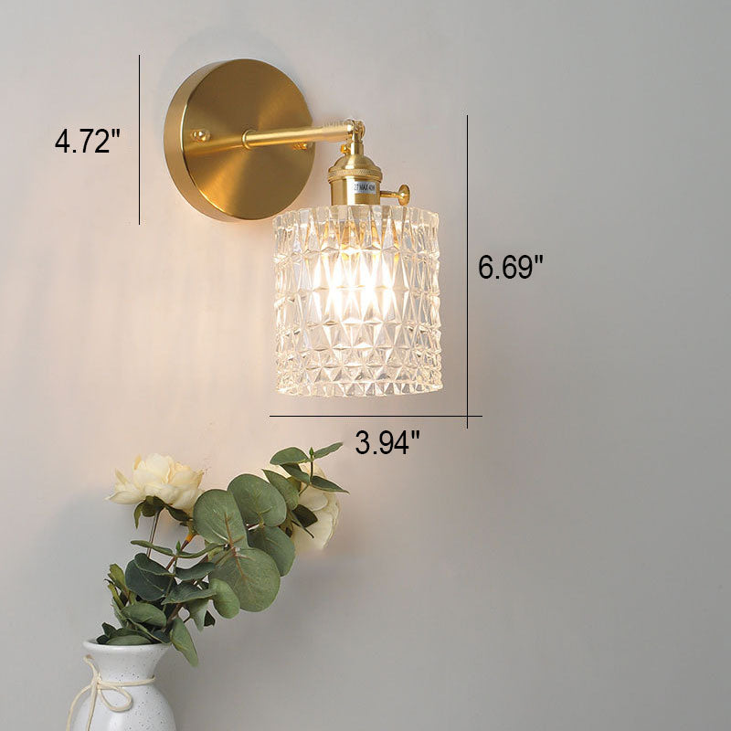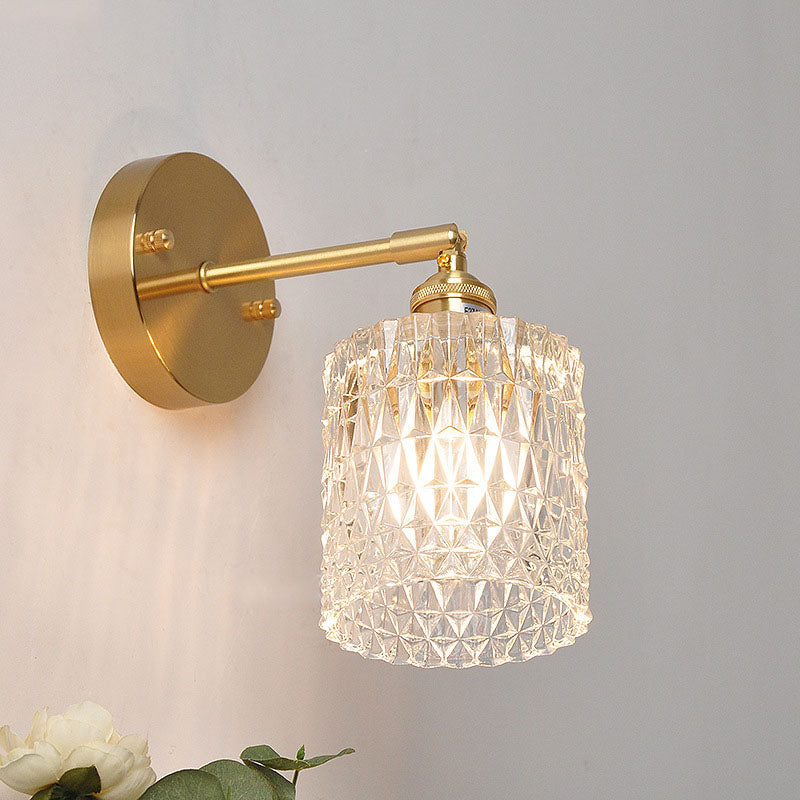 Japanese Vintage Brass Glass Cylinder 1-Light Wall Sconce Lamp