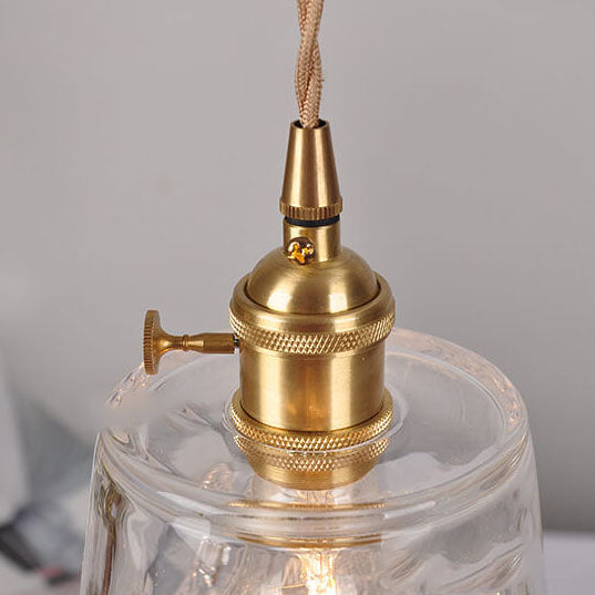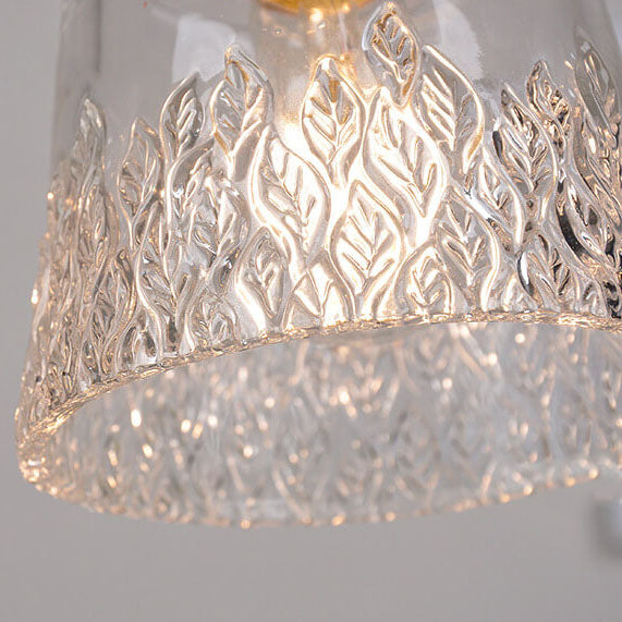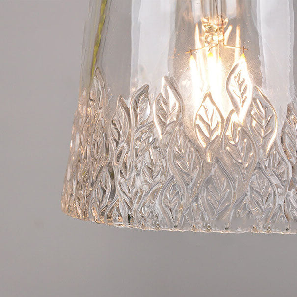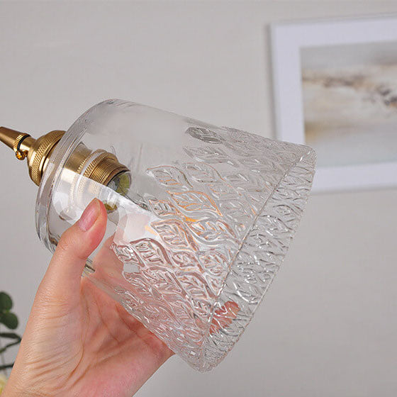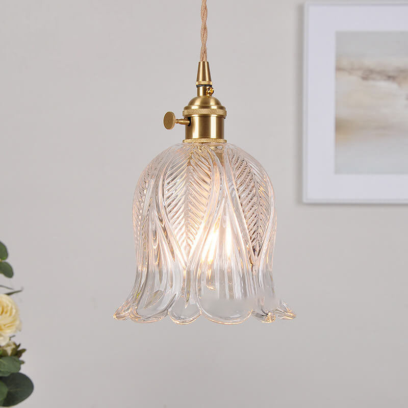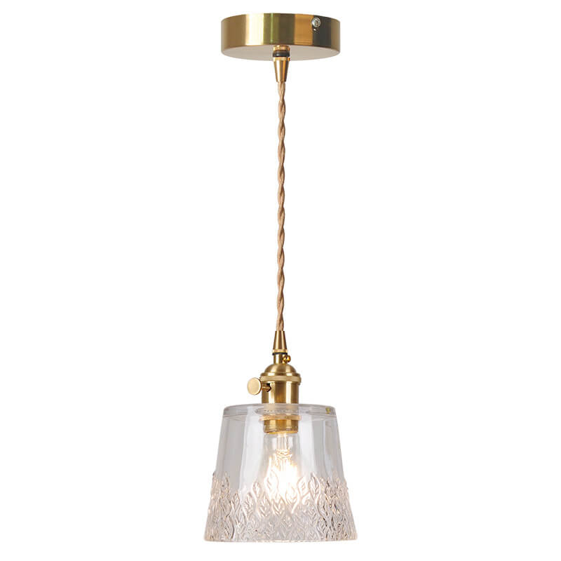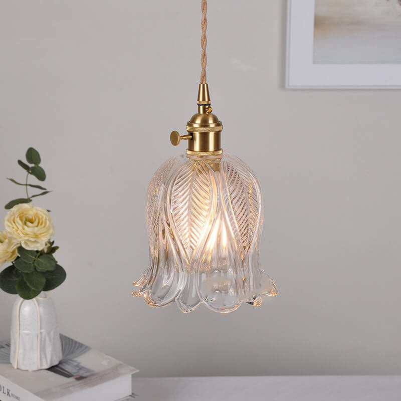 Japanese Vintage Floral Glass Cone Brass 1-Light Pendant Light