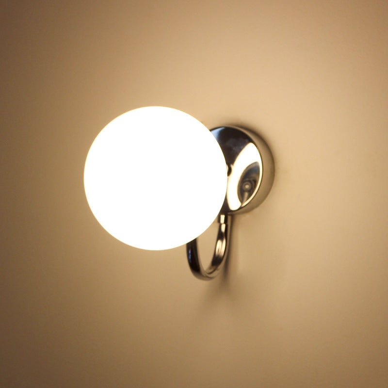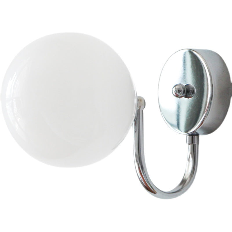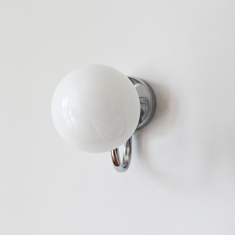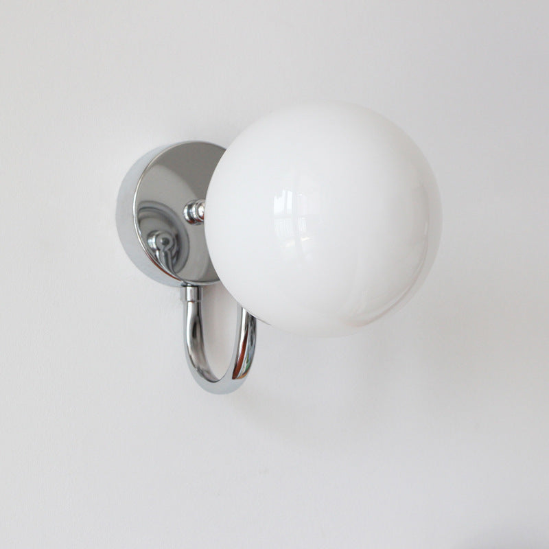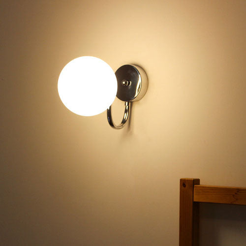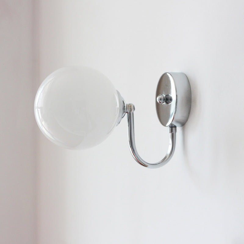 Japanese Vintage Glass Round Ball Chrome Bending Arm 1-Light Wall Sconce Lamp