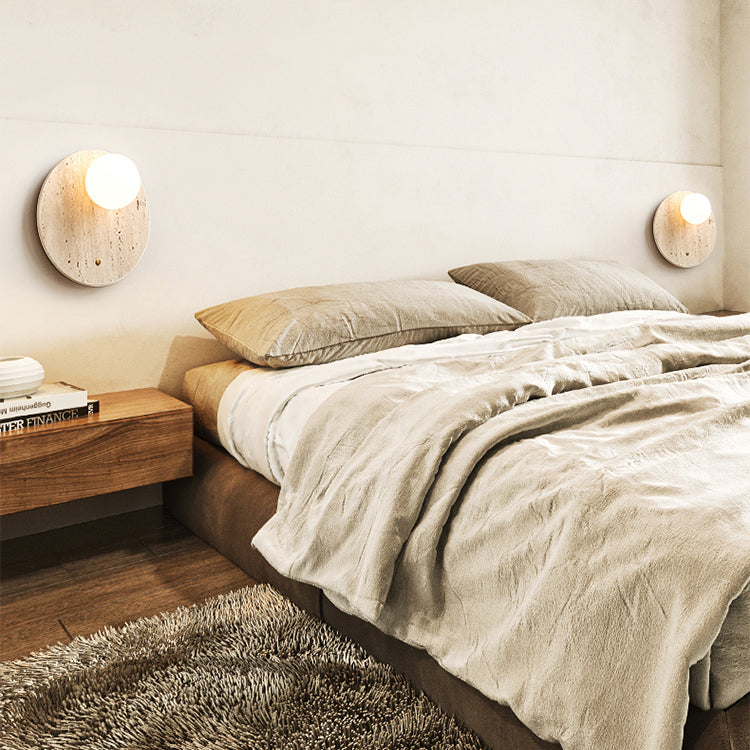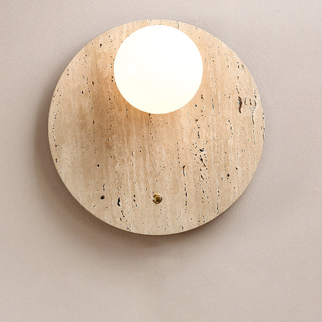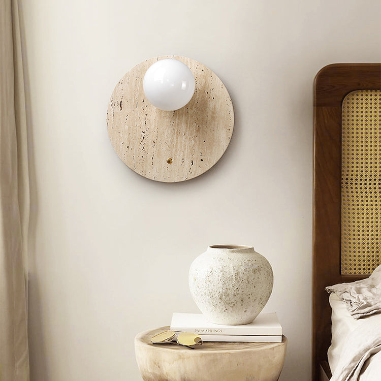Japanese Vintage Stone Round Ring Glass 1-Light Wall Sconce Lamp
