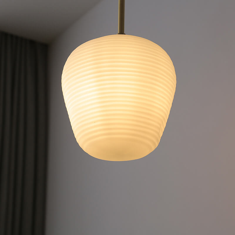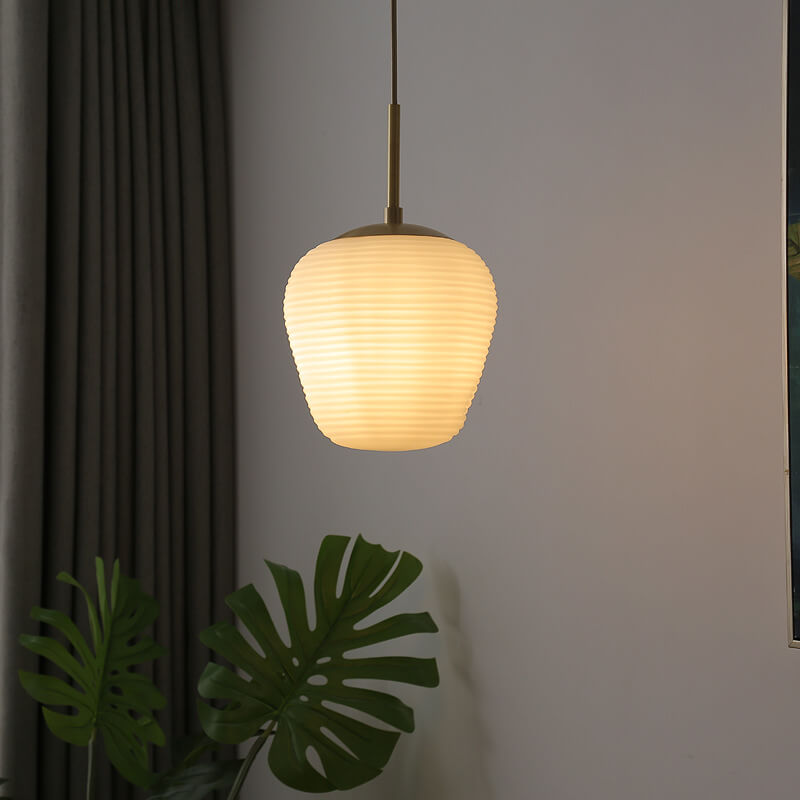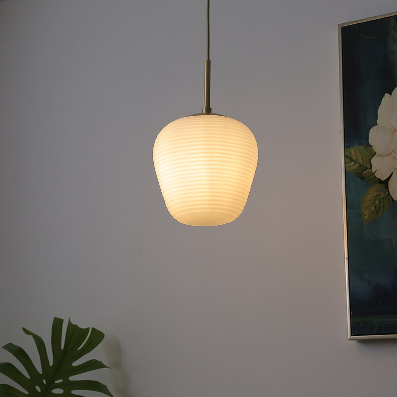 Minimalist Striped Glass Oval 1-Light Japanese Pendant Light