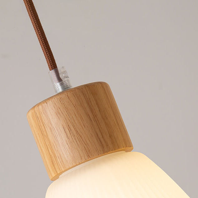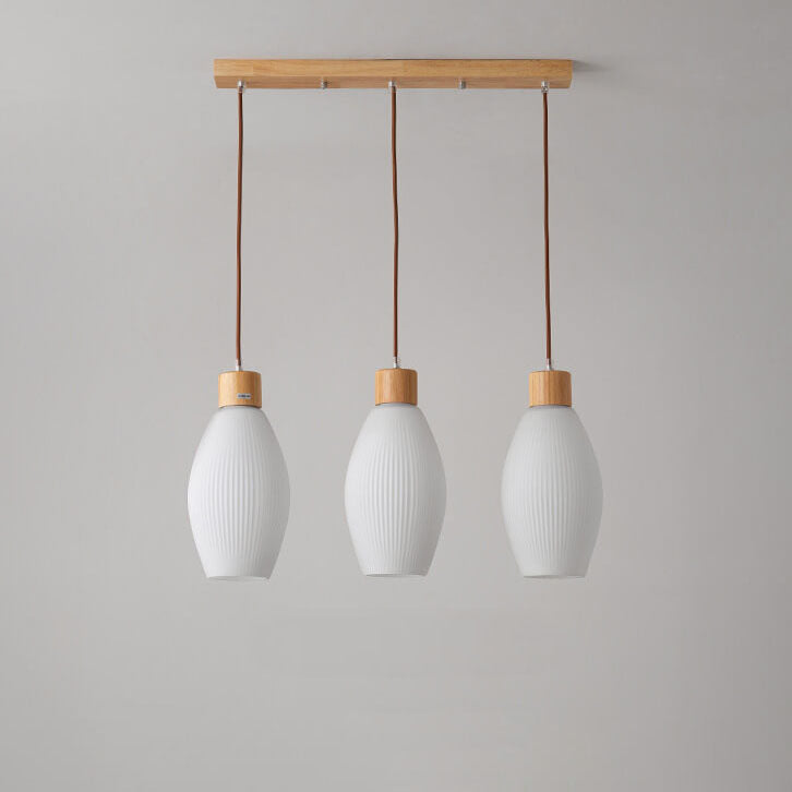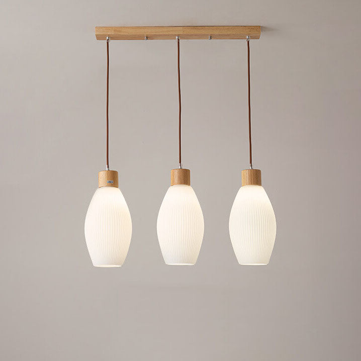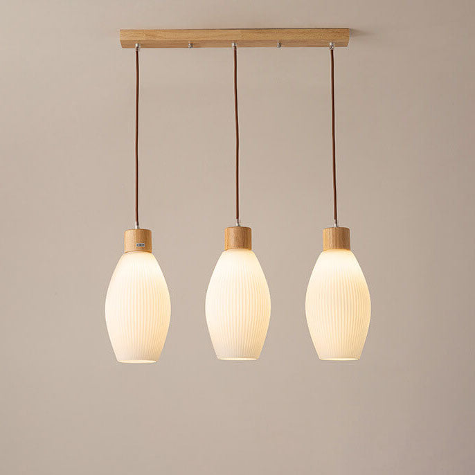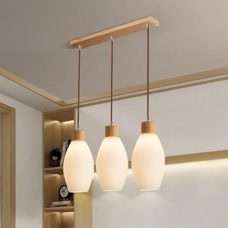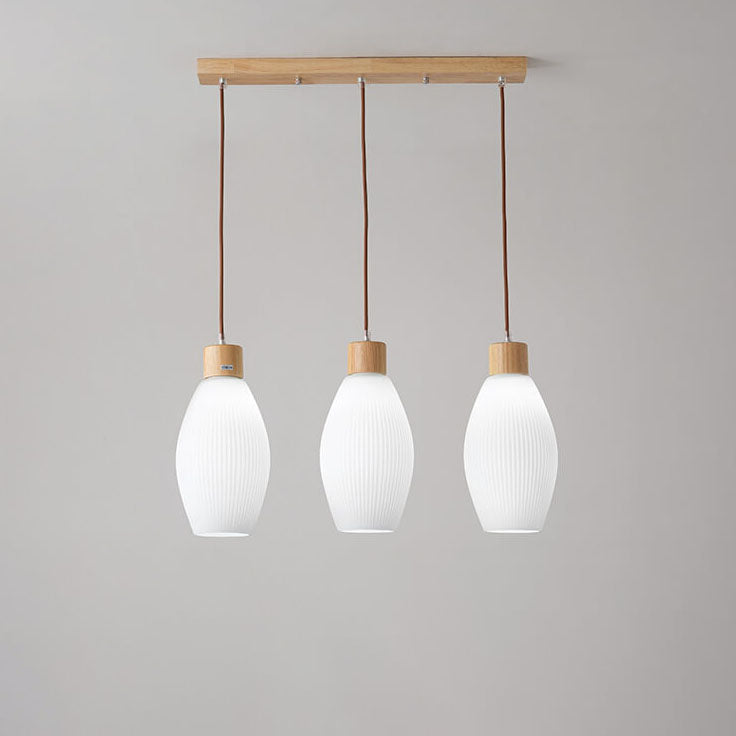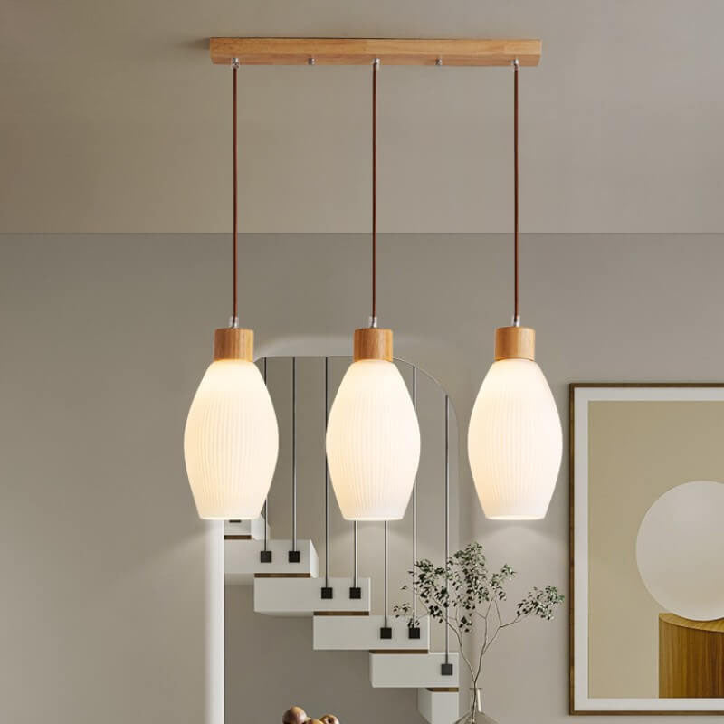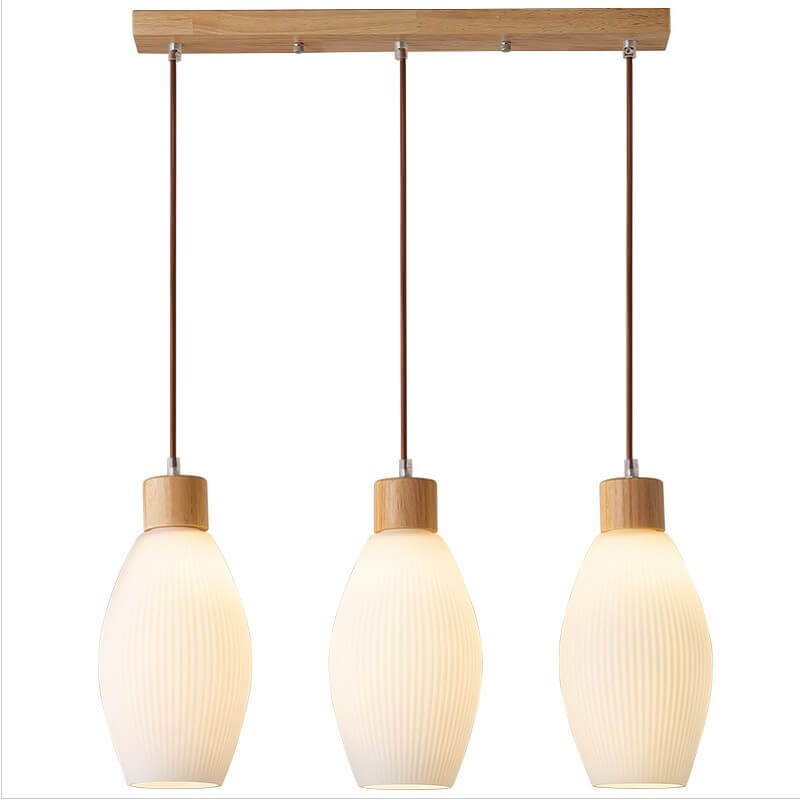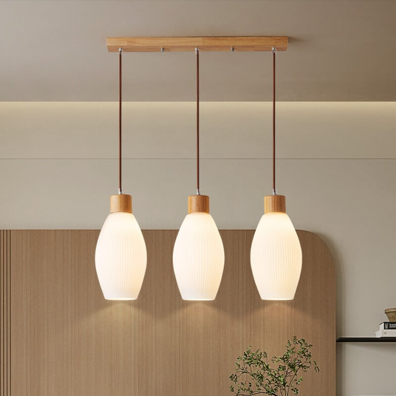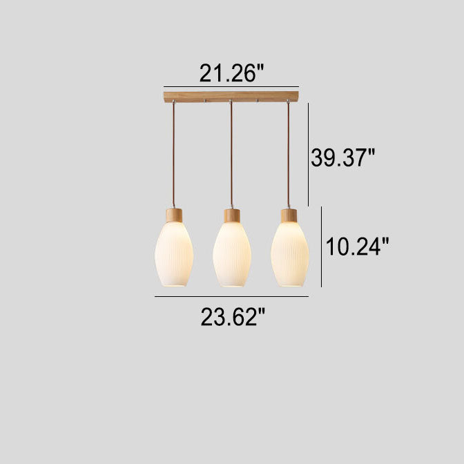 Minimalist Wood Stripes Glass Oval Jar 3-Light Island Light Chandelier
