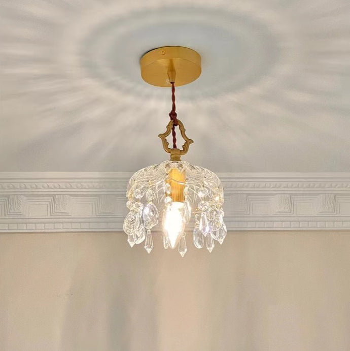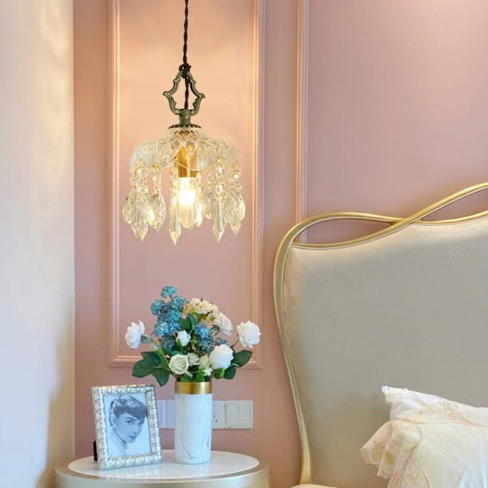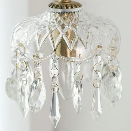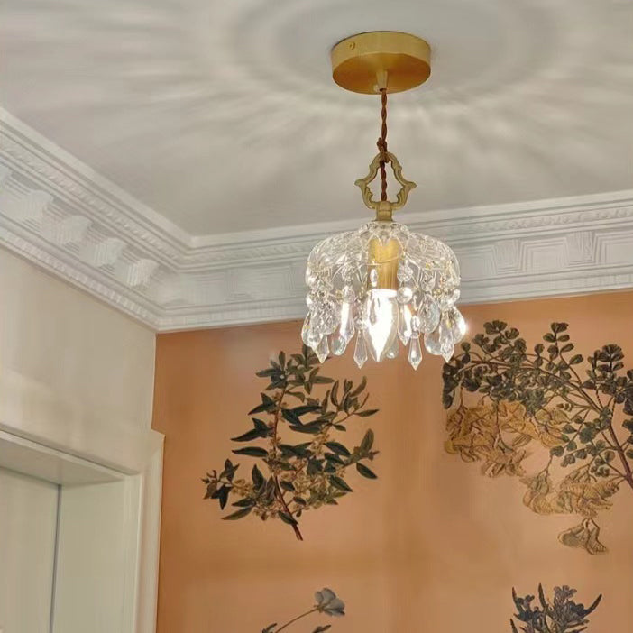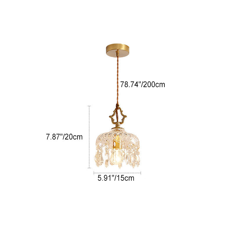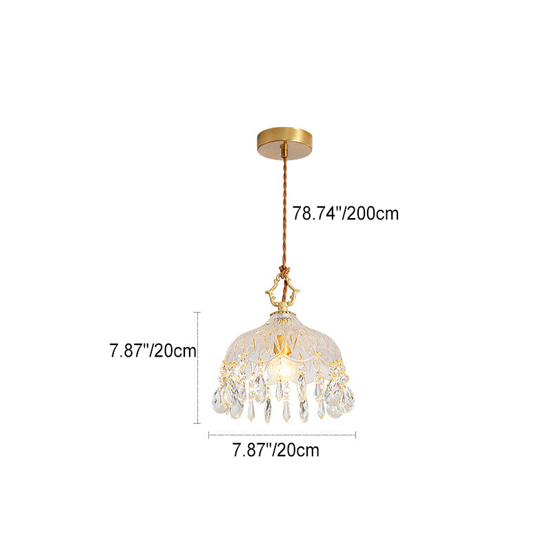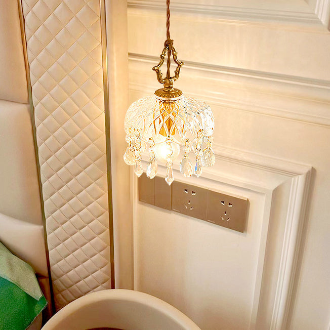 Modern Art Deco Brass Checkered Glass Shade Crystal Beads 1-Light Pendant Light For Living Room