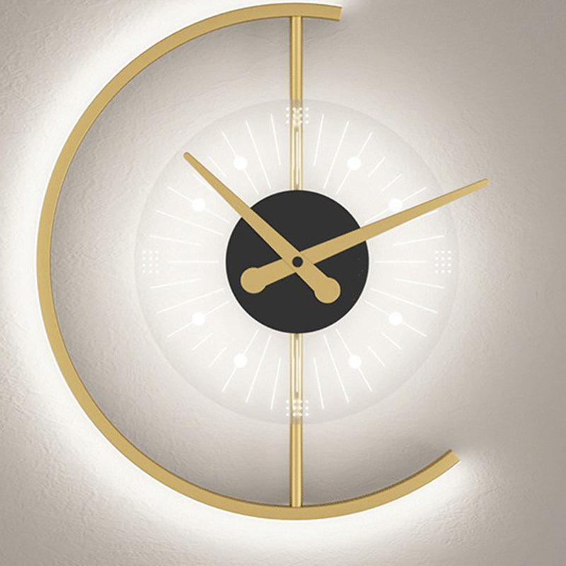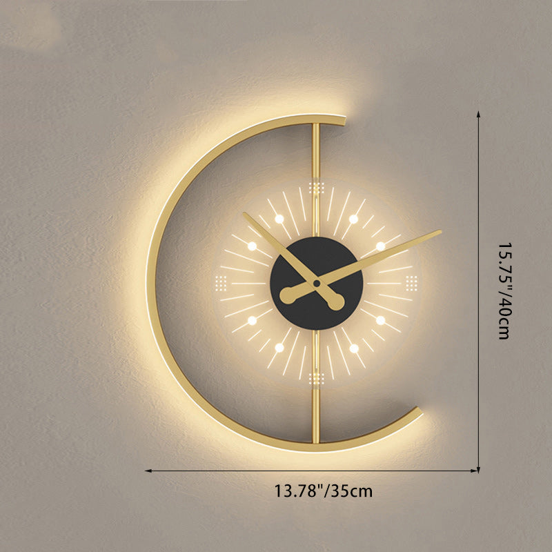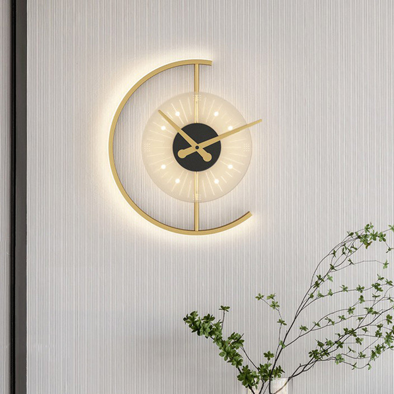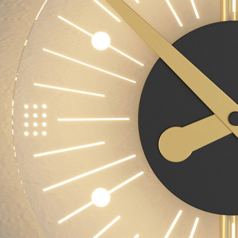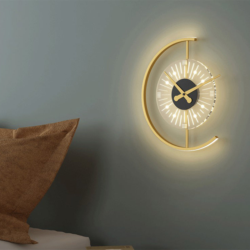 Modern Art Deco Clock Round Iron Acrylic LED Wall Sconce Lamp For Bedroom