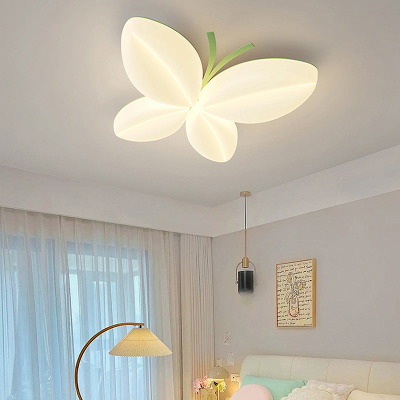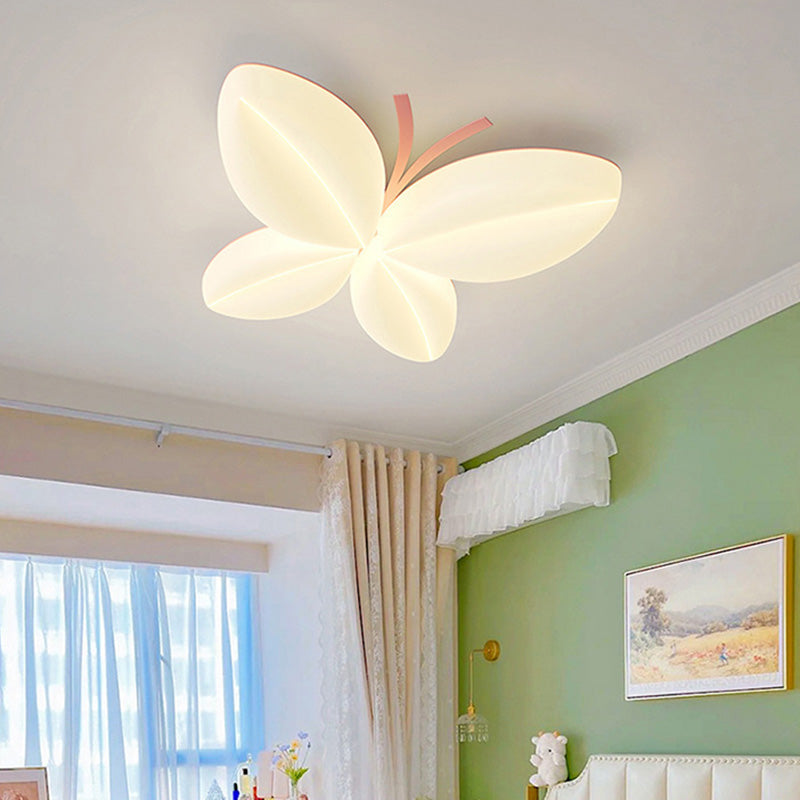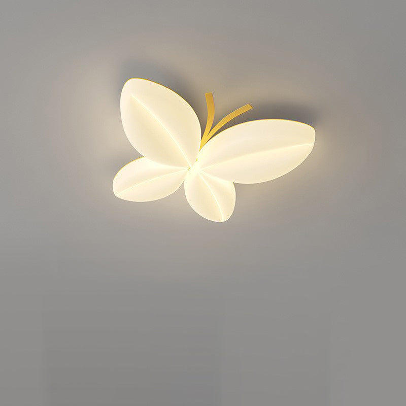 Modern Art Deco Cream Butterfly PE Iron LED Flush Mount Ceiling Light For Bedroom
