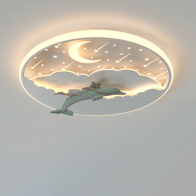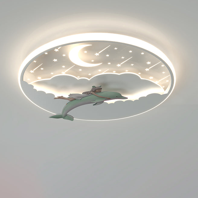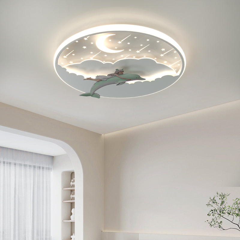 Modern Art Deco Dolphin Round Acrylic Iron LED Flush Mount Ceiling Light For Living Room