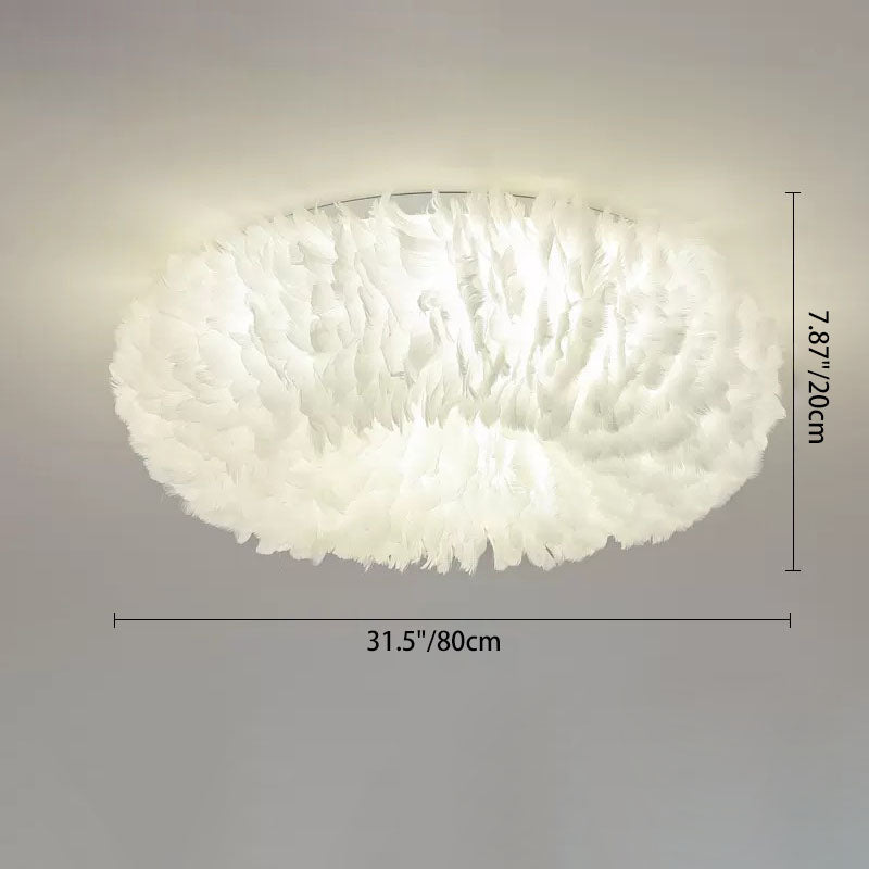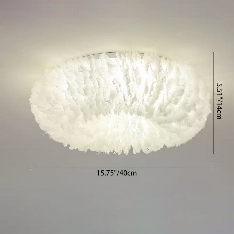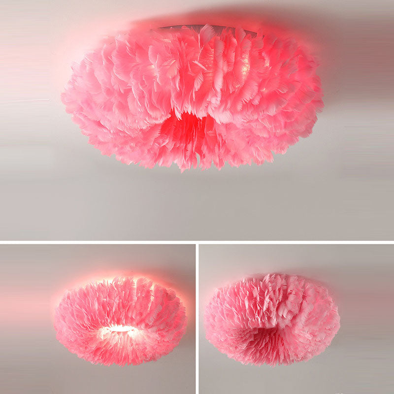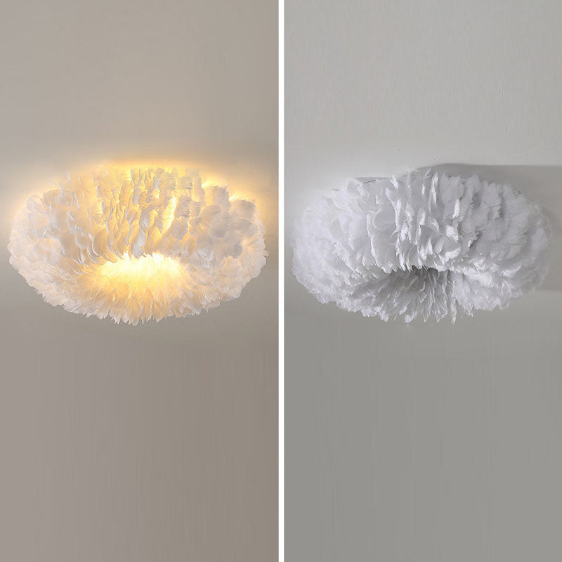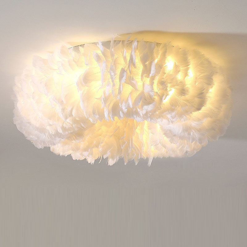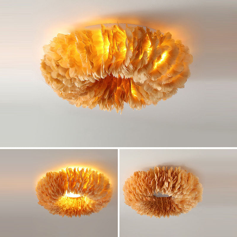 Modern Art Deco Feather Iron Wreath Round 3/6/8 Light Flush Mount Ceiling Light For Bedroom
