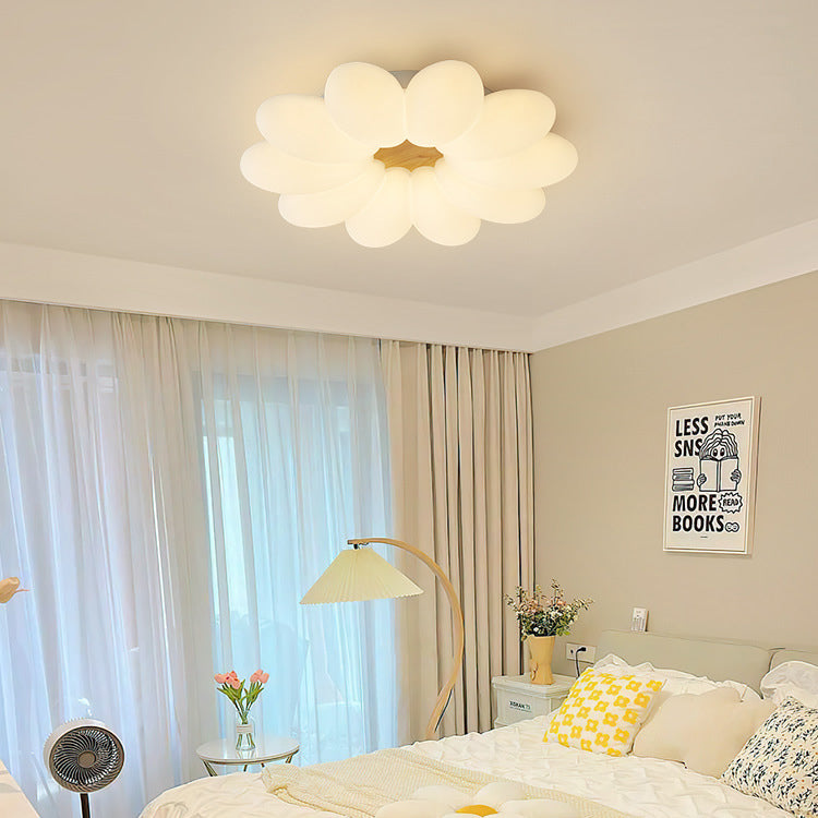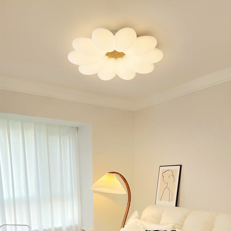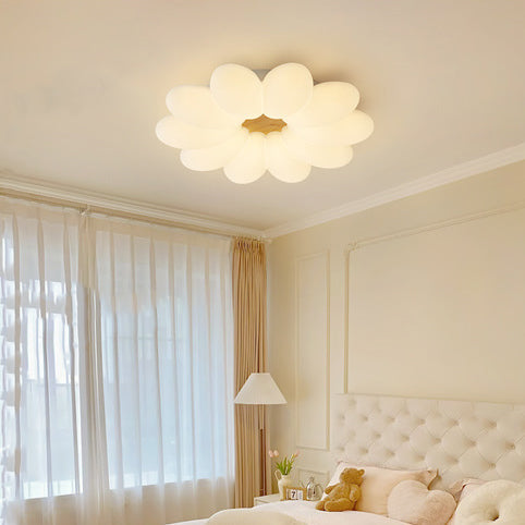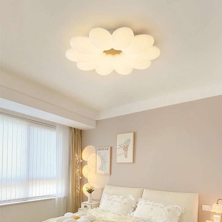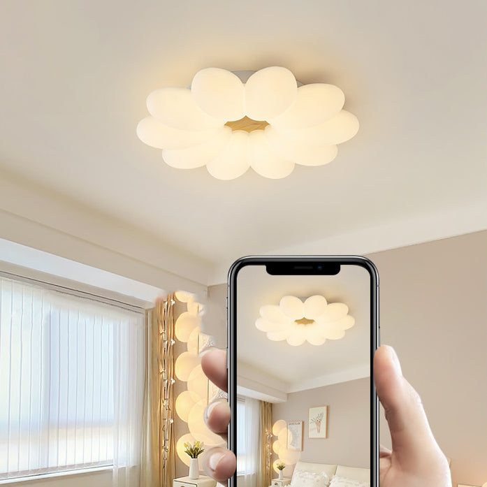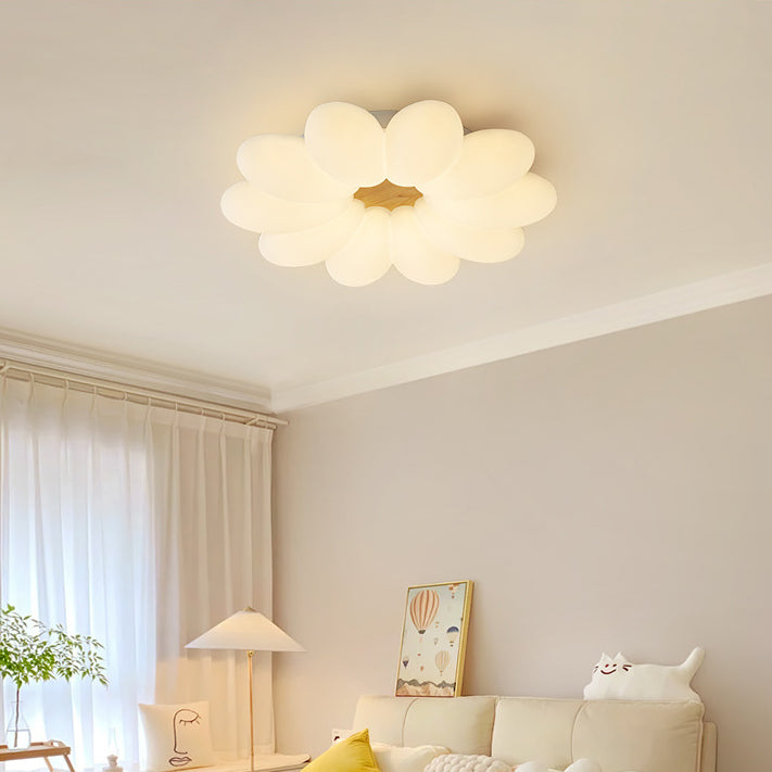 Modern Art Deco Floral Round PE Iron LED Flush Mount Ceiling Light For Living Room