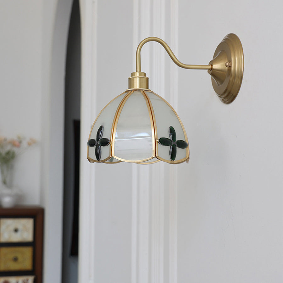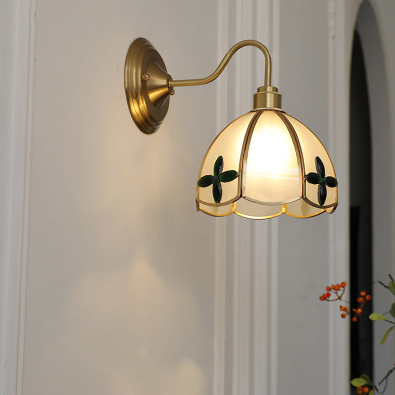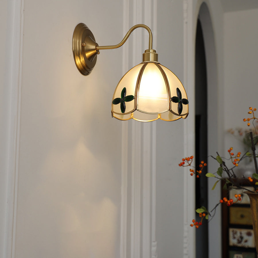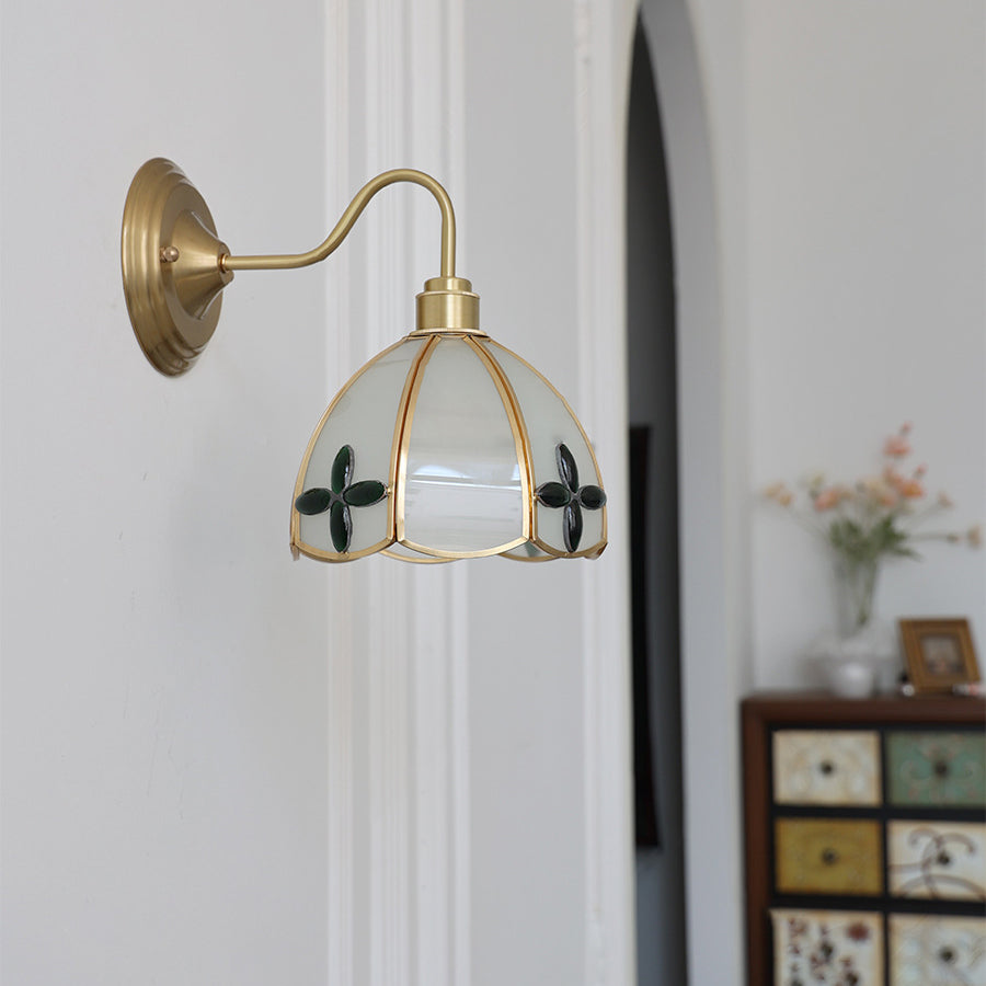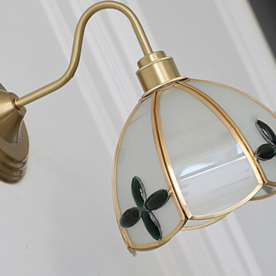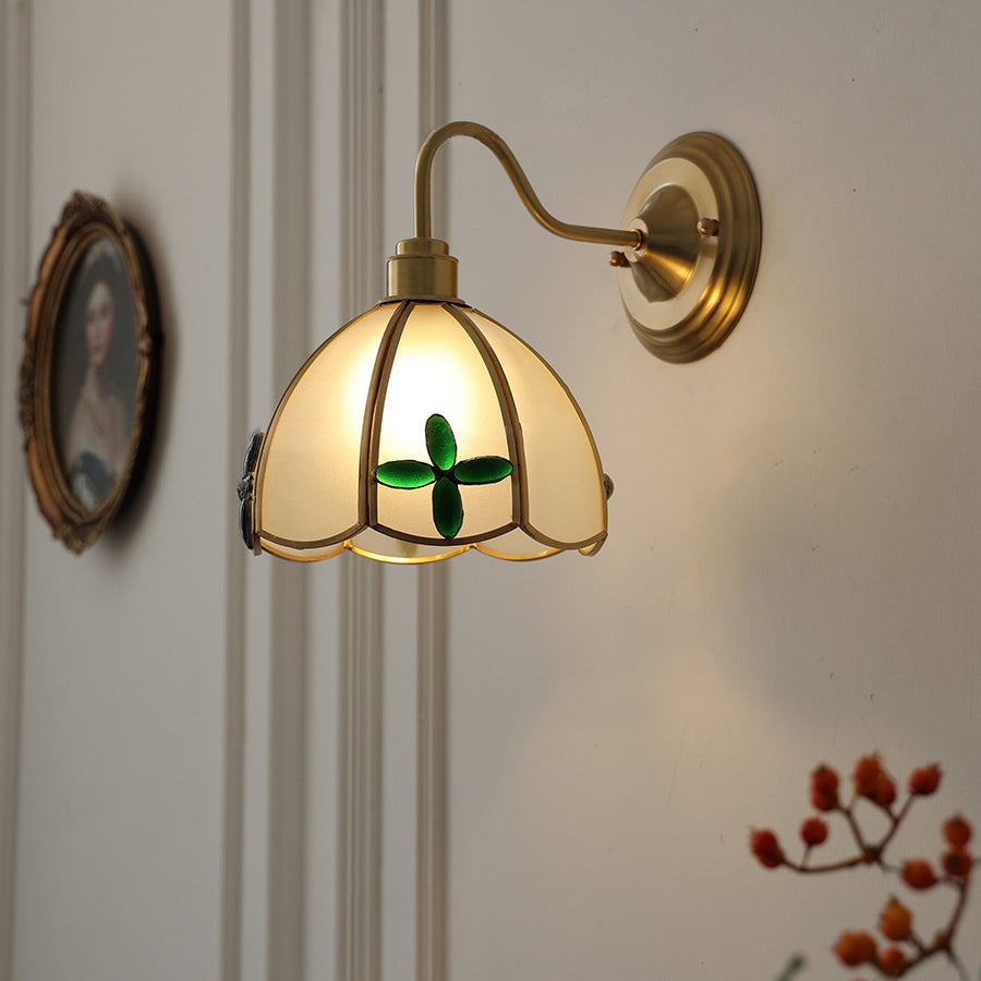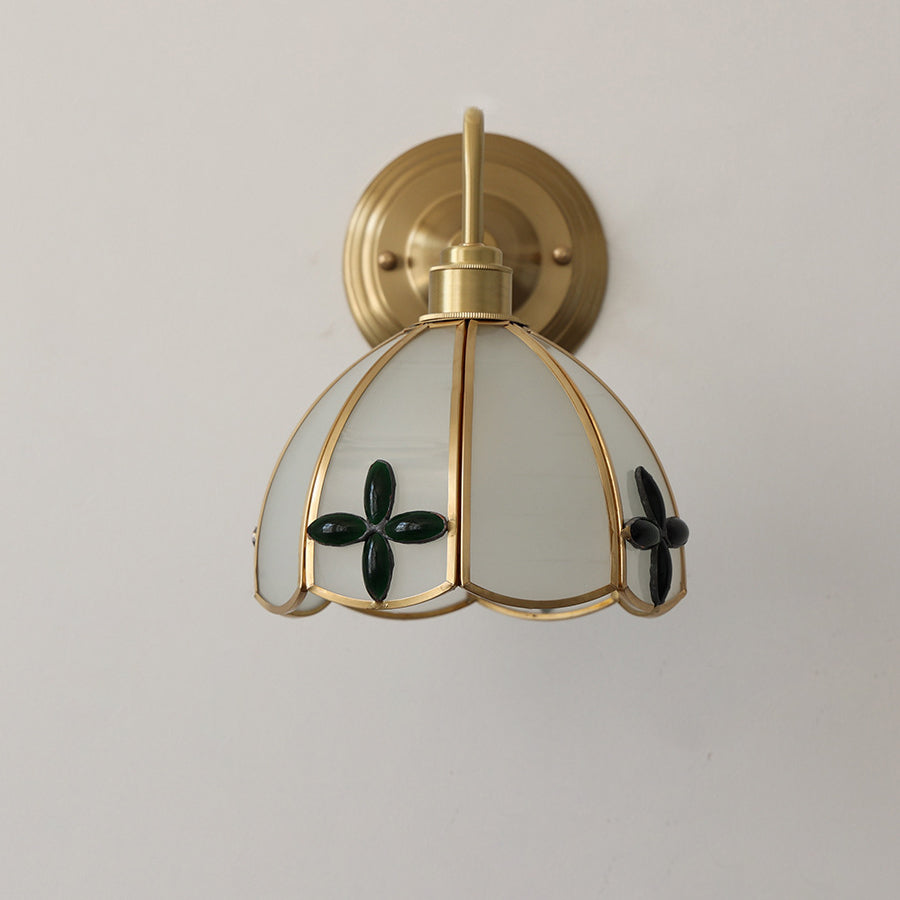 Modern Art Deco Four-Leaf Clover Brass Round Glass Shade 1-Light Wall Sconce Lamp For Bedroom