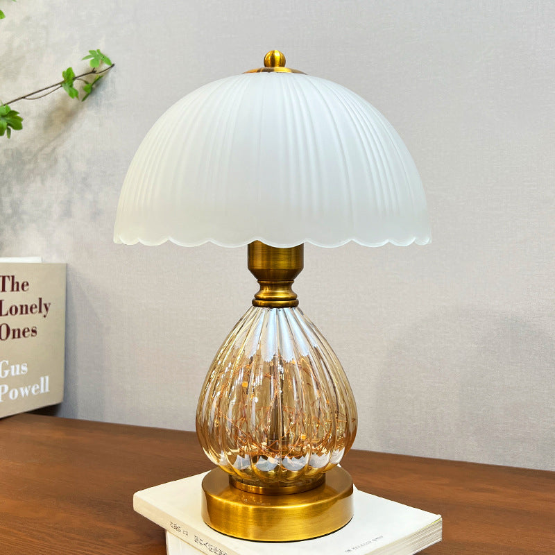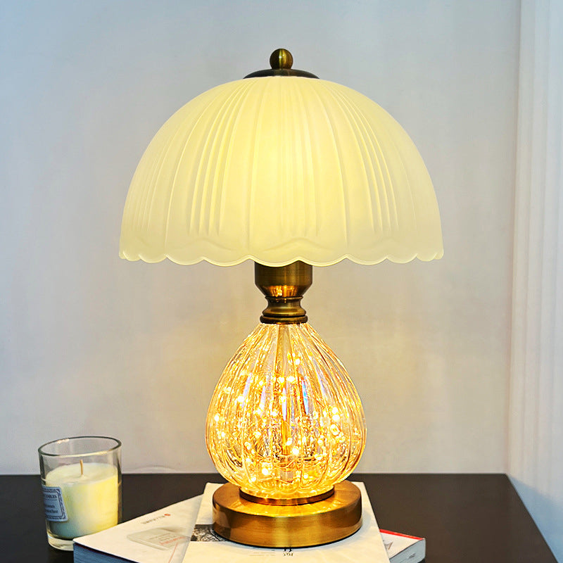 Modern Art Deco Glass Dome Shade Oval Base 1-Light Table Lamp For Living Room