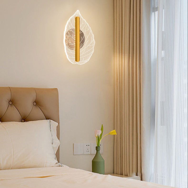 Modern Art Deco Iron Acrylic Leave Teardrop Shape LED Wall Sconce Lamp For Living Room