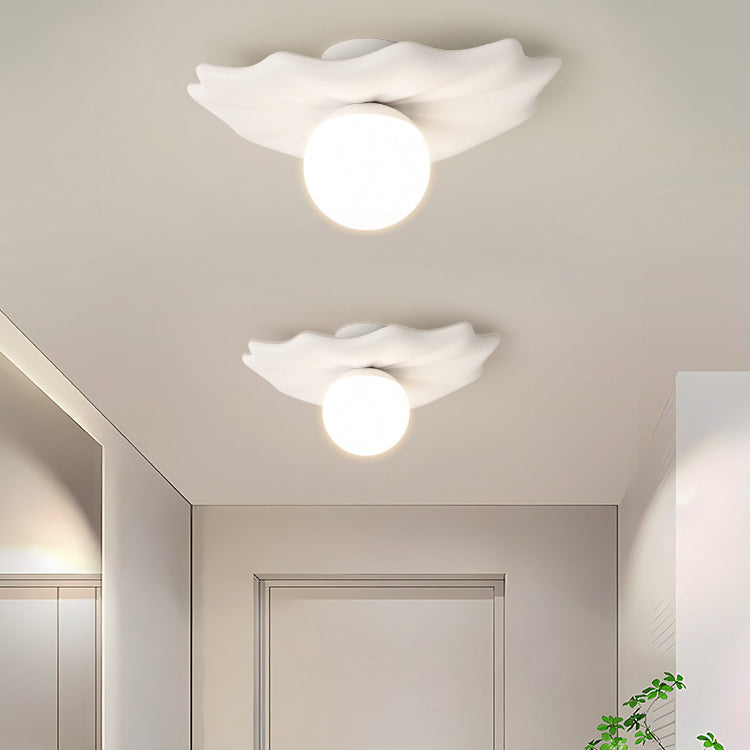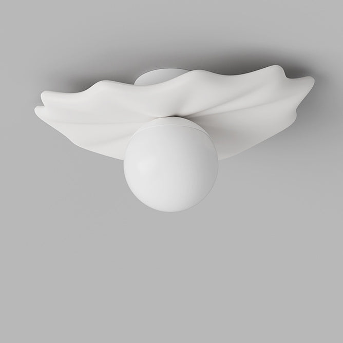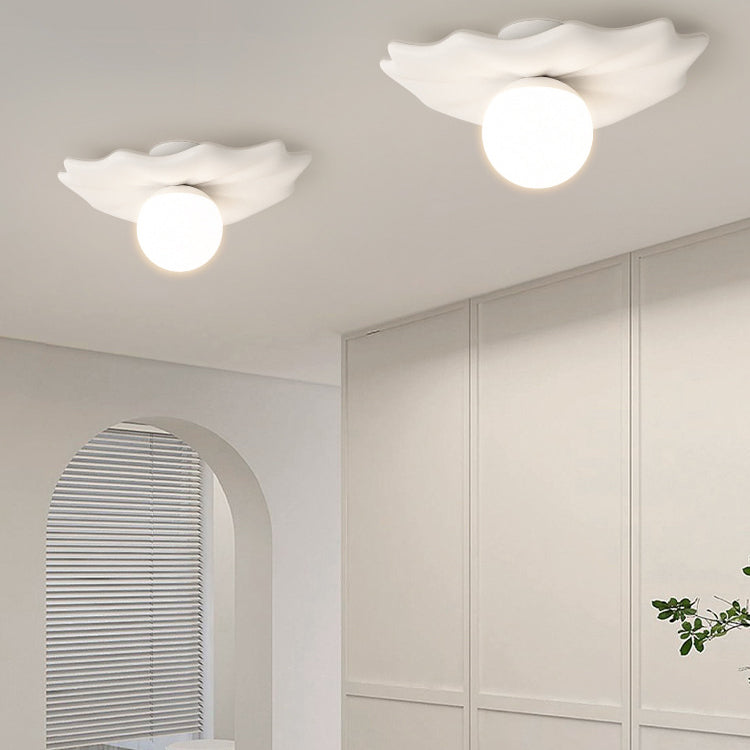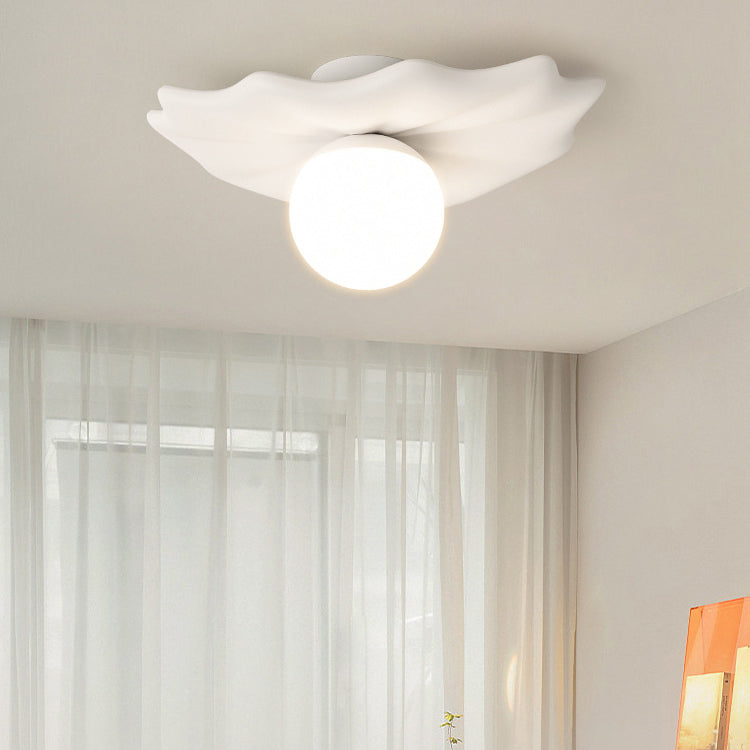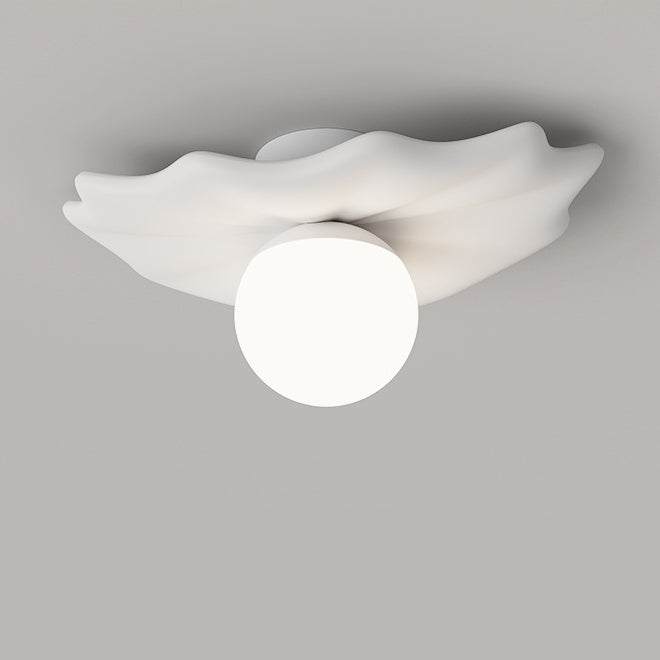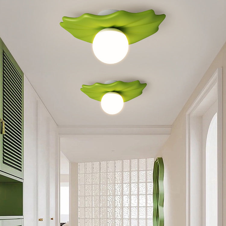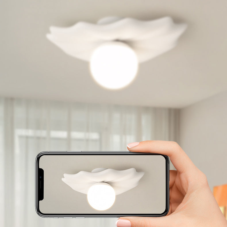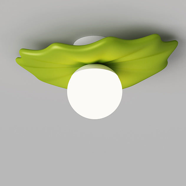 Modern Art Deco Iron Acrylic Silica Lotus Leaf Ball LED Flush Mount Ceiling Light For Living Room