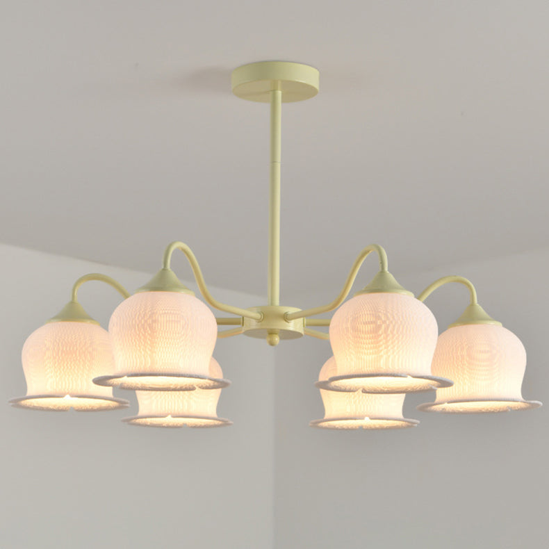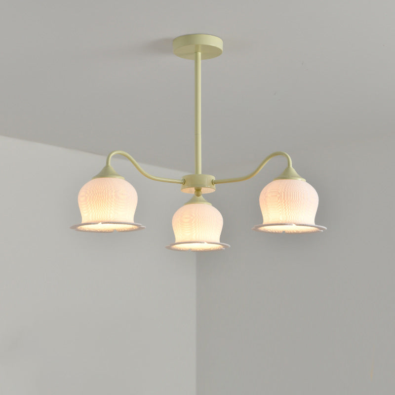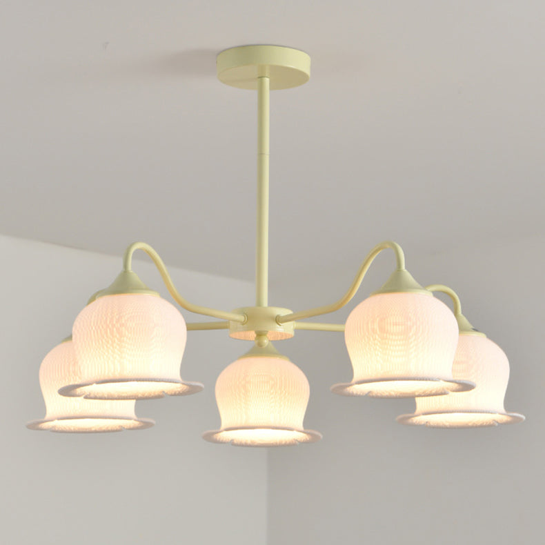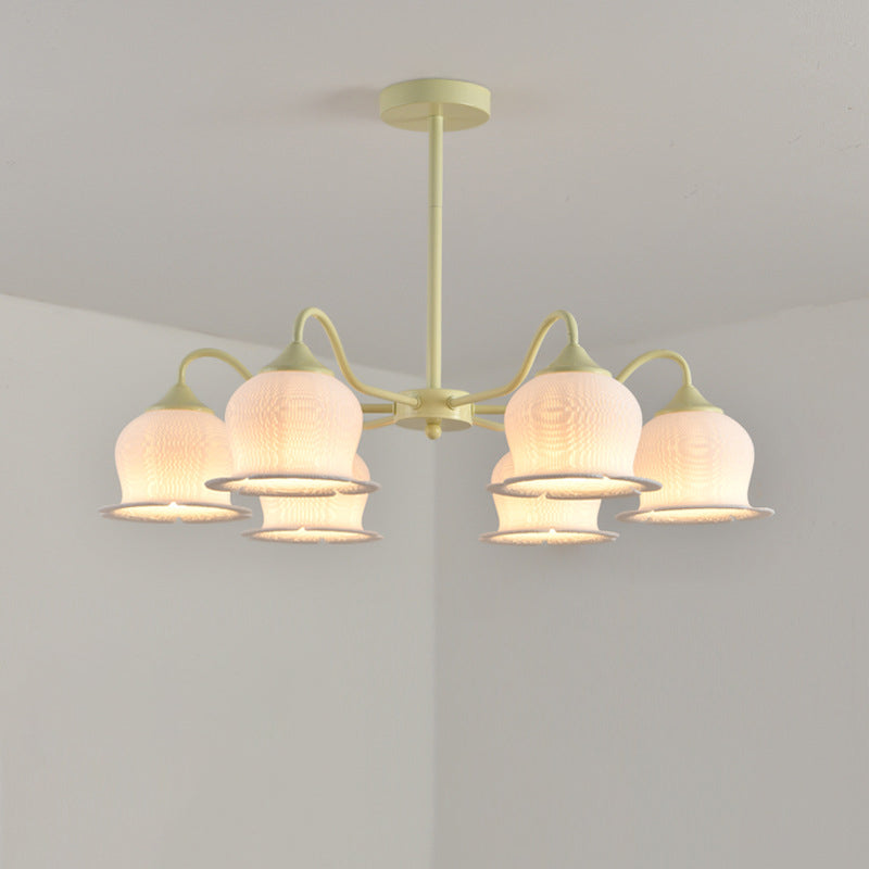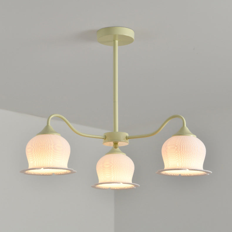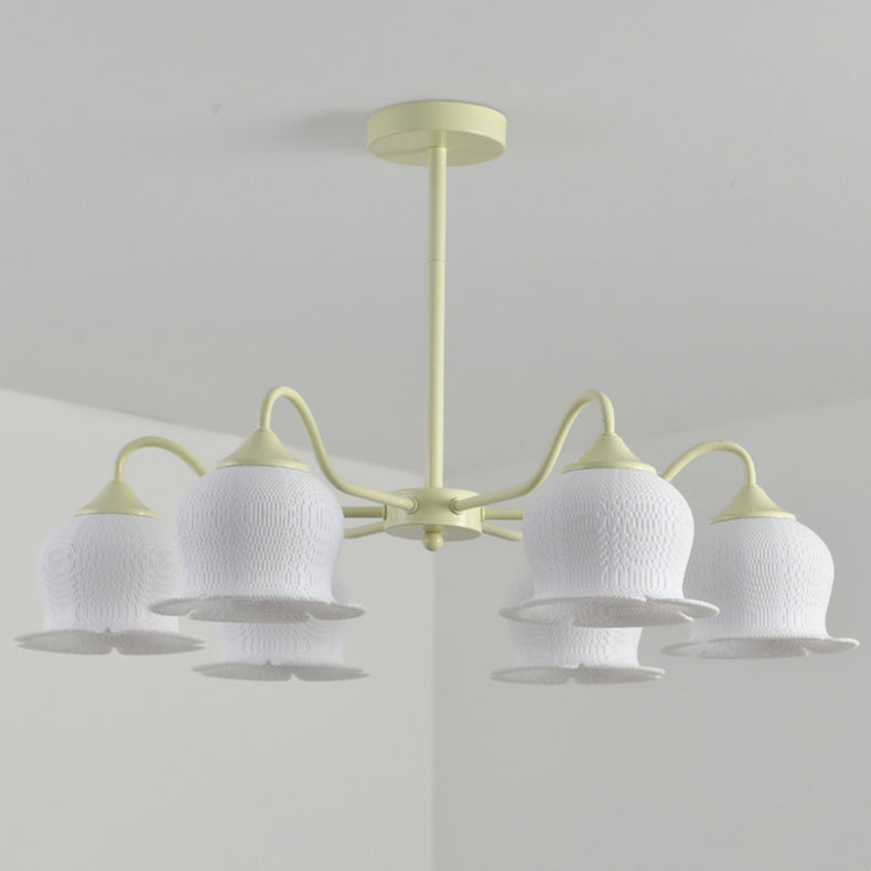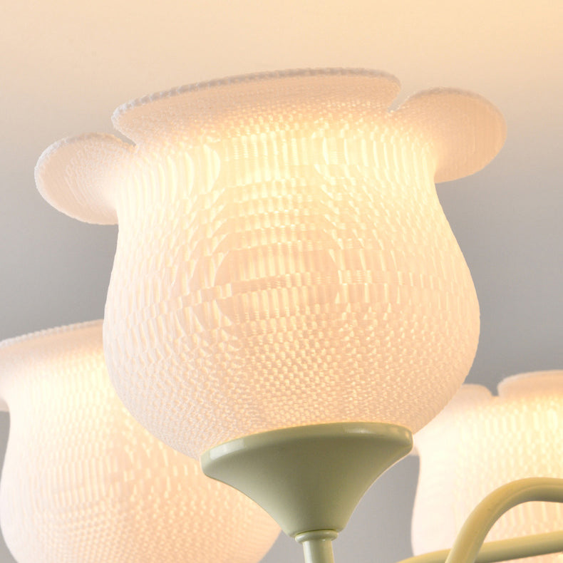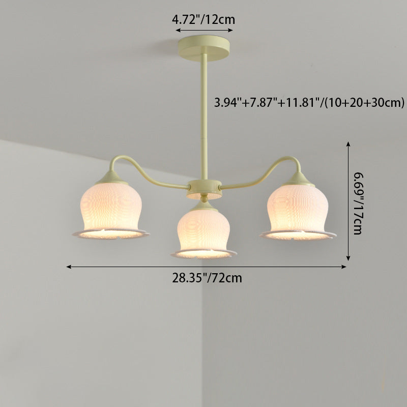 Modern Art Deco Iron Frame PLA Bell Orchid Flower Shade 3/5/6-Light Chandelier For Living Room
