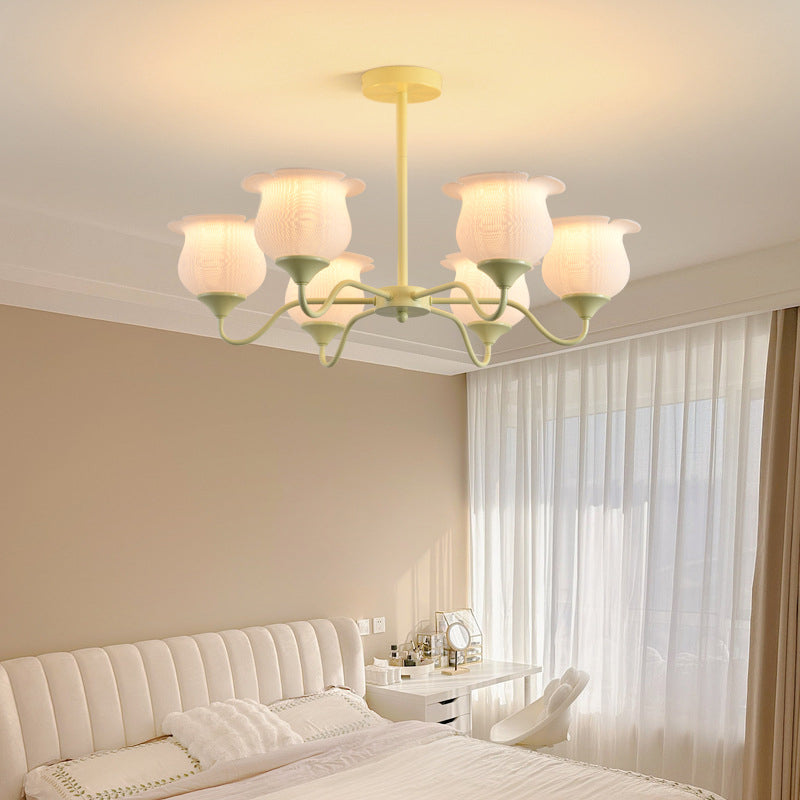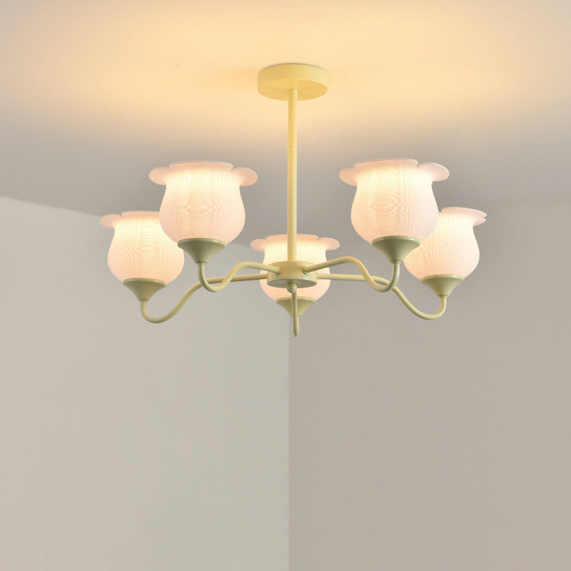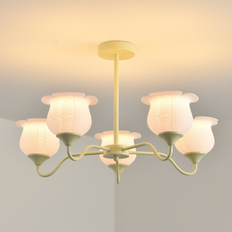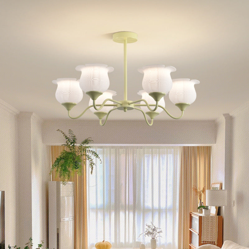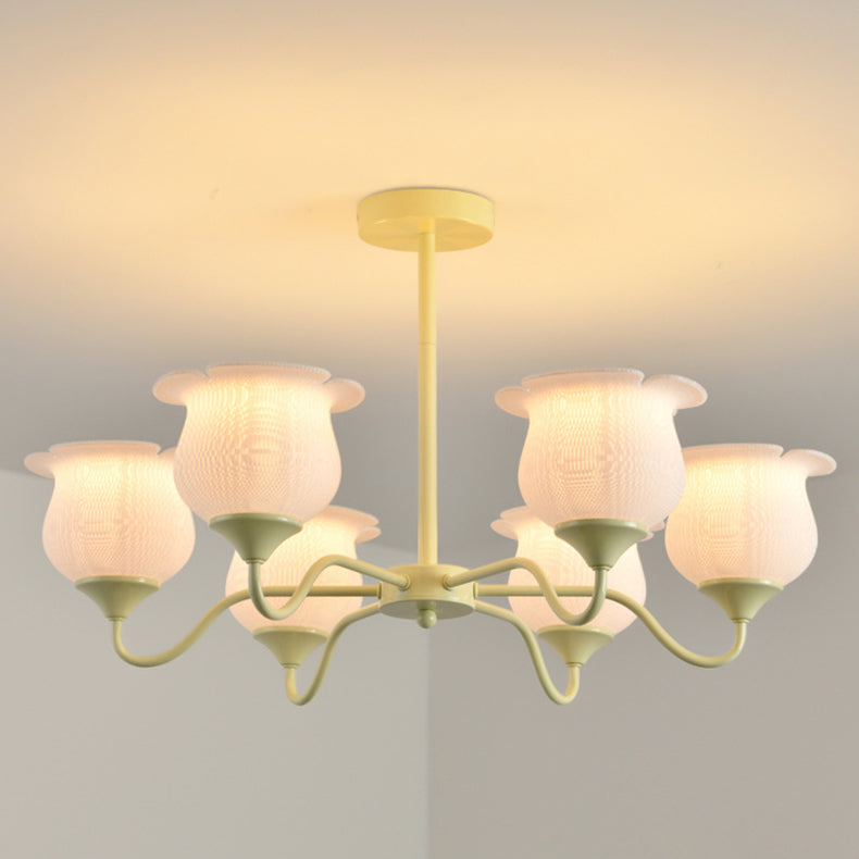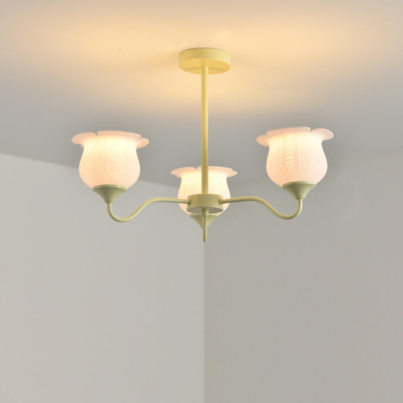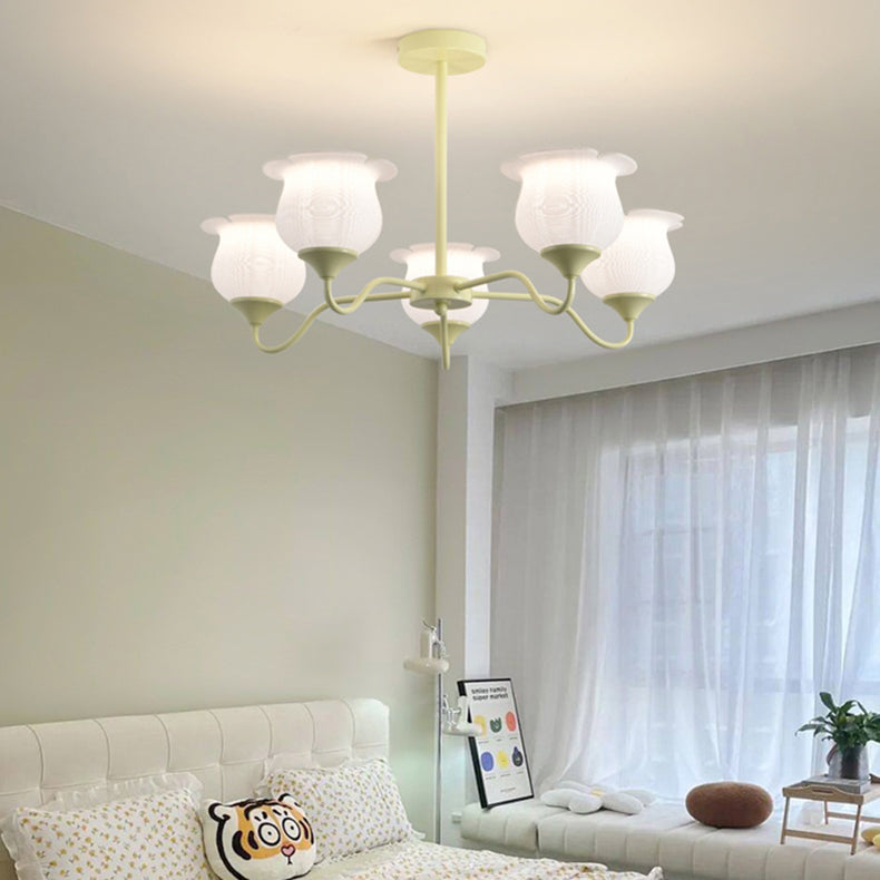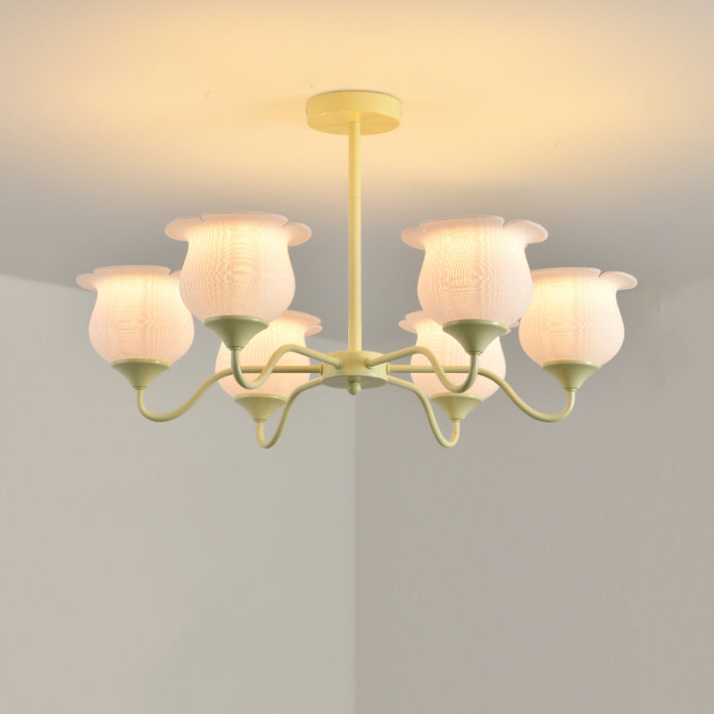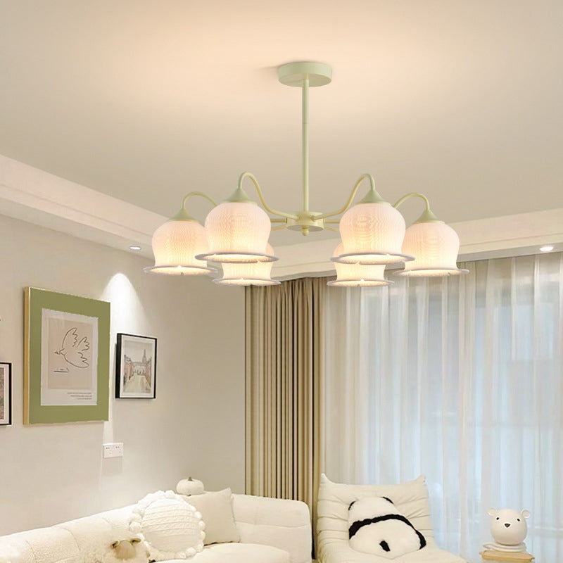 Modern Art Deco Iron Frame PLA Bell Orchid Flower Shade 3/5/6-Light Chandelier For Living Room