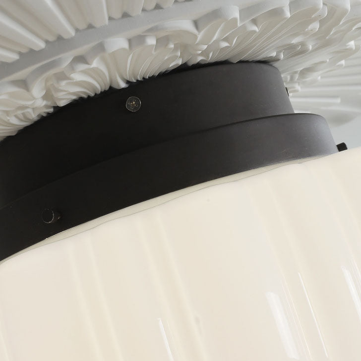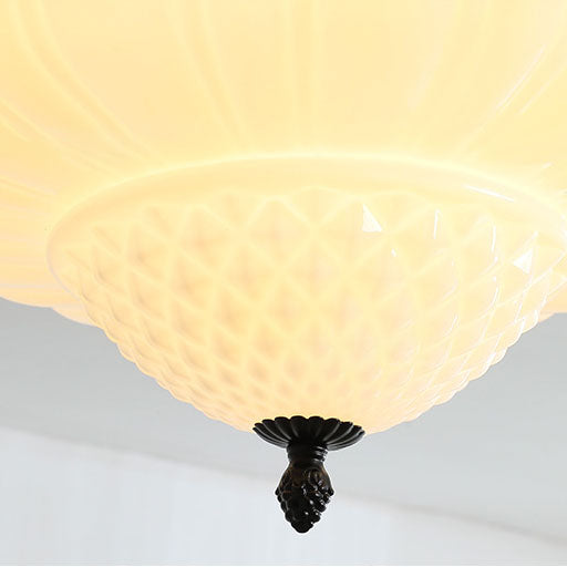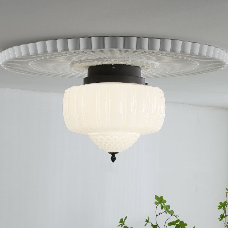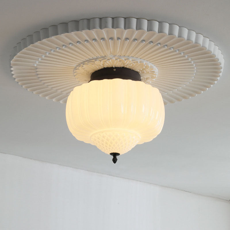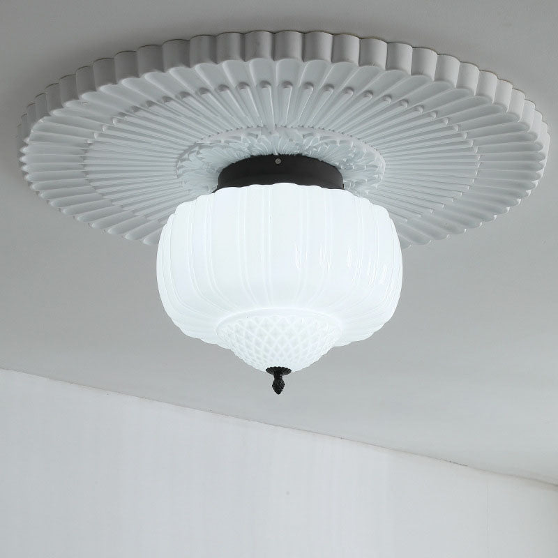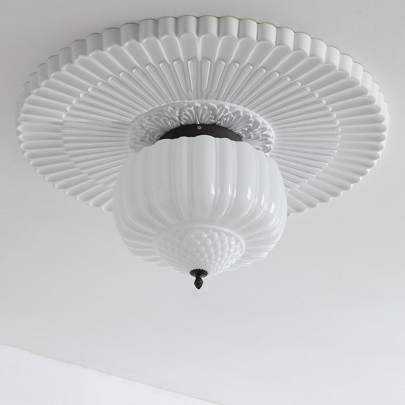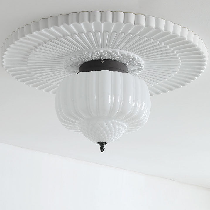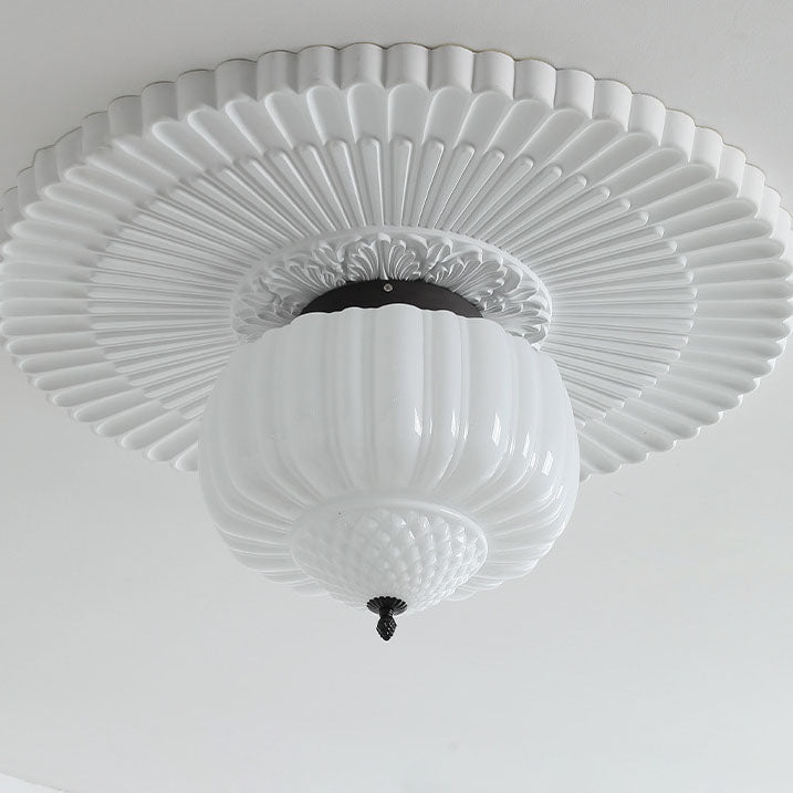 Modern Art Deco Iron Pumpkin Glass Shade 3-Light Flush Mount Ceiling Light For Living Room