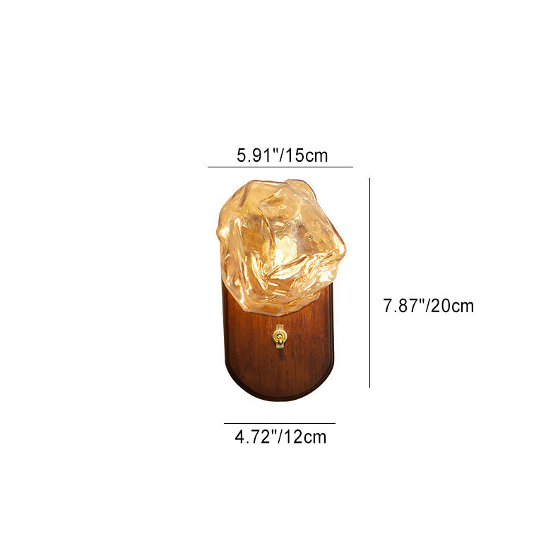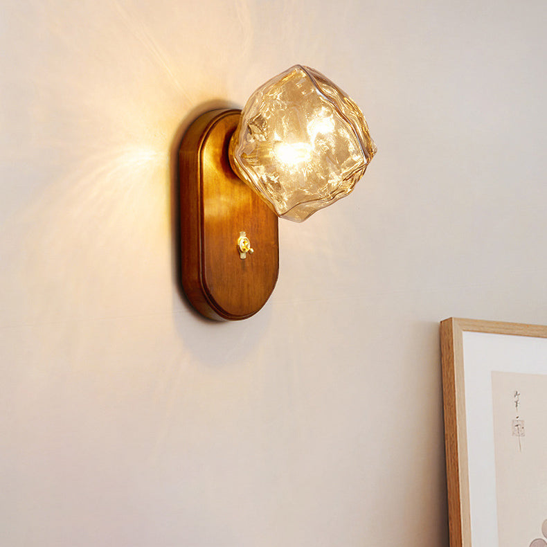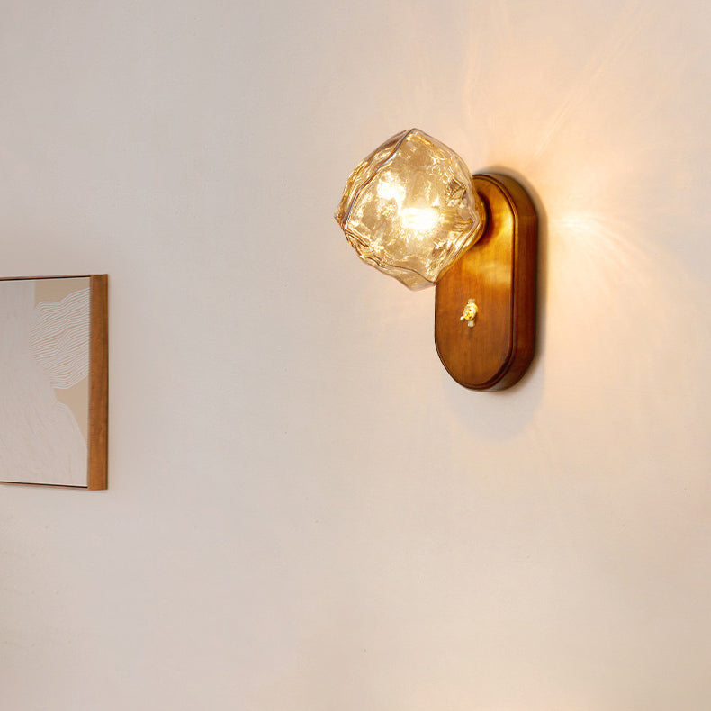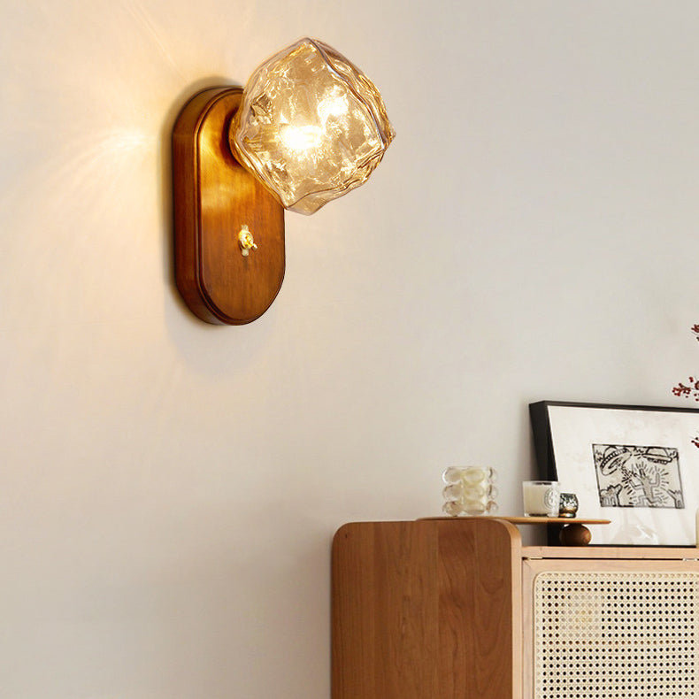Modern Art Deco Irregular Ice Solid Wood Glass 1-Light Wall Sconce Lamp For Bedroom