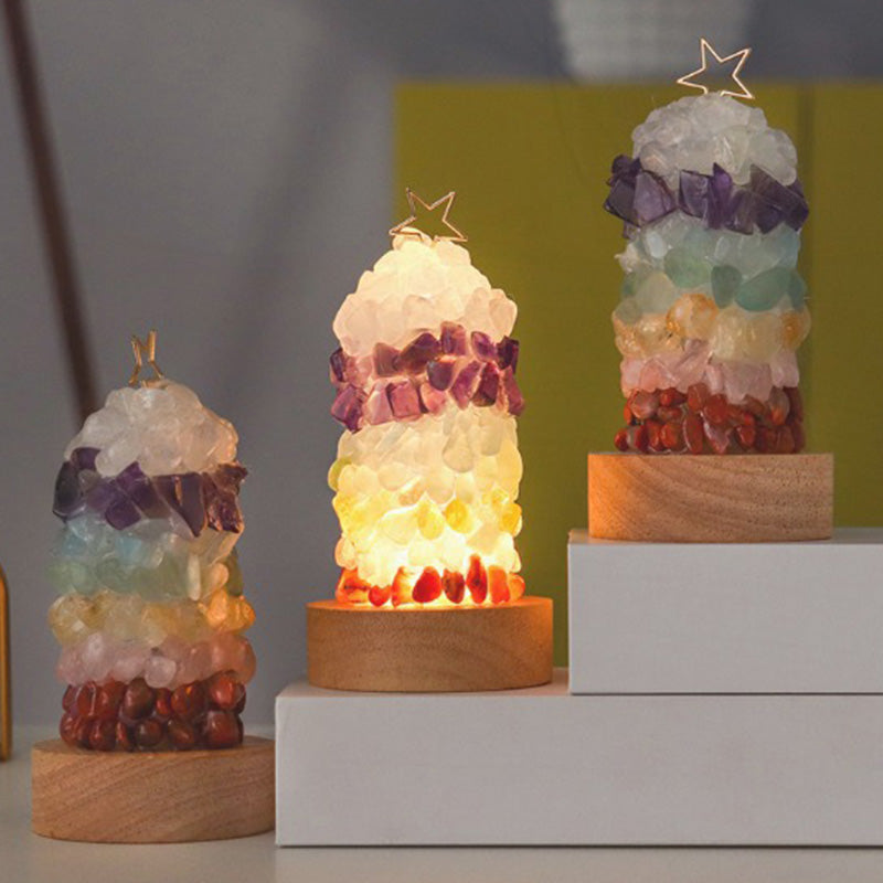 Modern Art Deco Metal Crystal Multi-colored Gemstone Round Base LED Table Lamp For Bedside