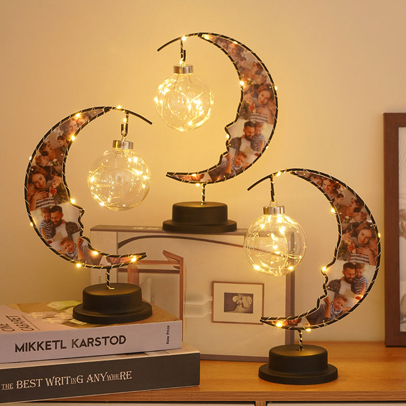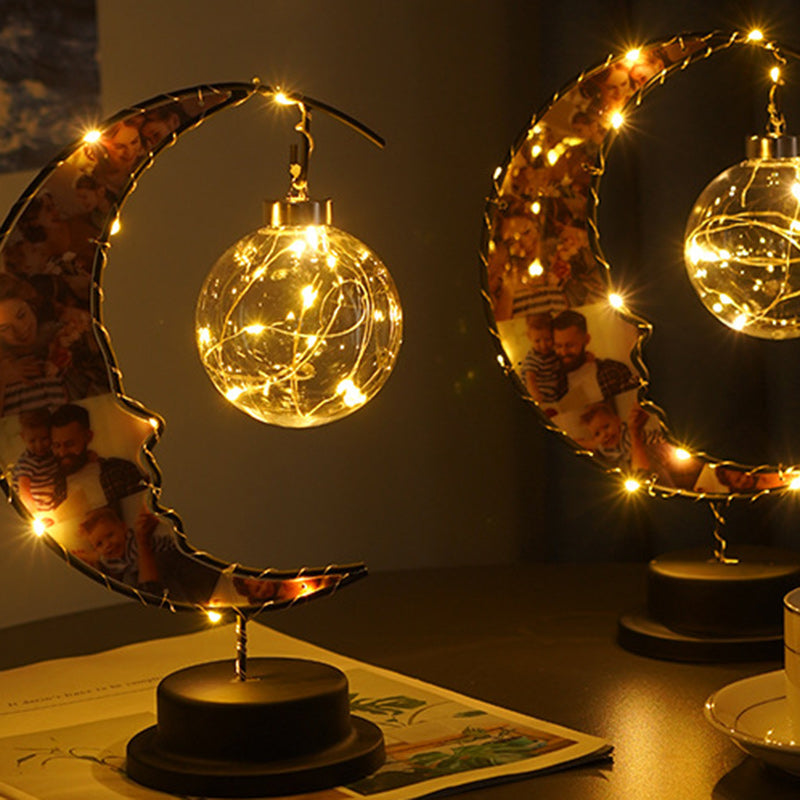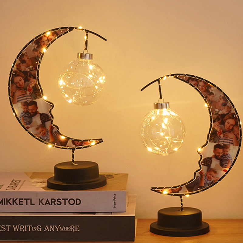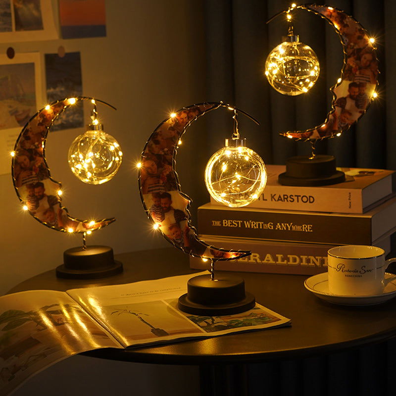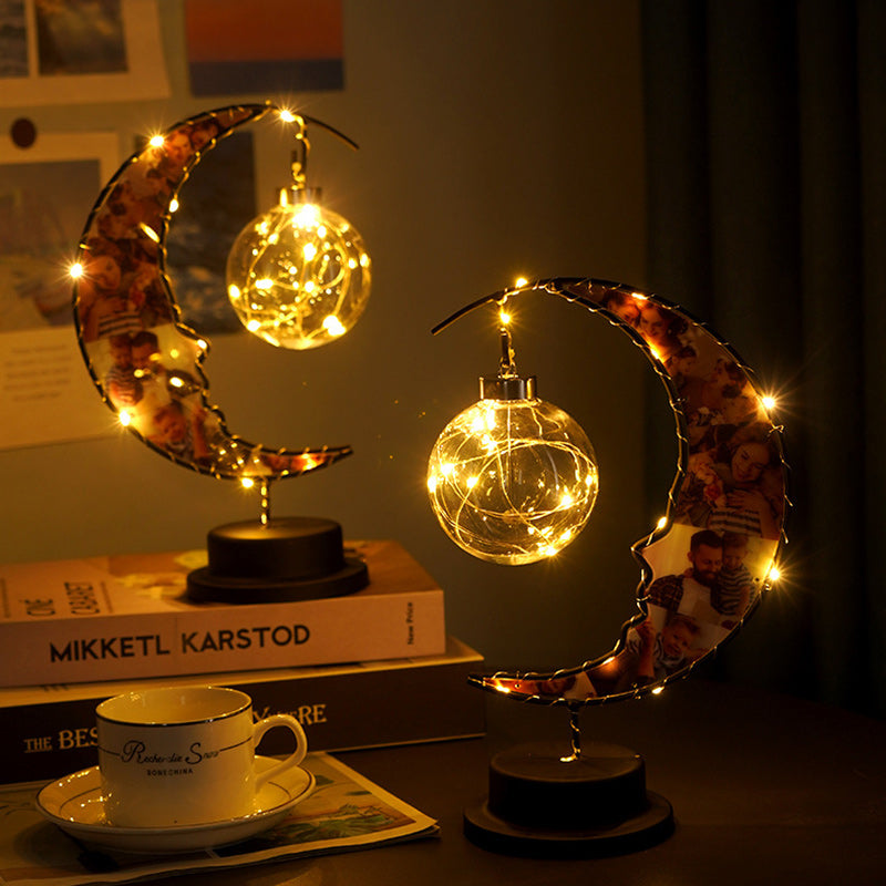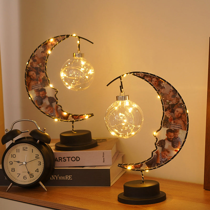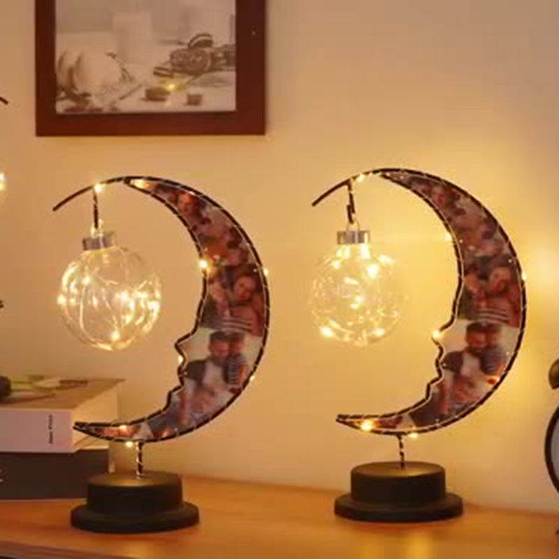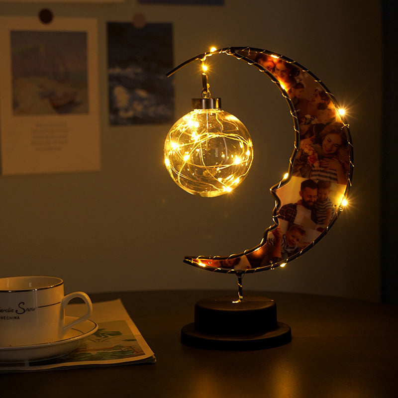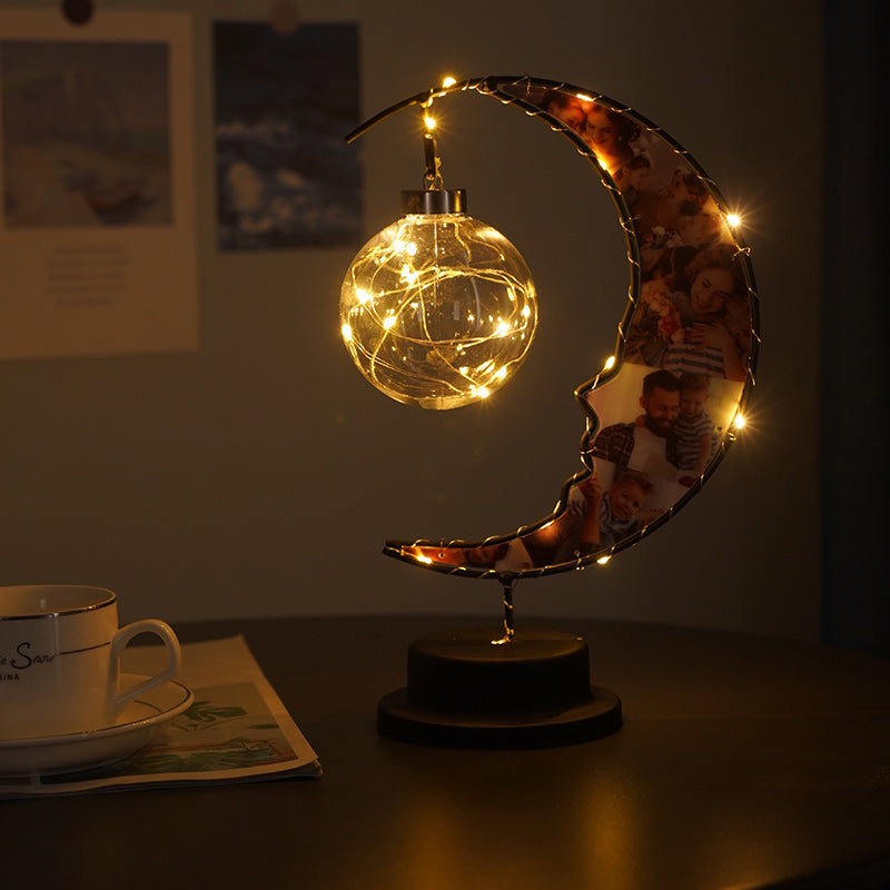 Modern Art Deco Moon Shape Pattern Glass Iron LED Table Lamp For Bedroom