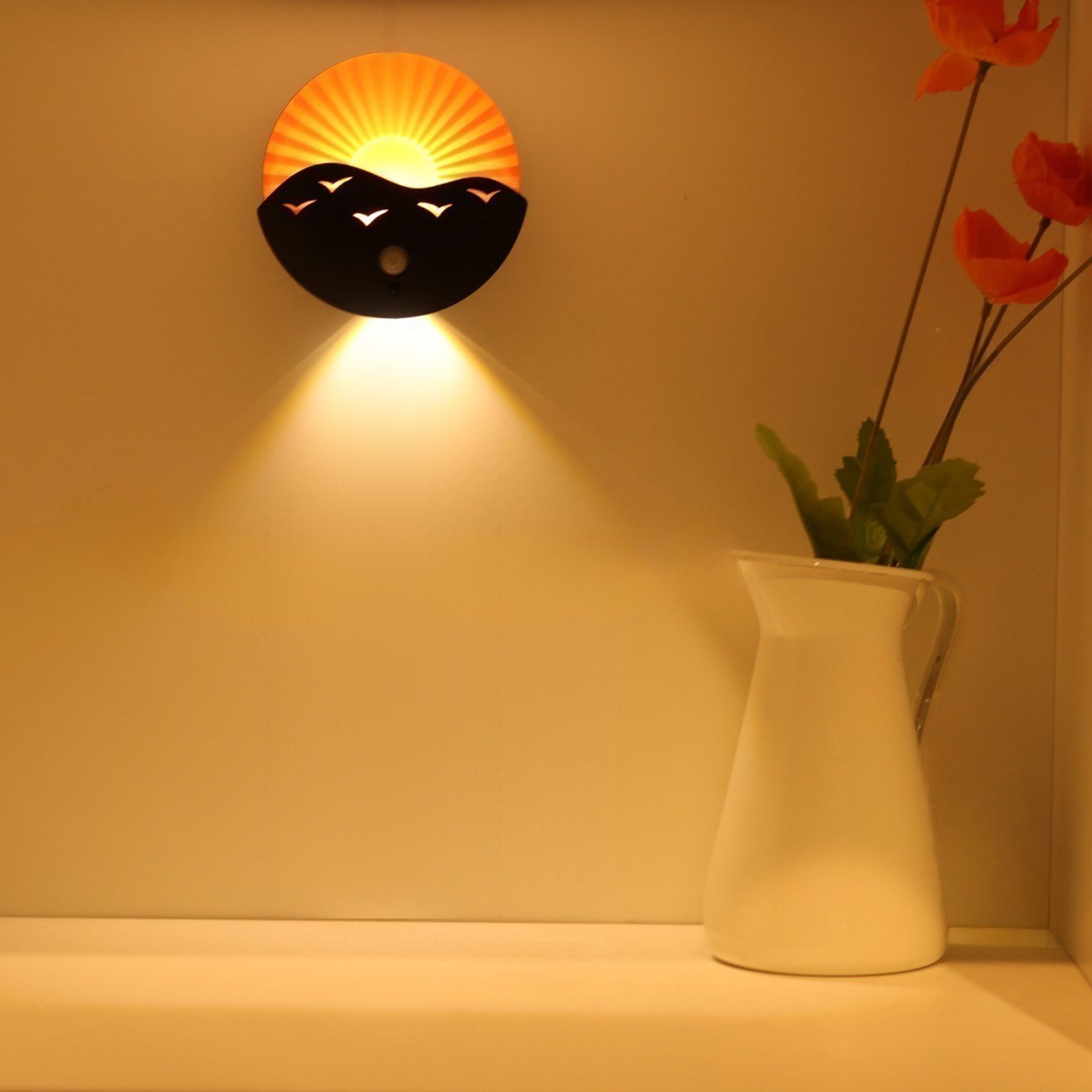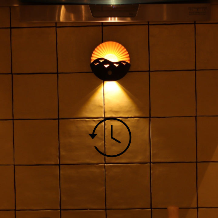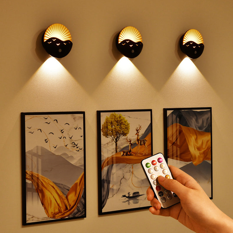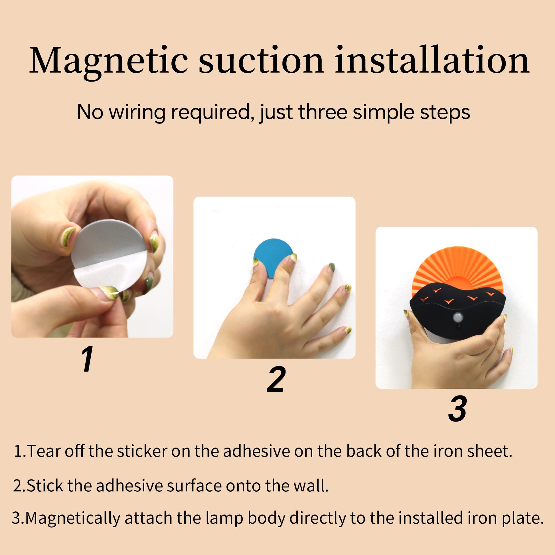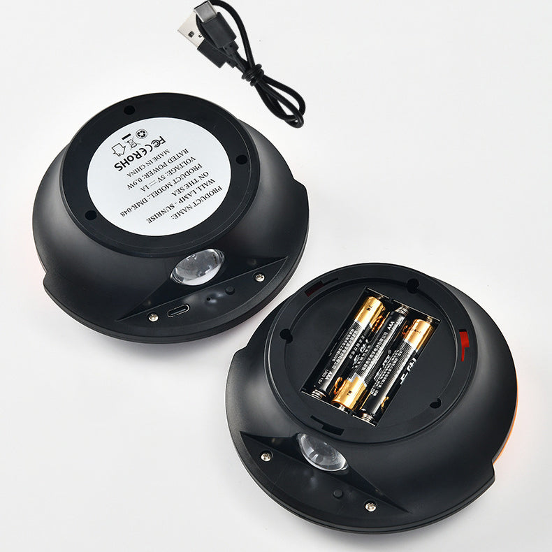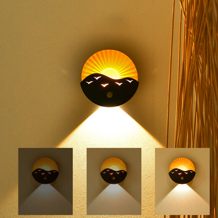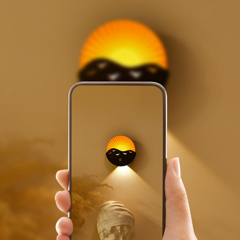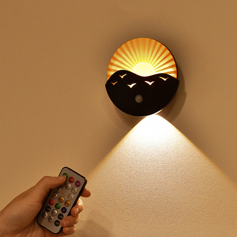 Modern Art Deco Rechargeable Battery Magnetically Round Sunrise ABS LED Wall Sconce Lamp For Hallway