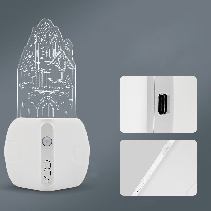 Modern Art Deco Rechargeable Human Sensor Magnetic ABS Acrylic Castle LED Wall Sconce Lamp Night Light For Hallway