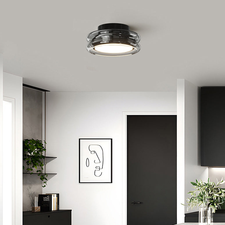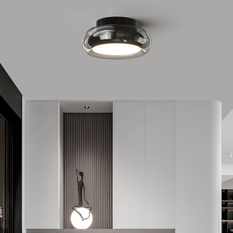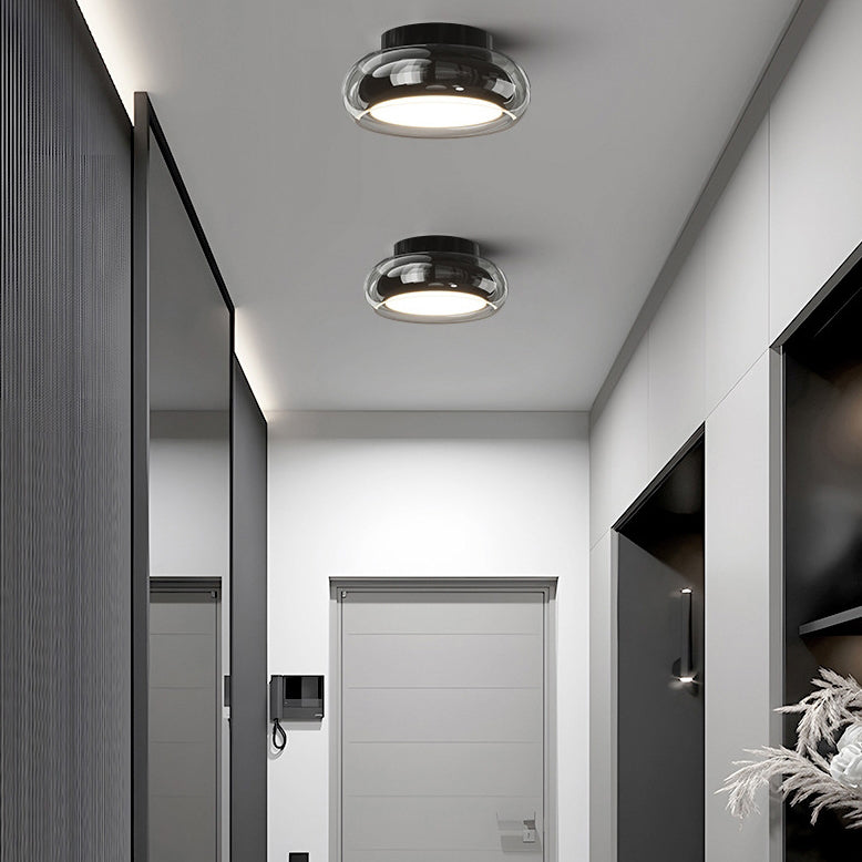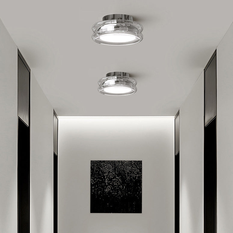 Modern Art Deco Round Acrylic Glass Hardware LED Semi-Flush Mount Ceiling Light For Hallways
