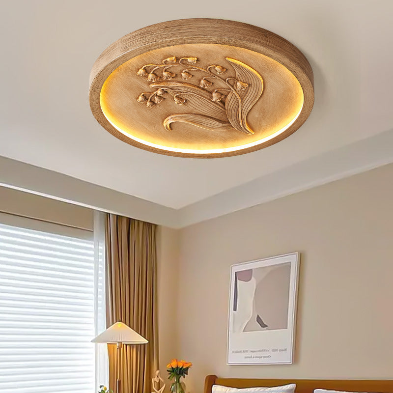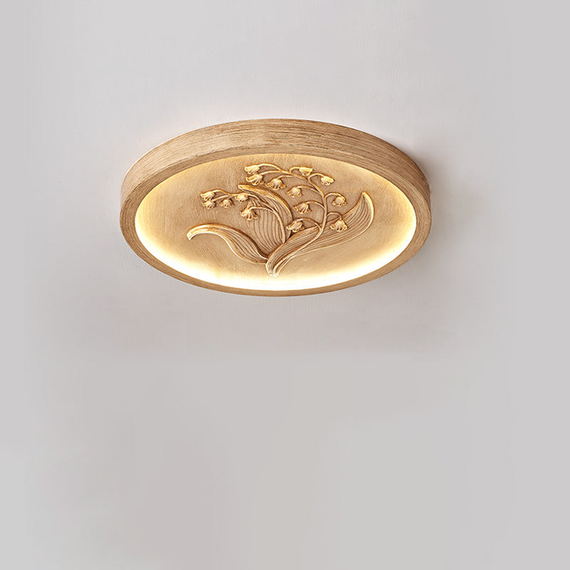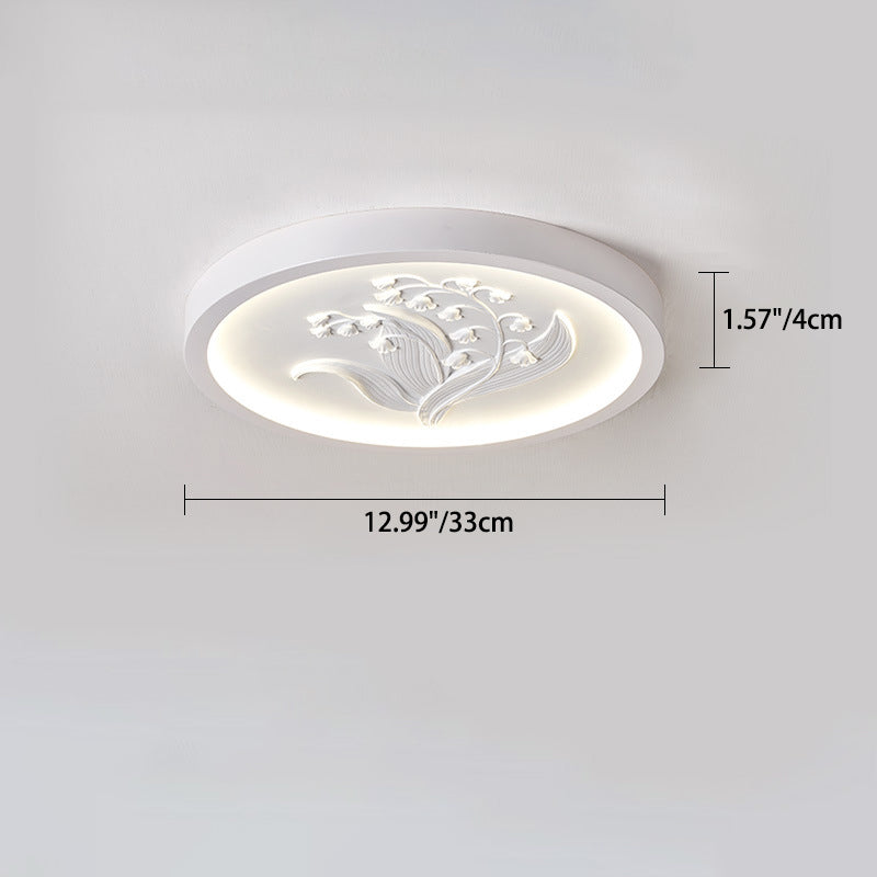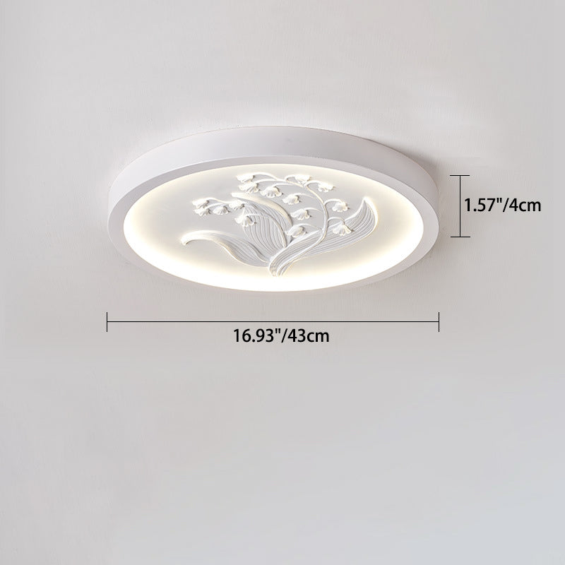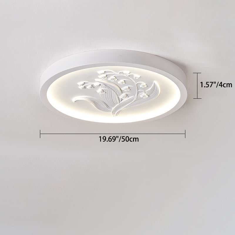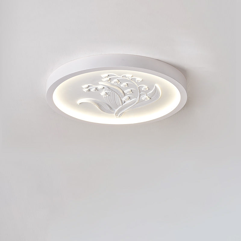 Modern Art Deco Round Bellflower Iron Resin Acrylic LED Flush Mount Ceiling Light For Bedroom