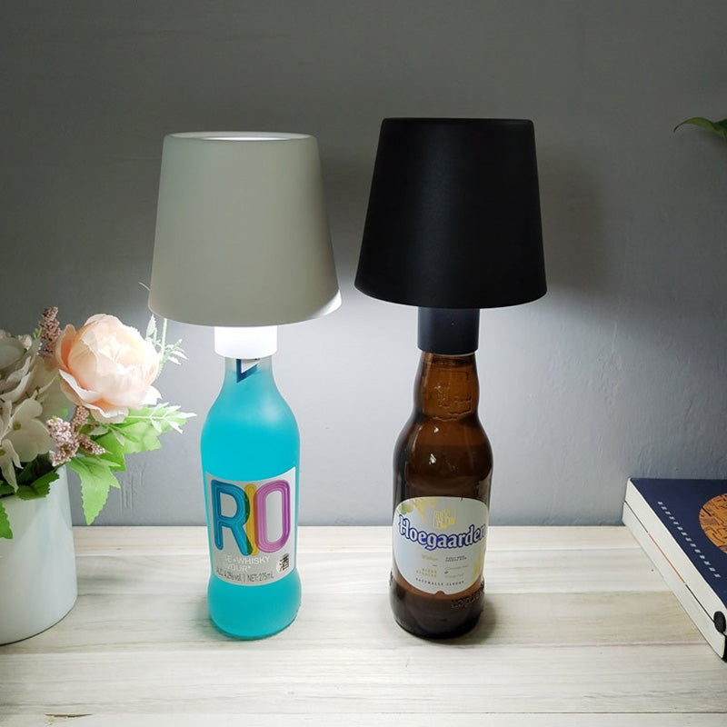 Modern Art Deco Round Cylinder Plastic Acrylic LED Wine Bottle Light Table Lamp For Dining Room