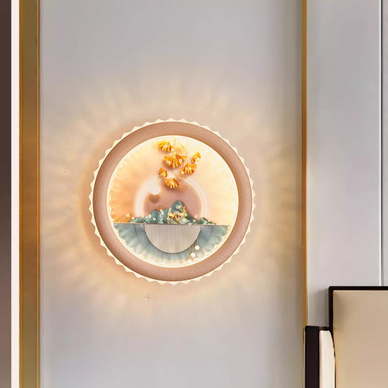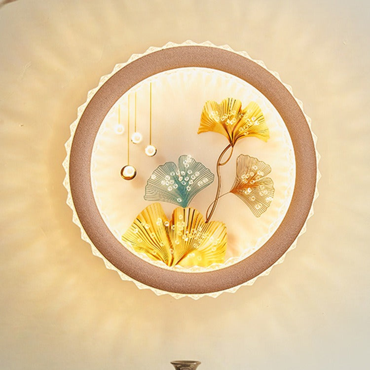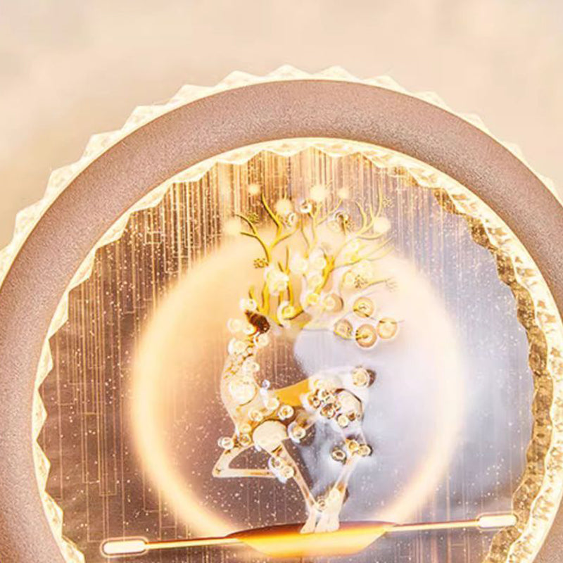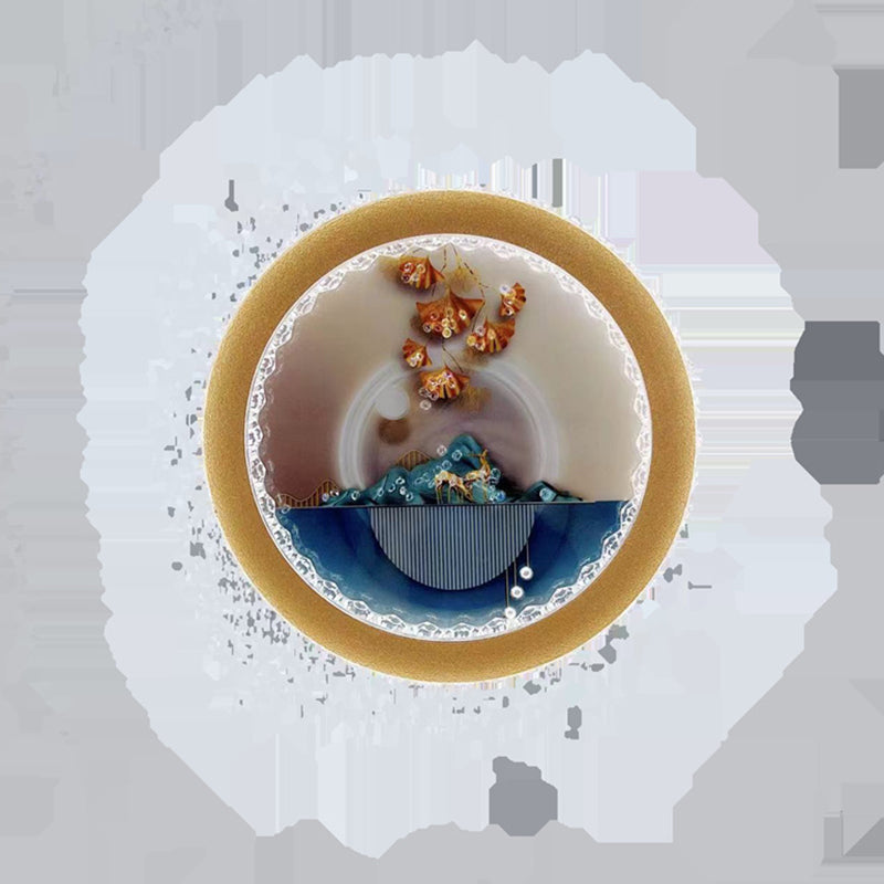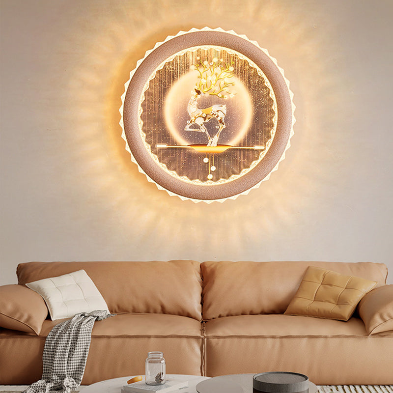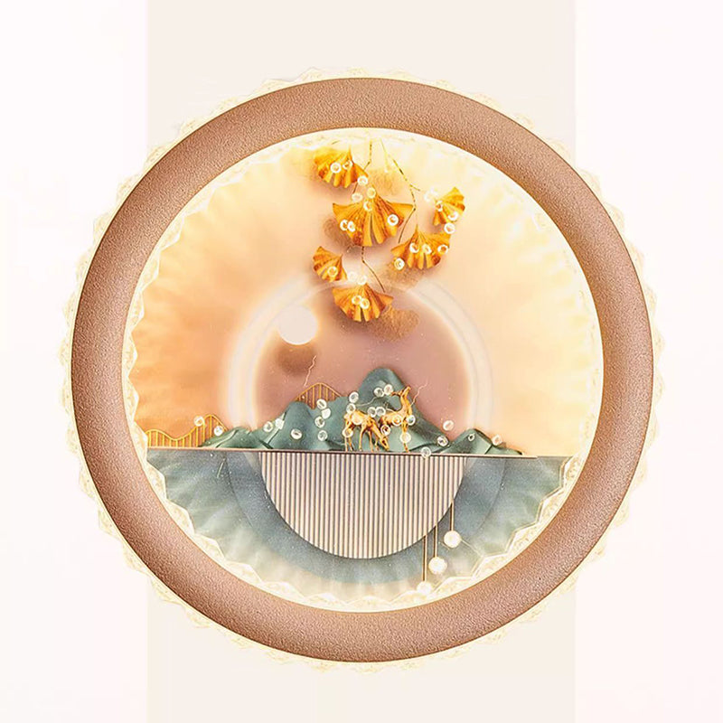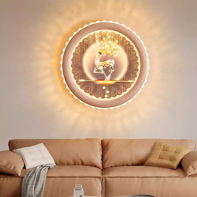 Modern Art Deco Round Fortune Deer Ginkgo Leaf Mural Iron Acrylic LED Wall Sconce Lamp For Living Room