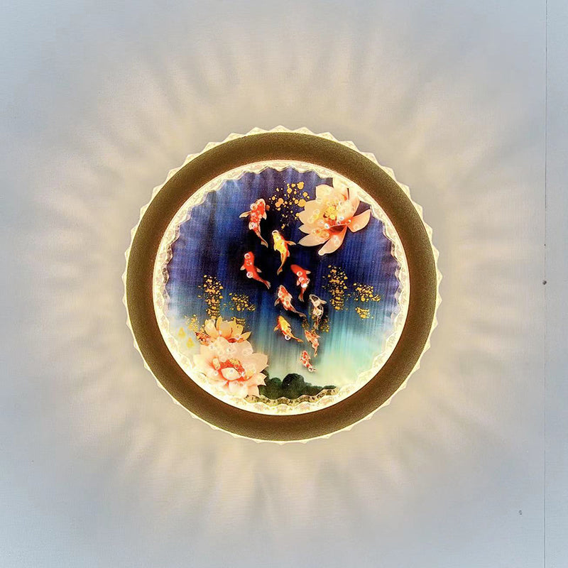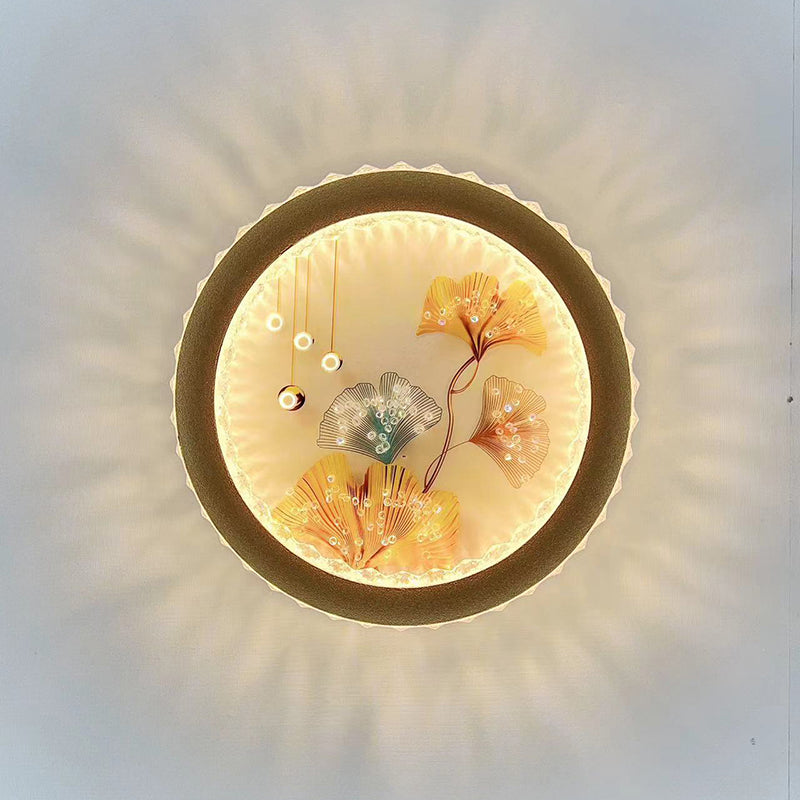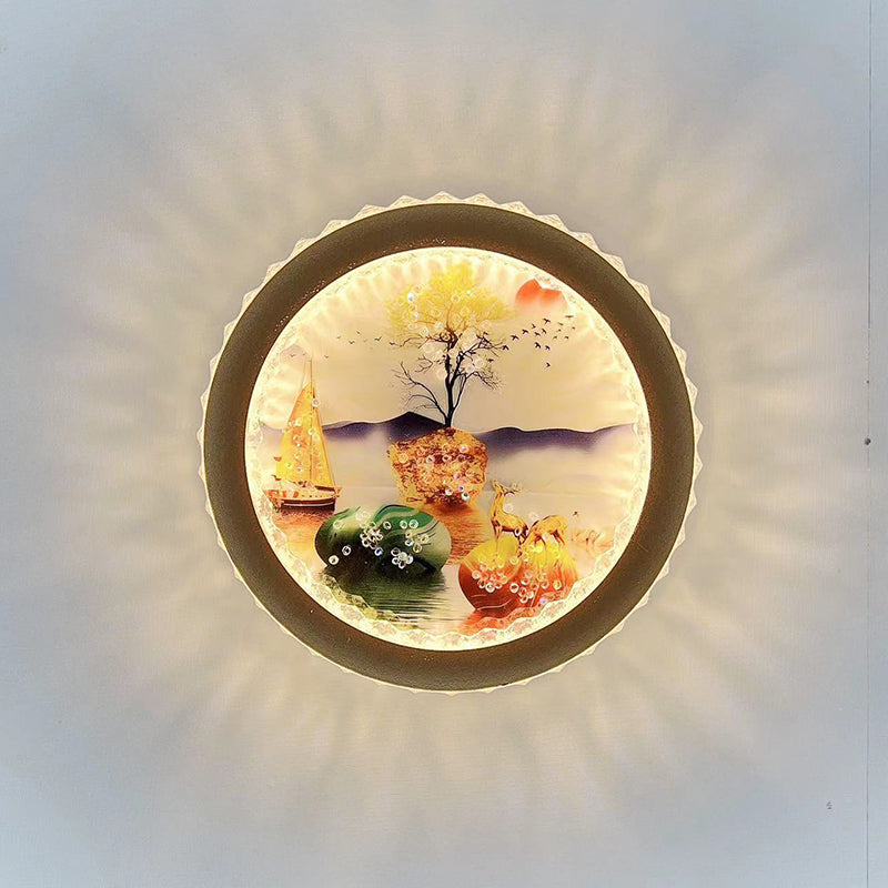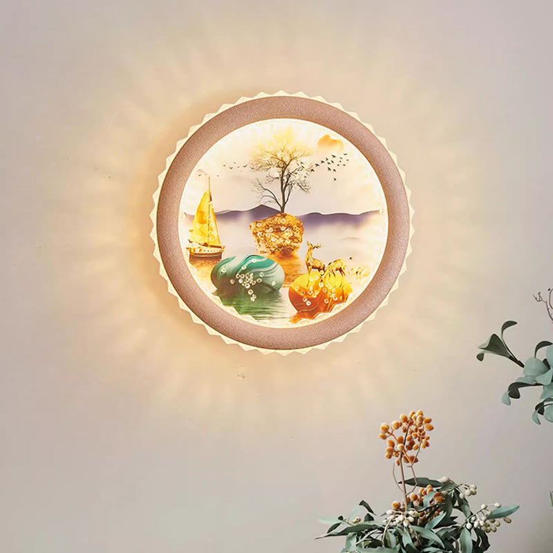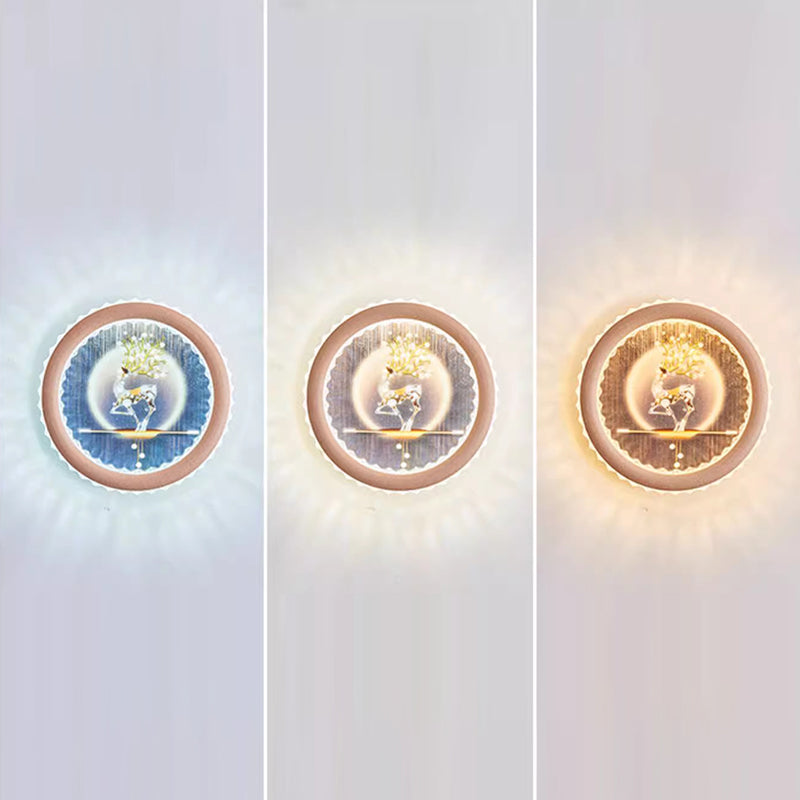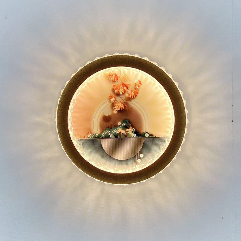 Modern Art Deco Round Fortune Deer Ginkgo Leaf Mural Iron Acrylic LED Wall Sconce Lamp For Living Room