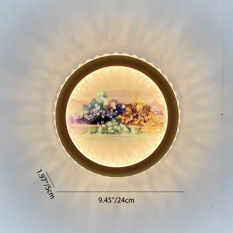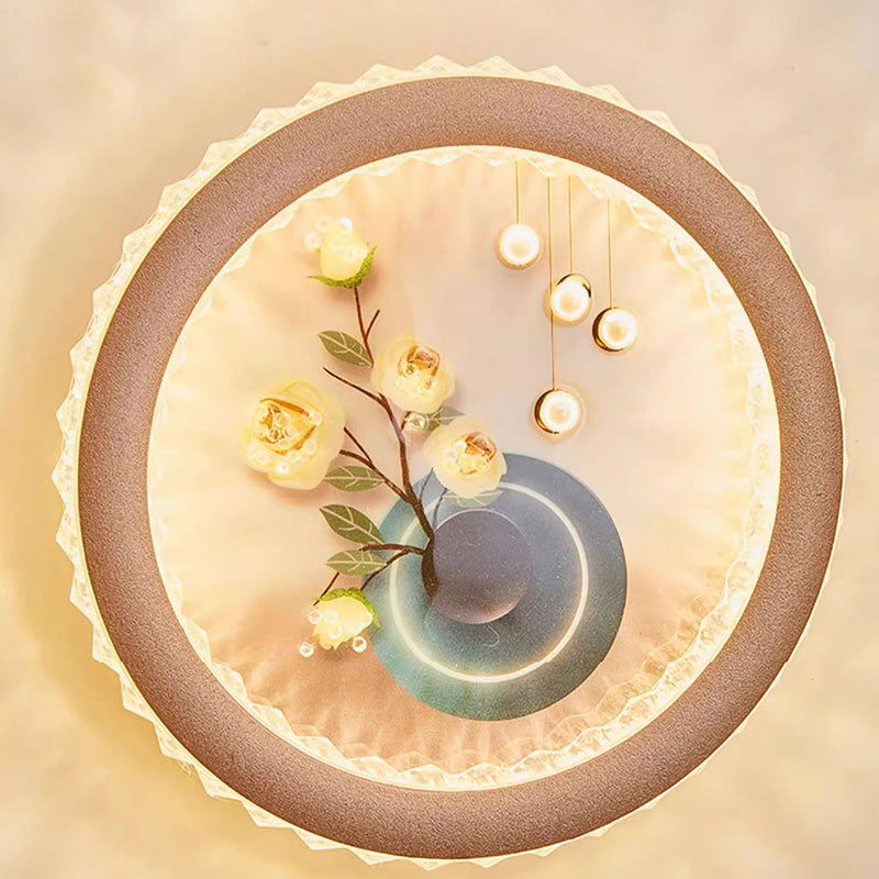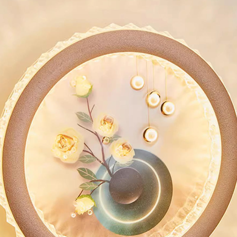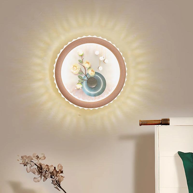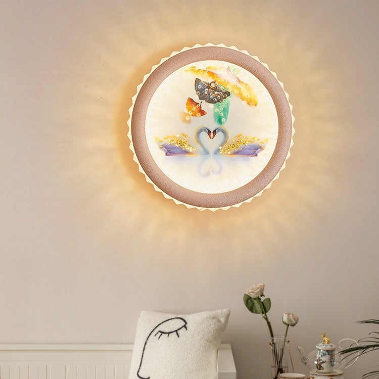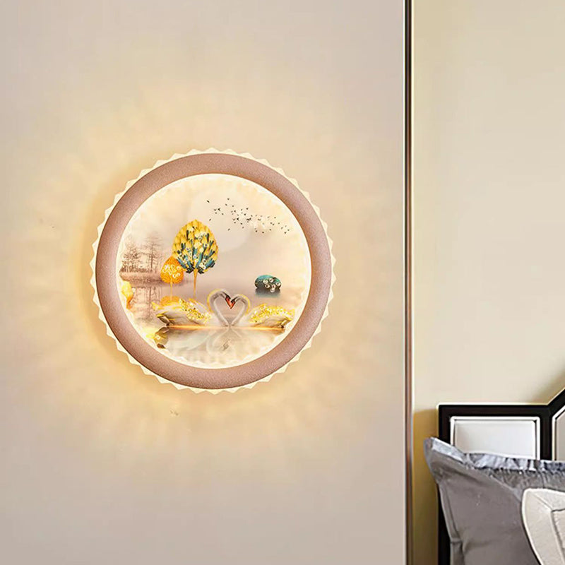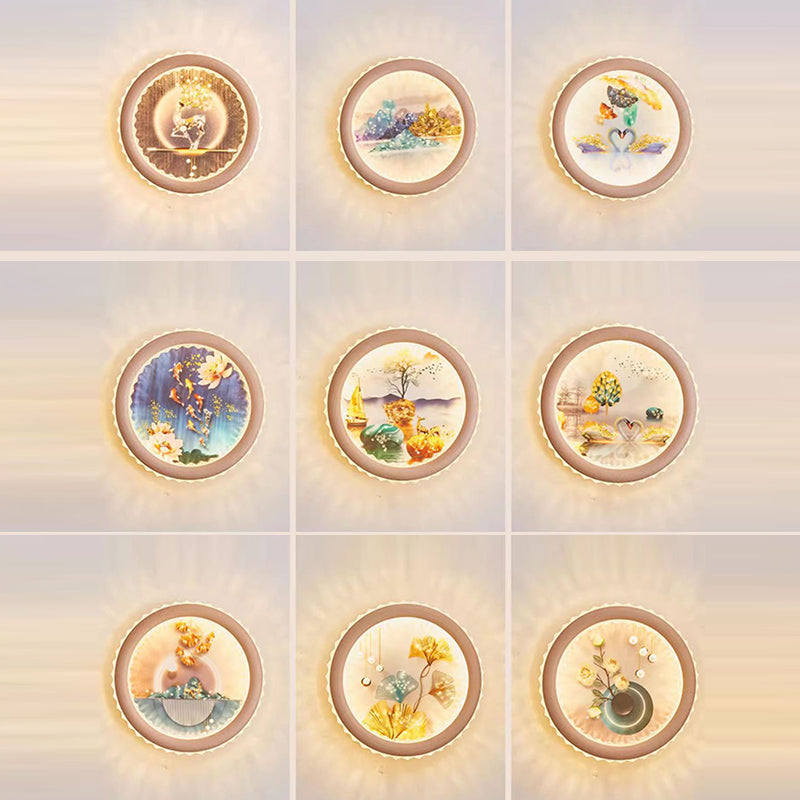 Modern Art Deco Round Fortune Deer Ginkgo Leaf Mural Iron Acrylic LED Wall Sconce Lamp For Living Room