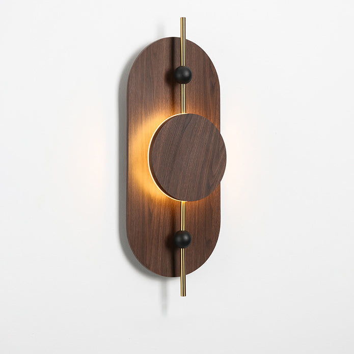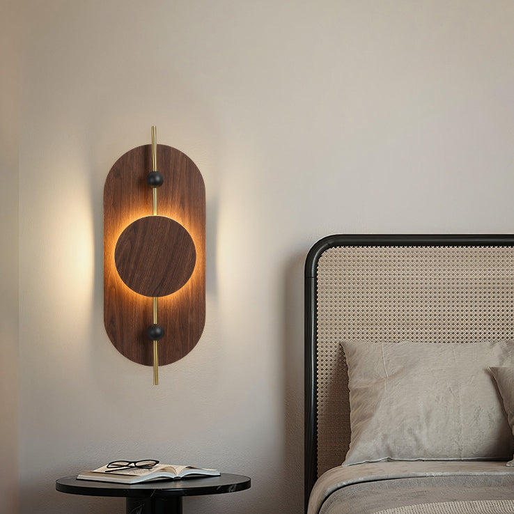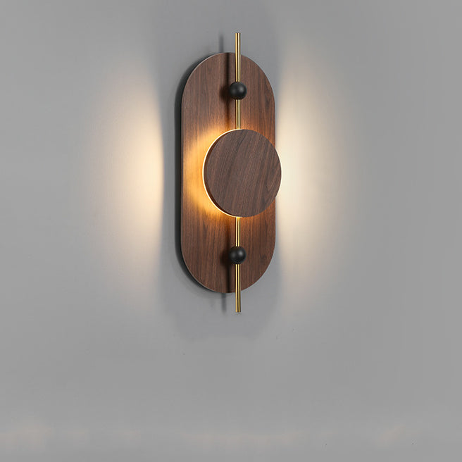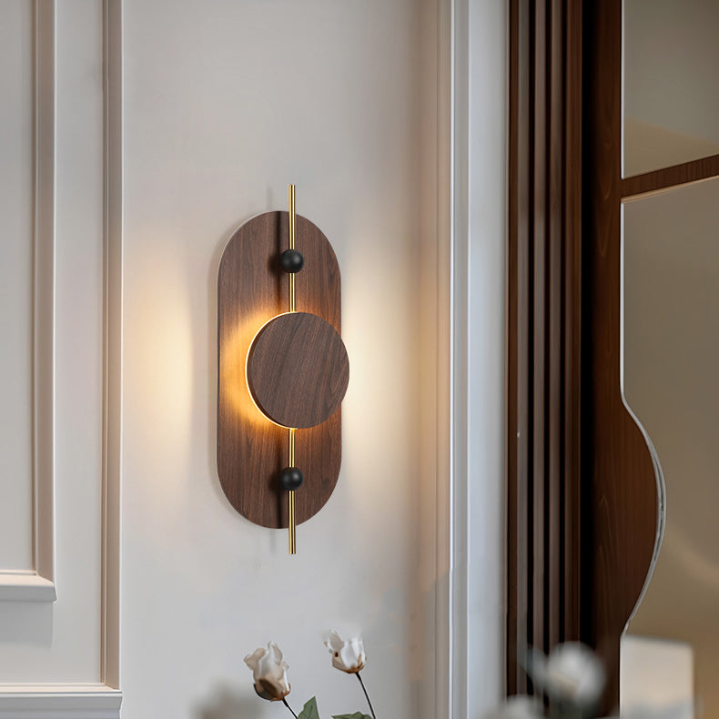 Modern Art Deco Round Oval Solid Wood Iron Splicing LED Wall Sconce Lamp For Living Room