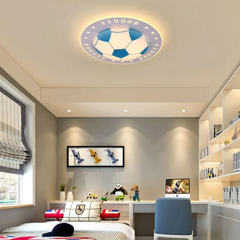Modern Art Deco Soccer Ball Round Acrylic Iron LED Flush Mount Ceiling Light For Living Room