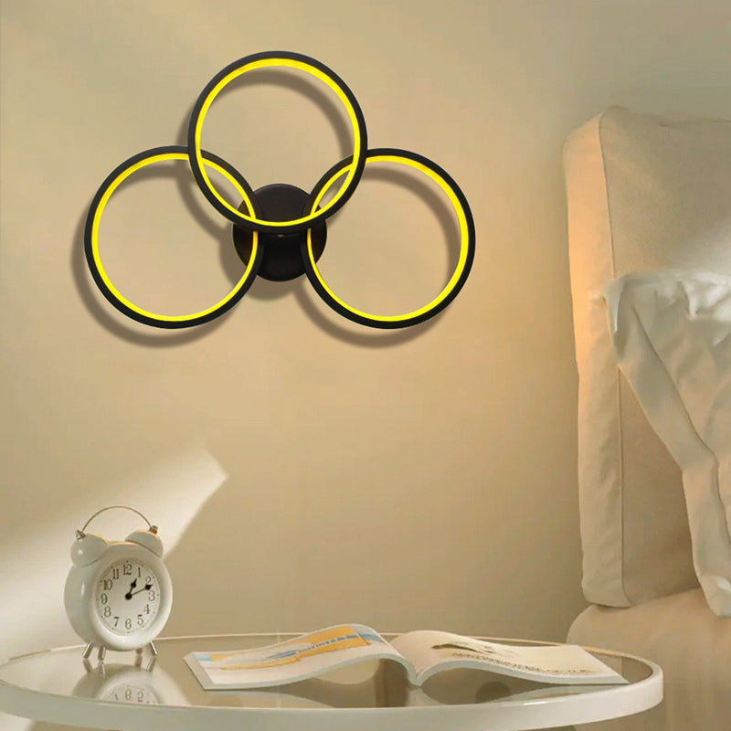 Modern Art Deco Triple Circle PC Shade LED Wall Sconce Lamp For Bedroom