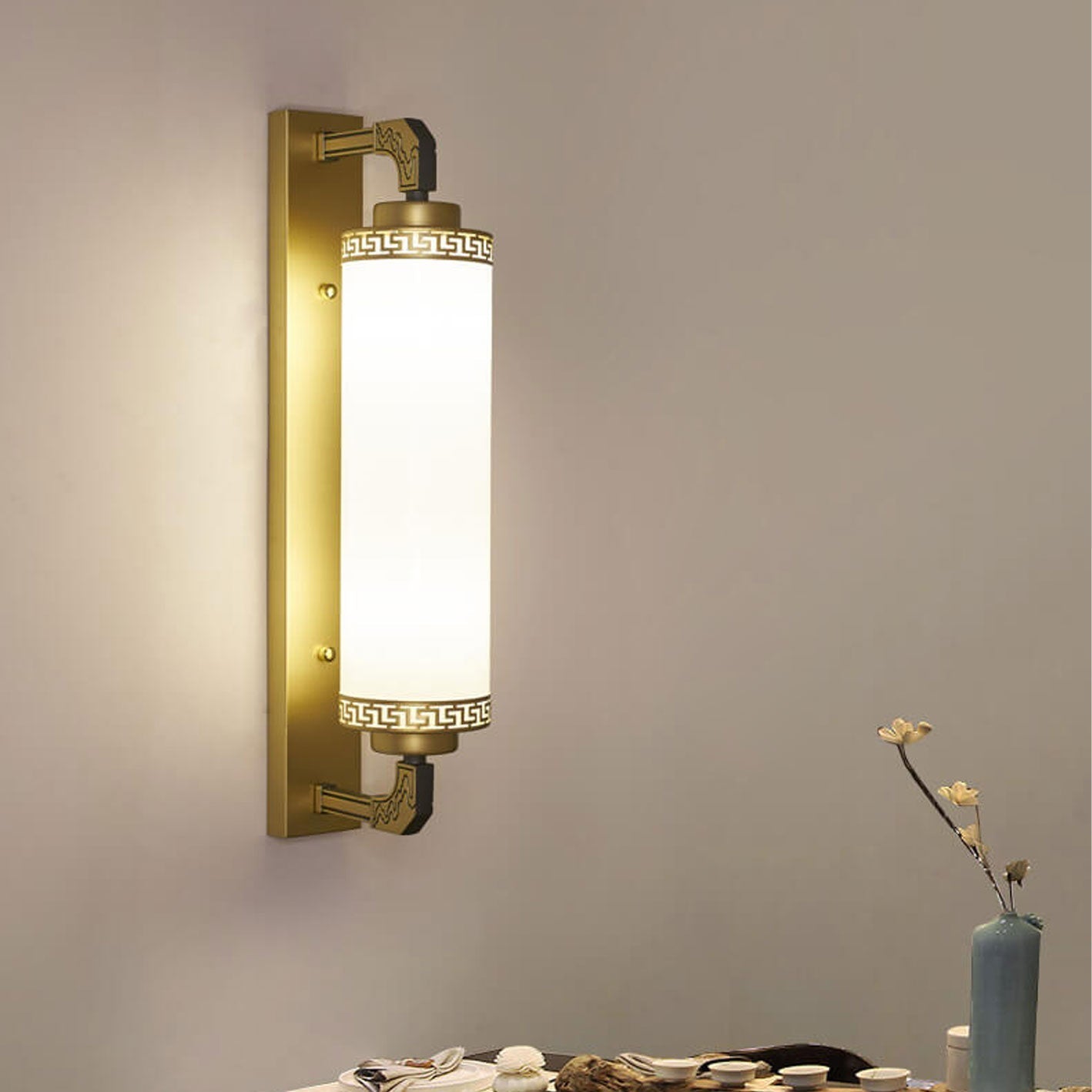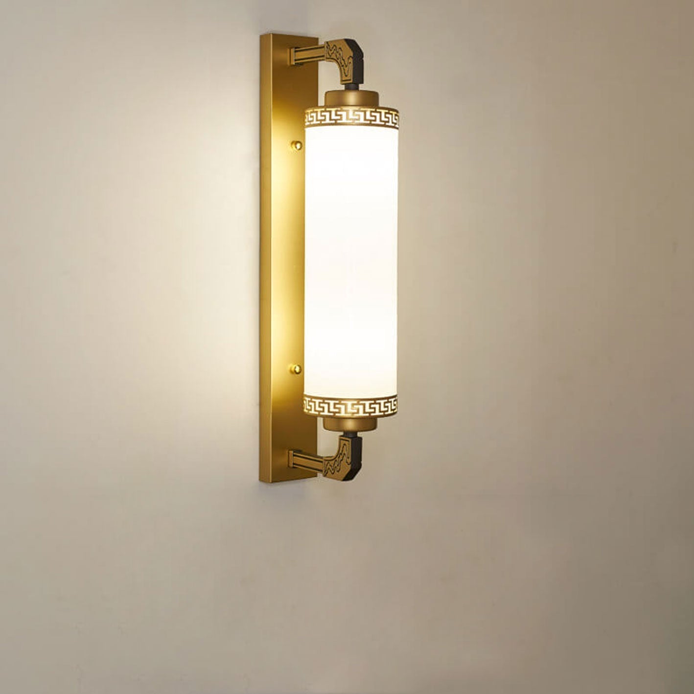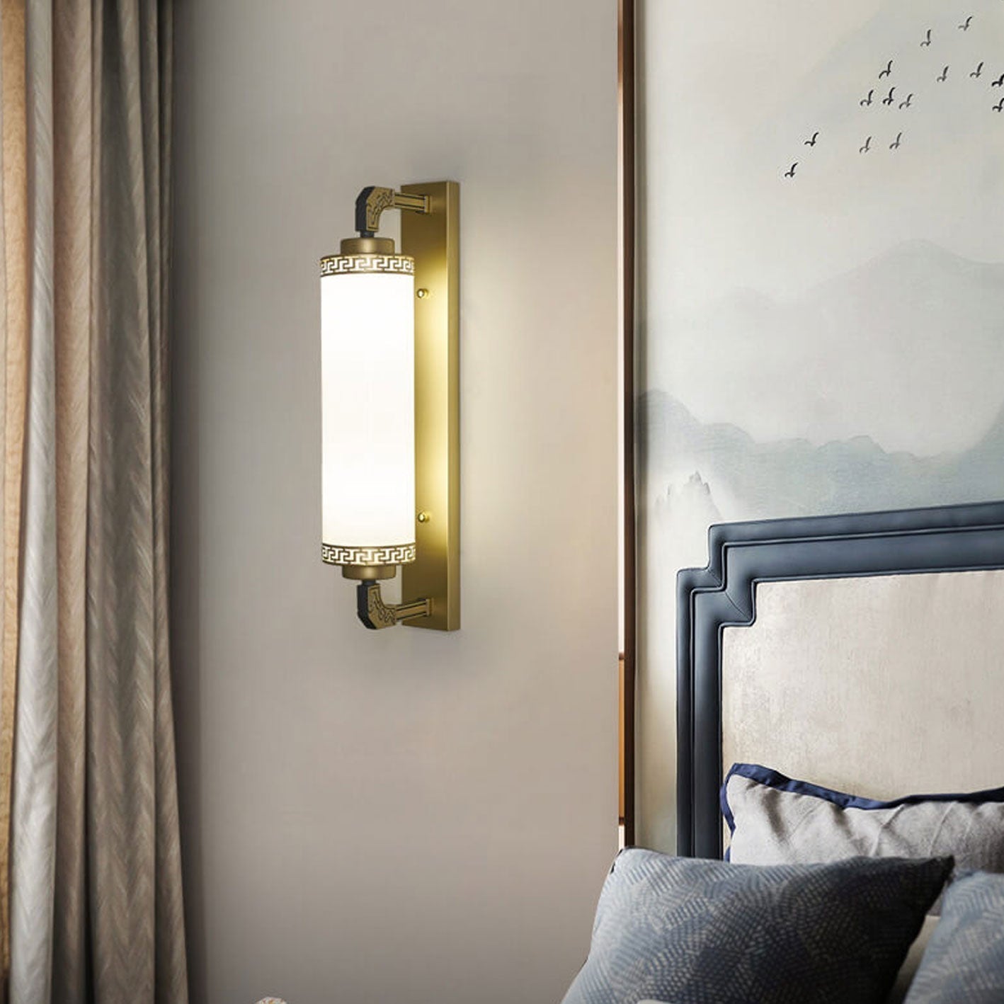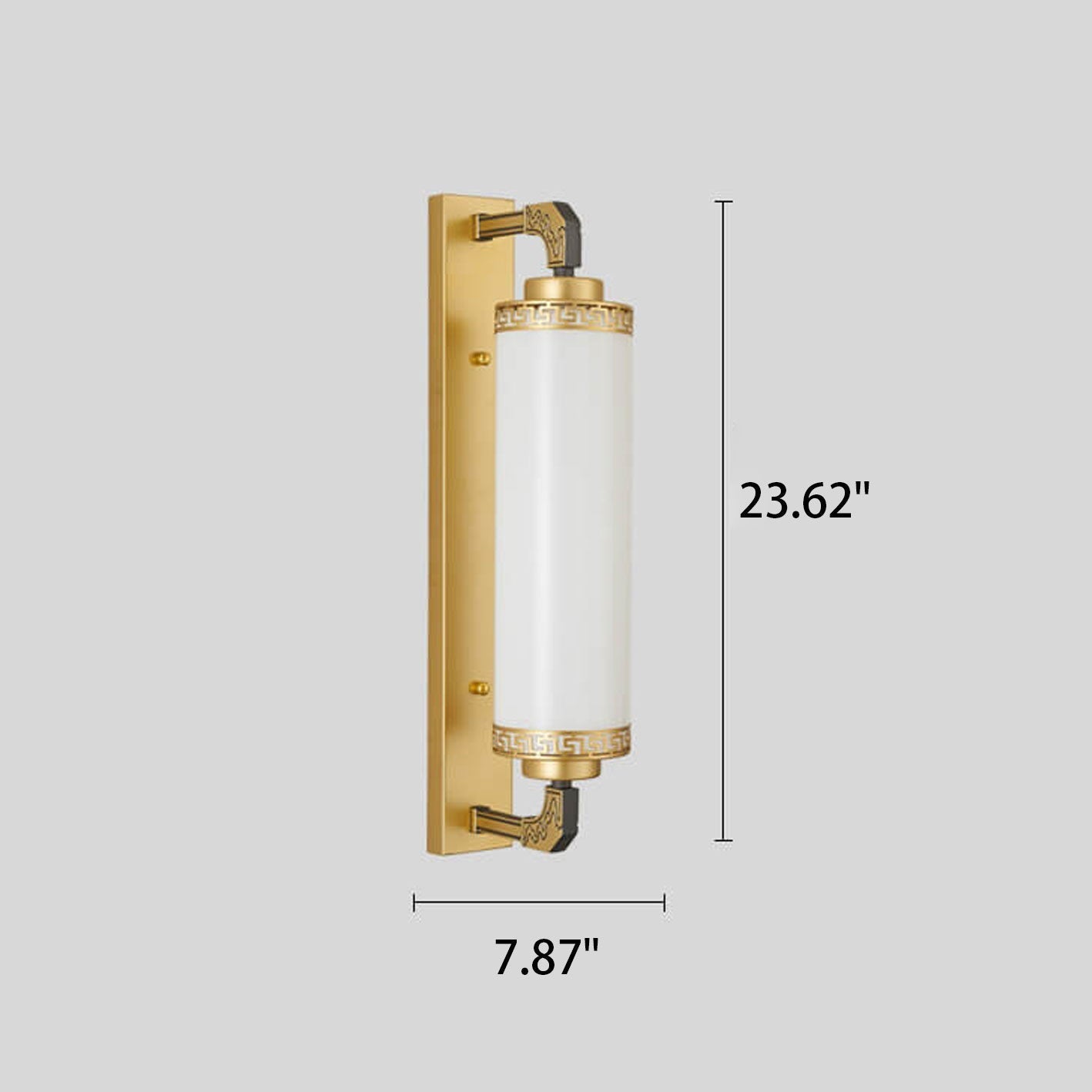 Modern Chinese Column Iron Glass 2-Light Wall Sconce Lamp