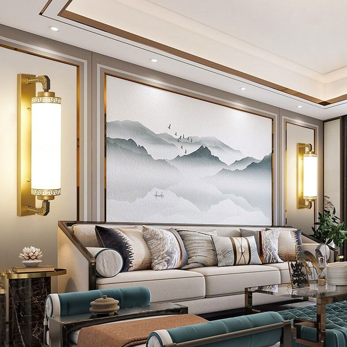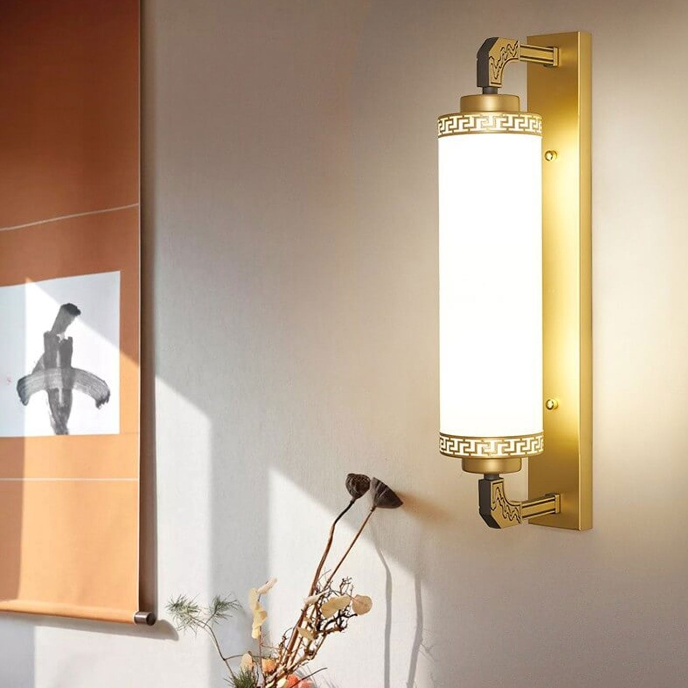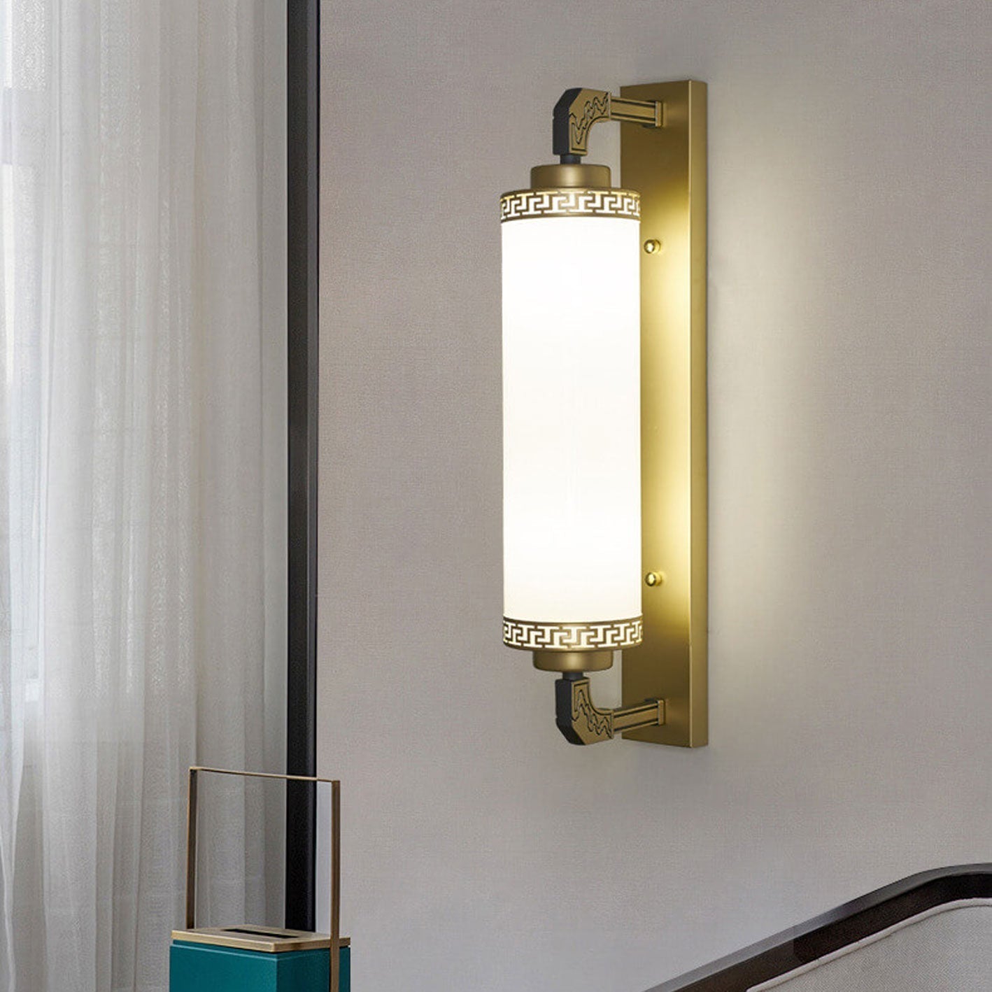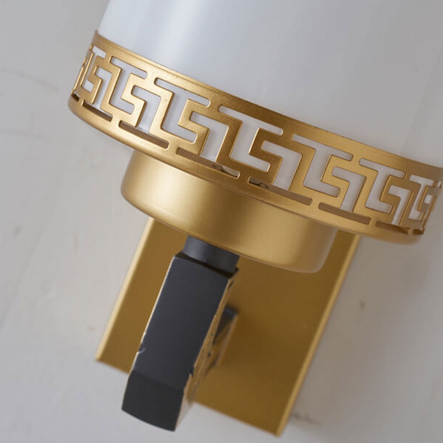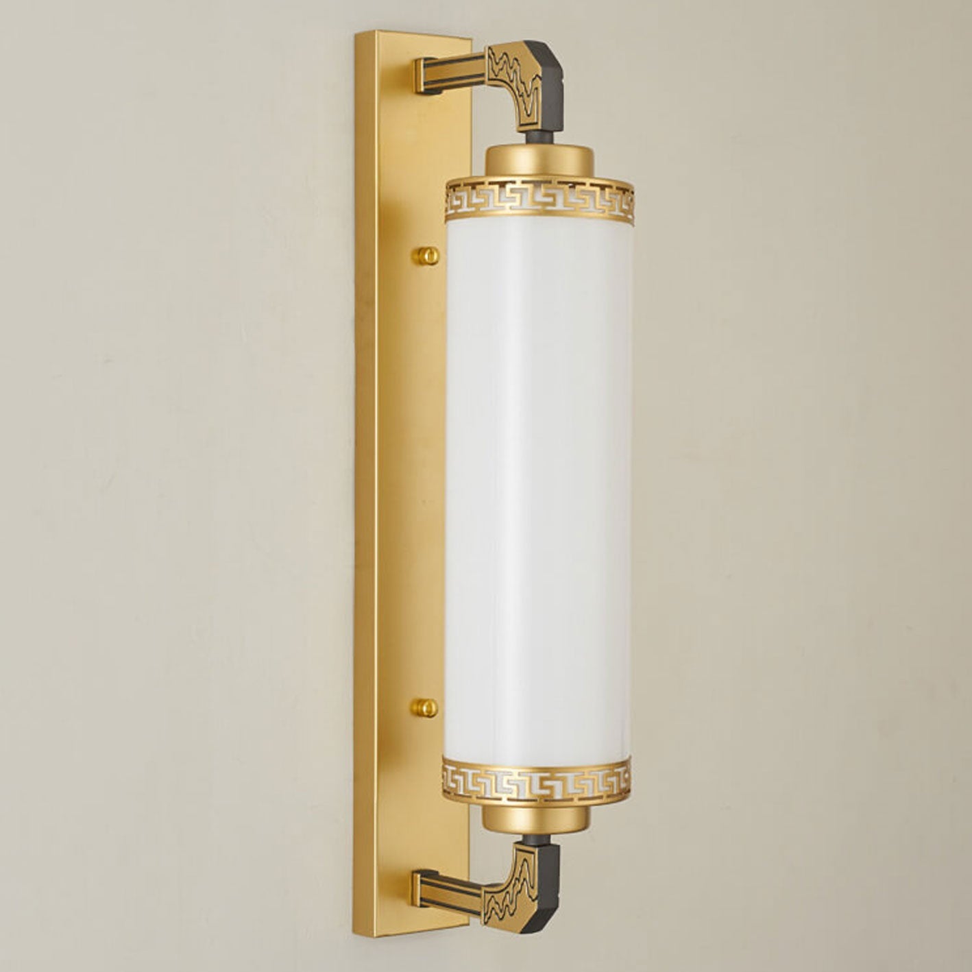Modern Chinese Column Iron Glass 2-Light Wall Sconce Lamp
