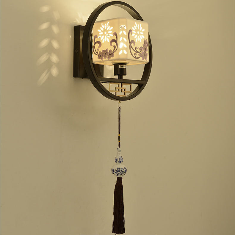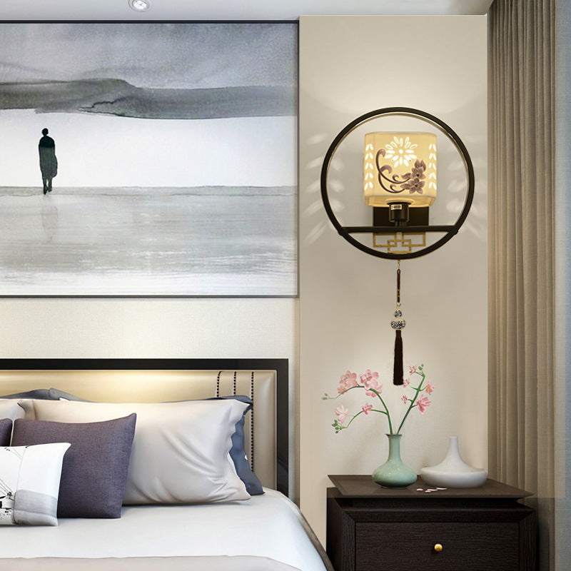 Modern Chinese Fabric Circle Locket 1- Light Wall Sconce Lamp