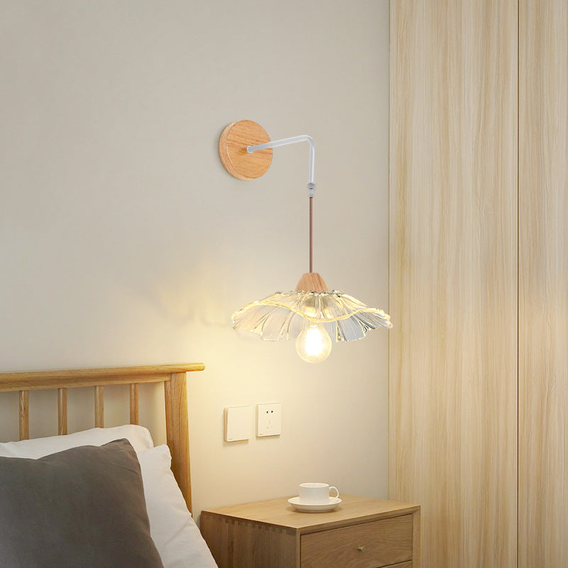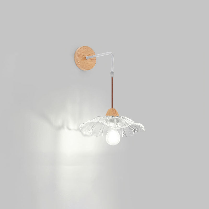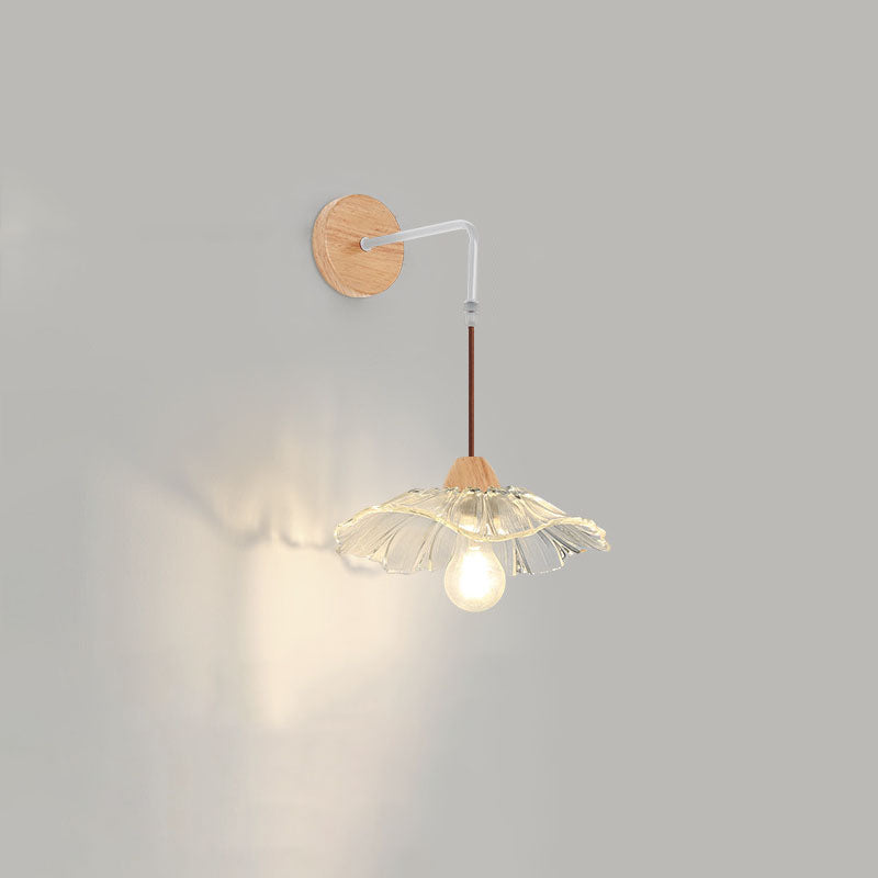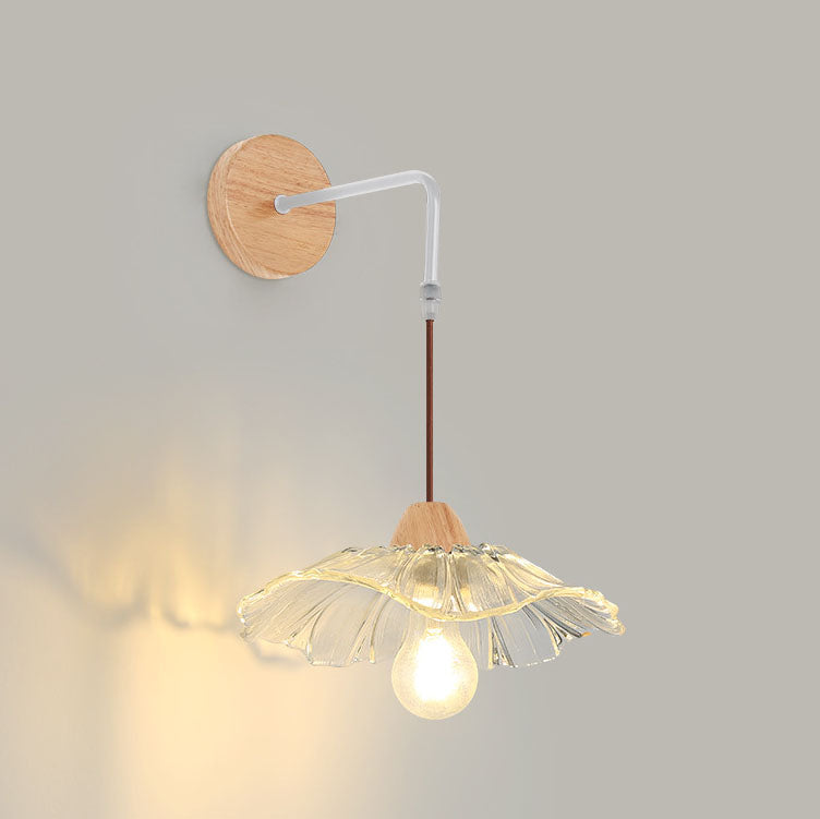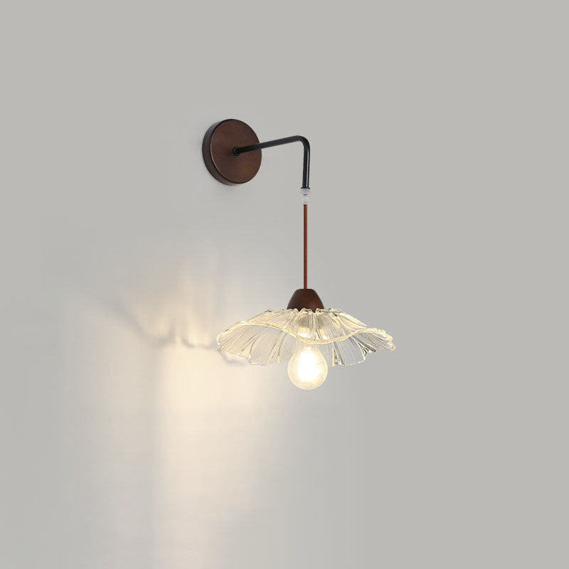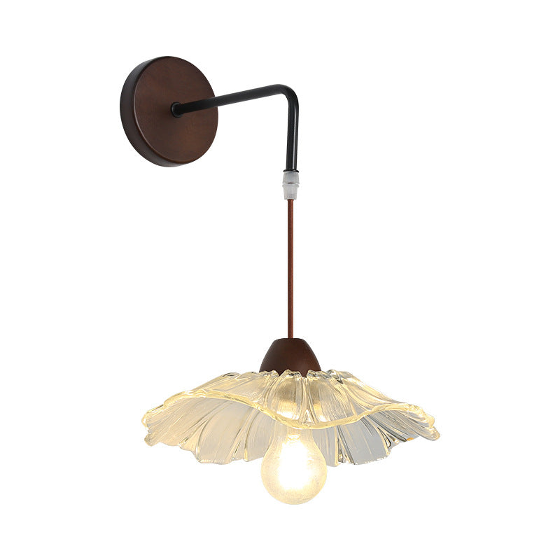 Modern Chinese Glass Lotus Leaf Flower Walnut 1-Light Wall Sconce Lamp