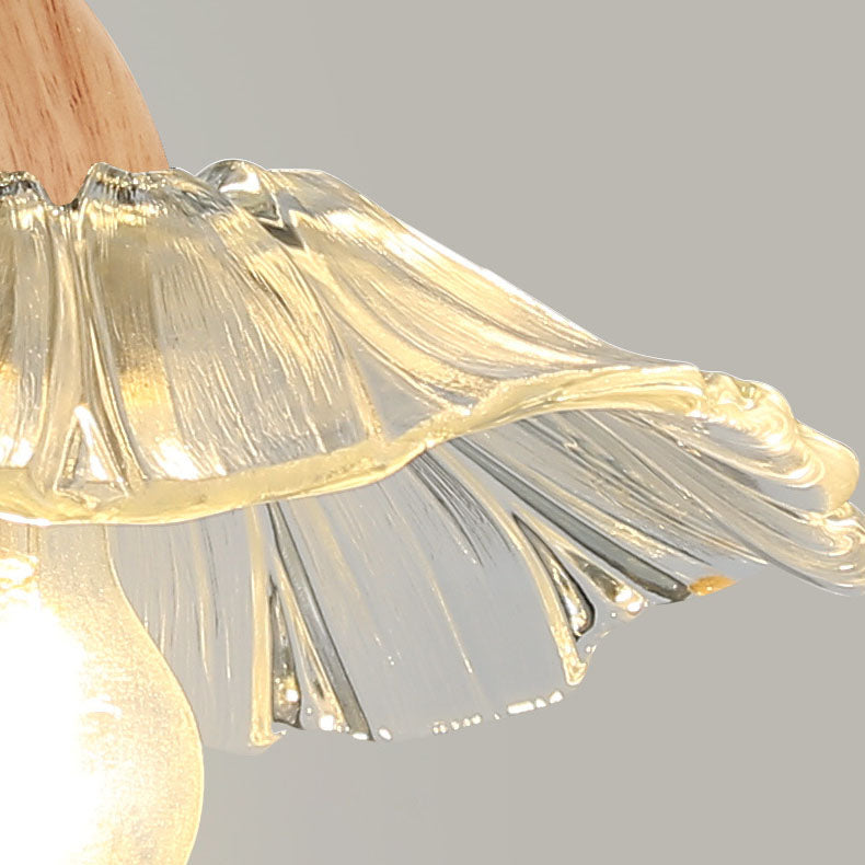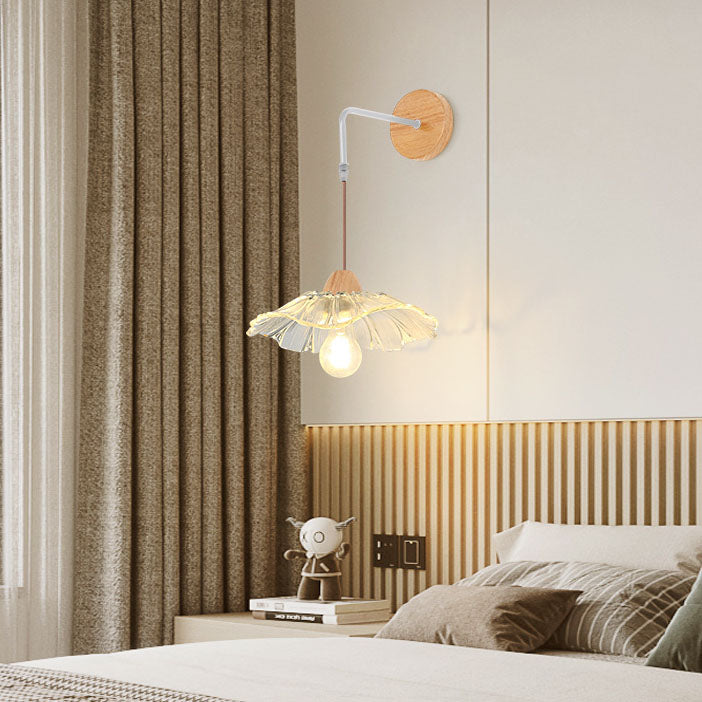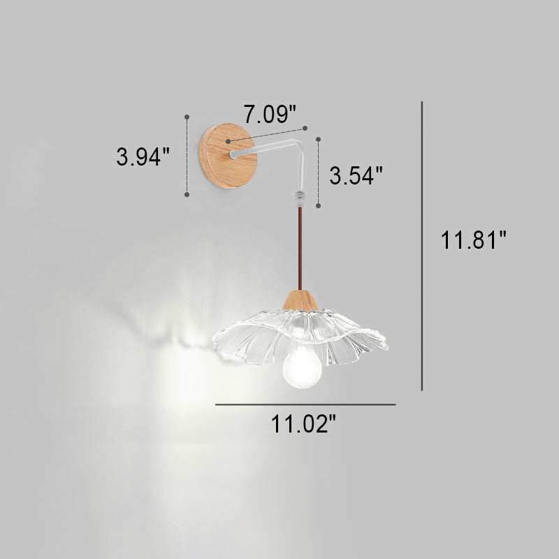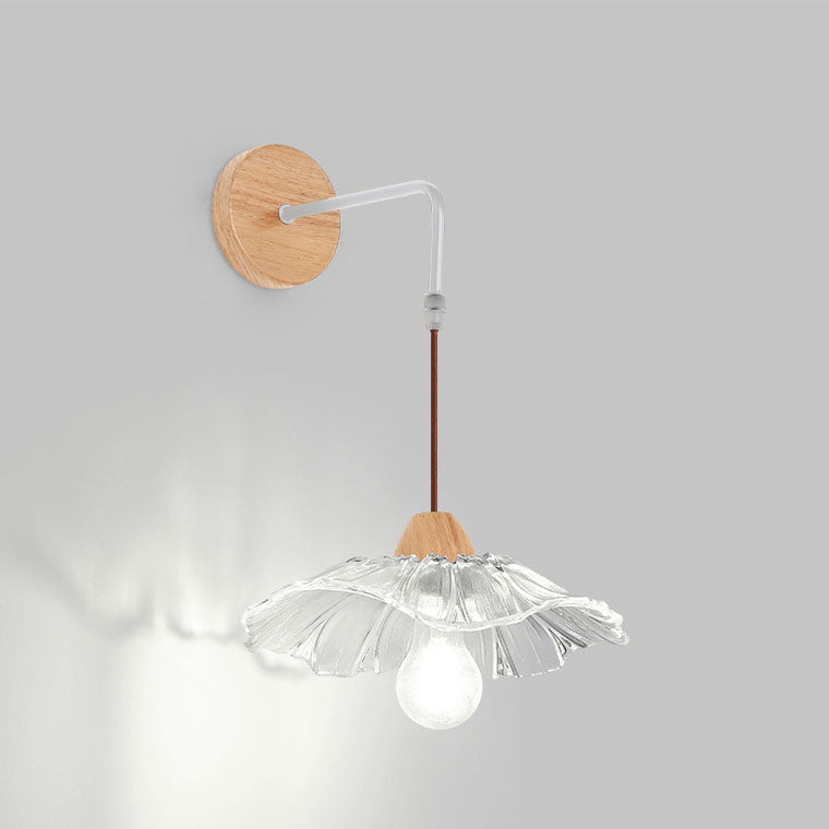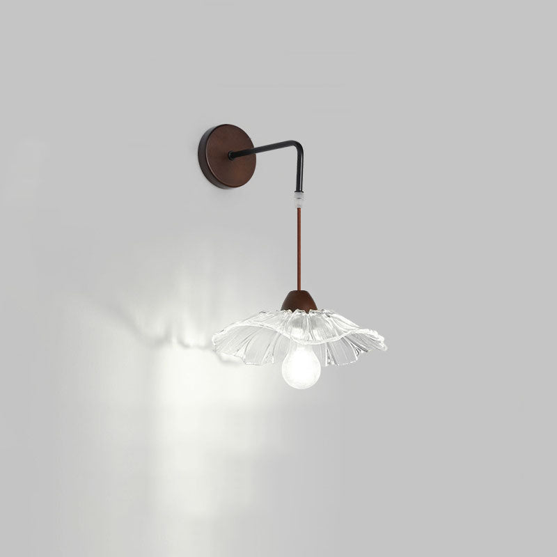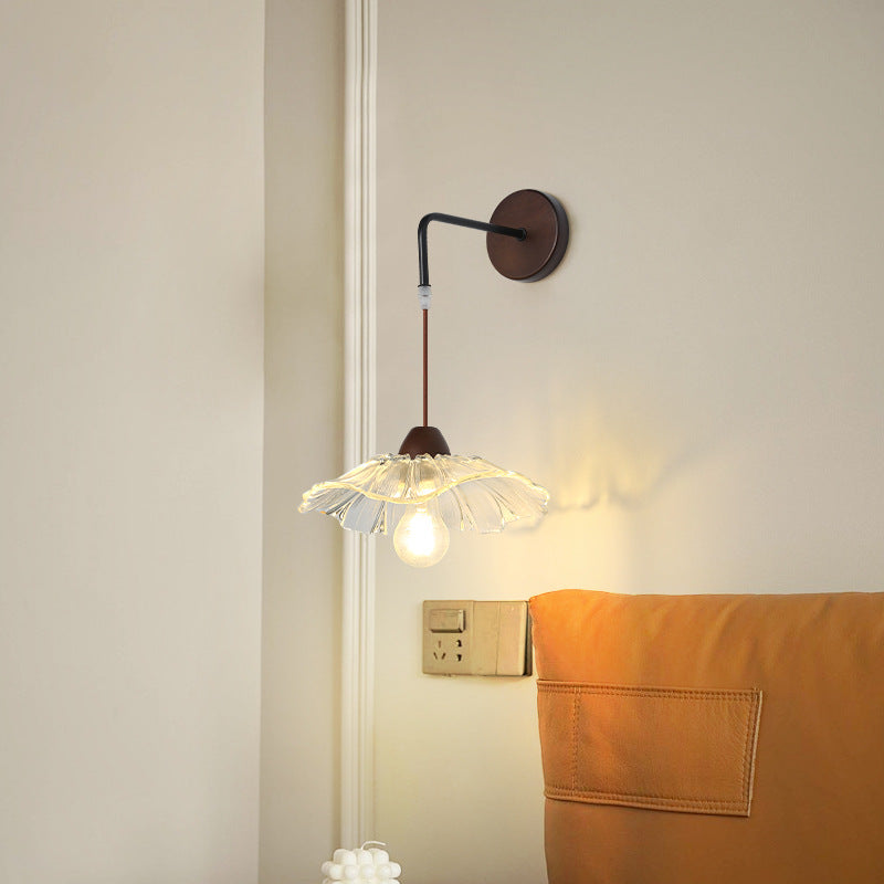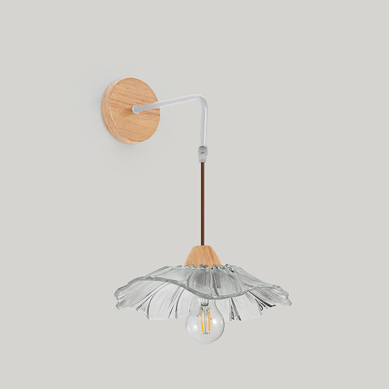 Modern Chinese Glass Lotus Leaf Flower Walnut 1-Light Wall Sconce Lamp