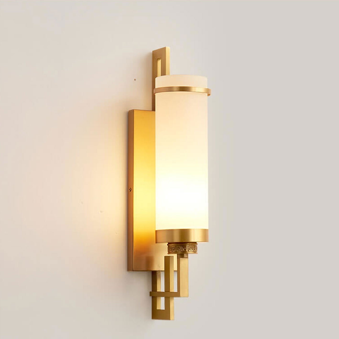 Modern Chinese Simple Glass Full Copper 1-Light Wall Sconce Lamp