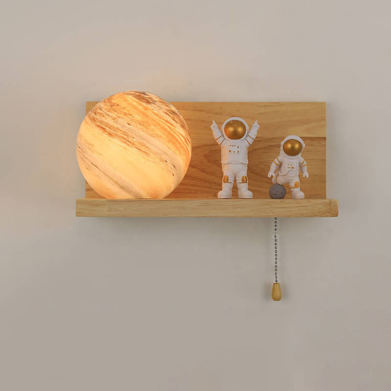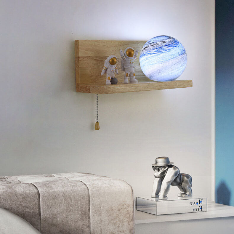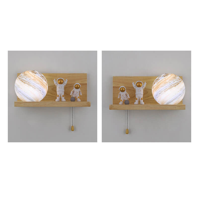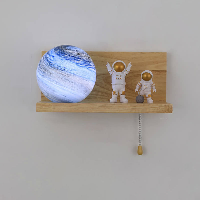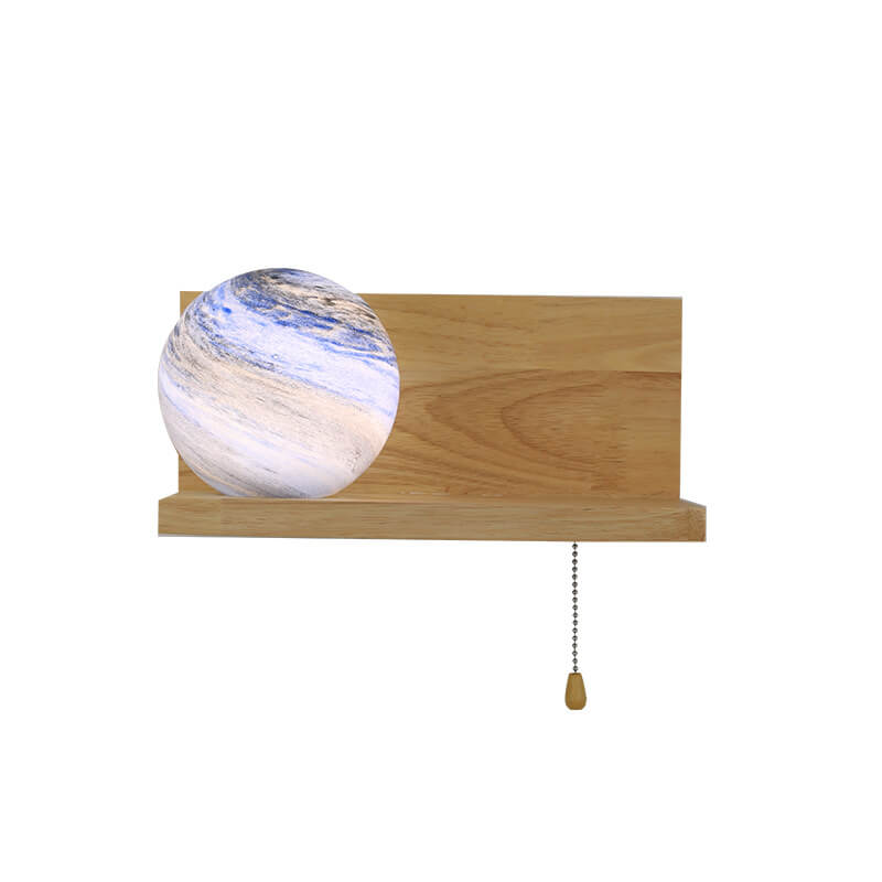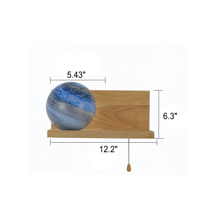 Modern Creative Planet Glass Solid Wood Square Base 1-Light Wall Sconce Lamp