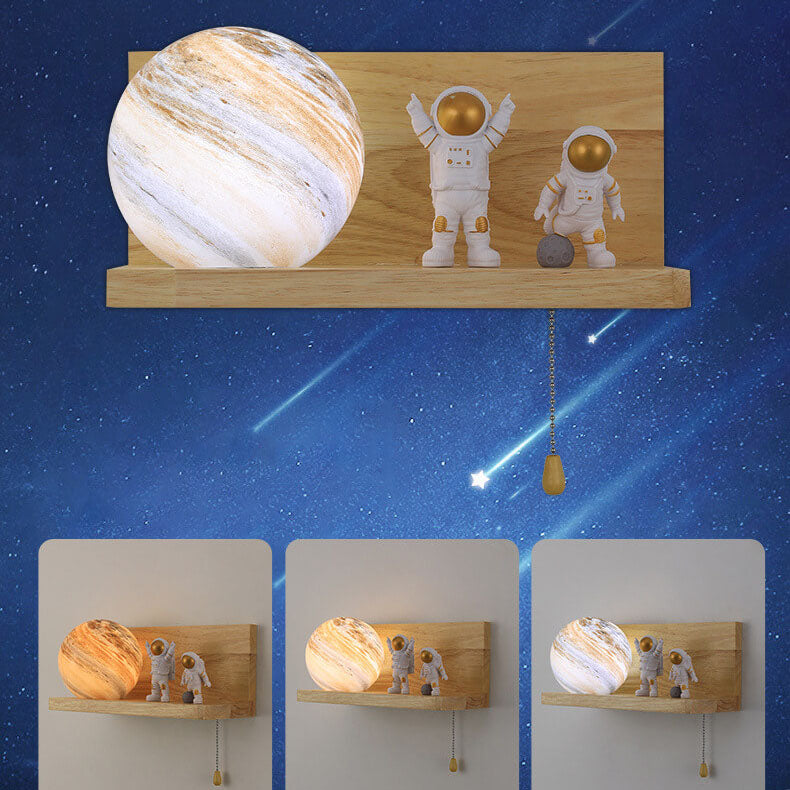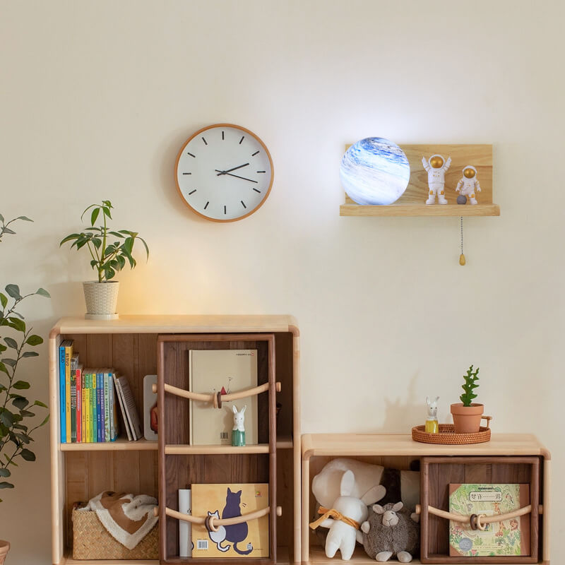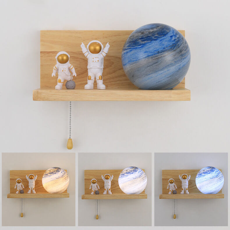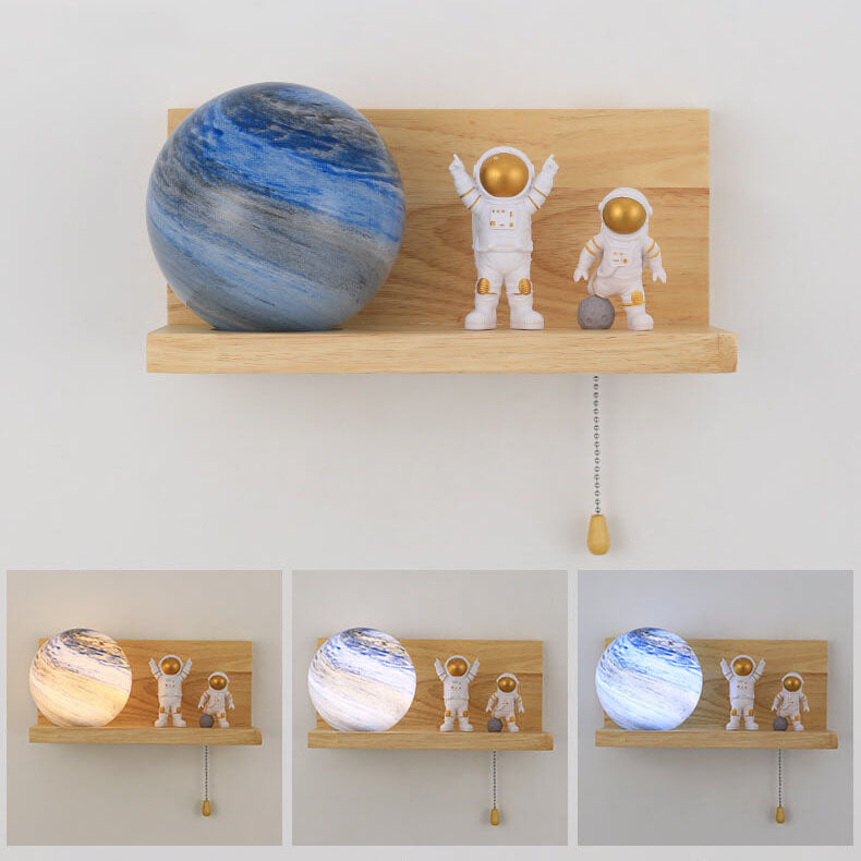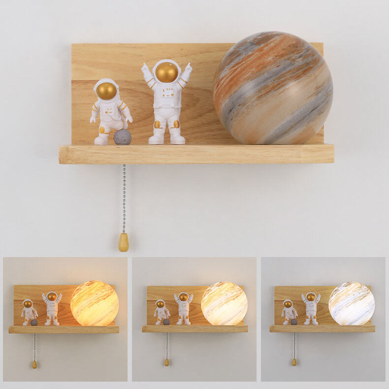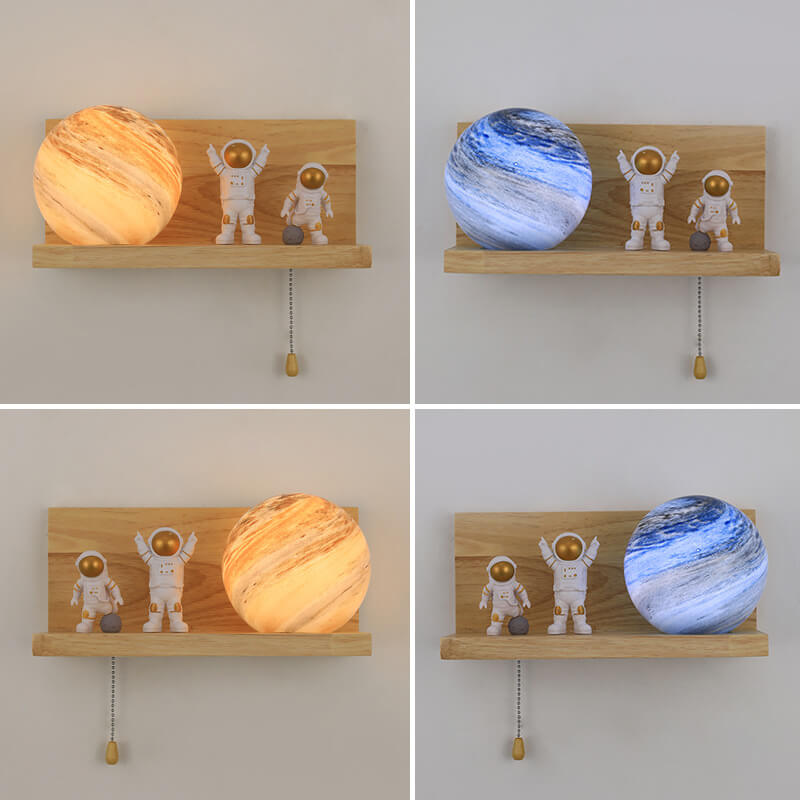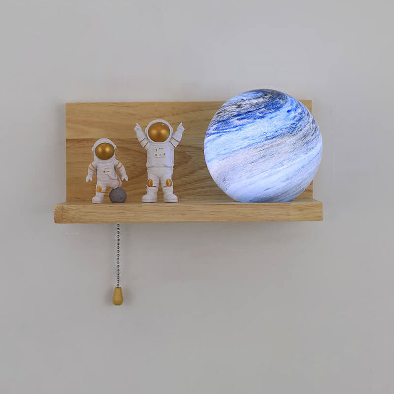 Modern Creative Planet Glass Solid Wood Square Base 1-Light Wall Sconce Lamp