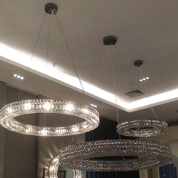 Modern Eclectic Ring Iron Crystal 9/12/16 Light Chandelier For Living Room