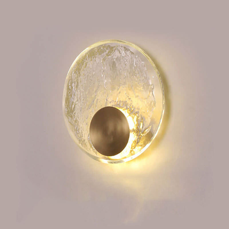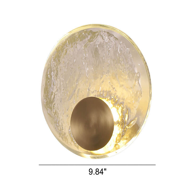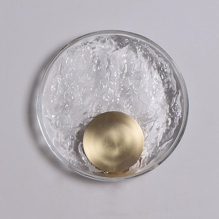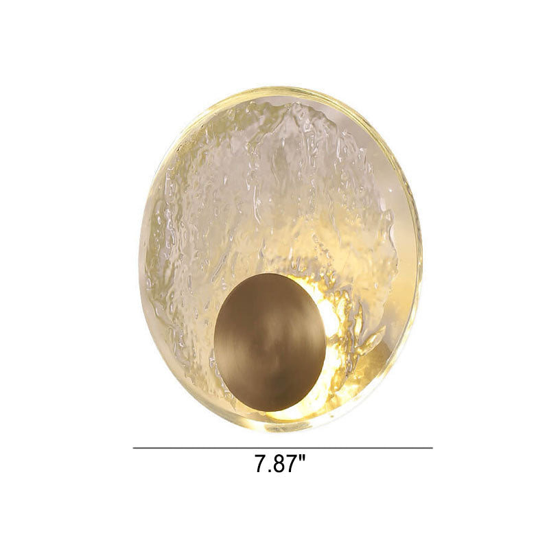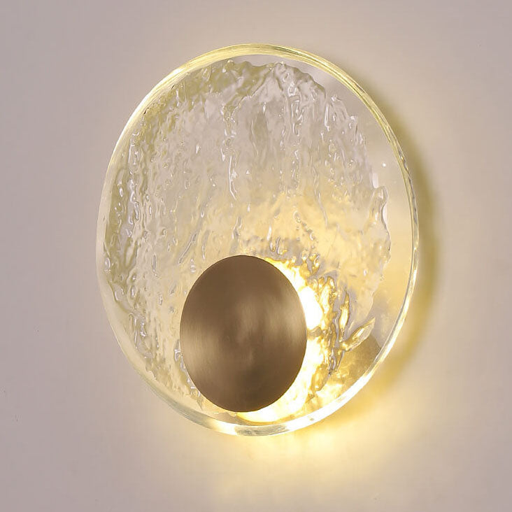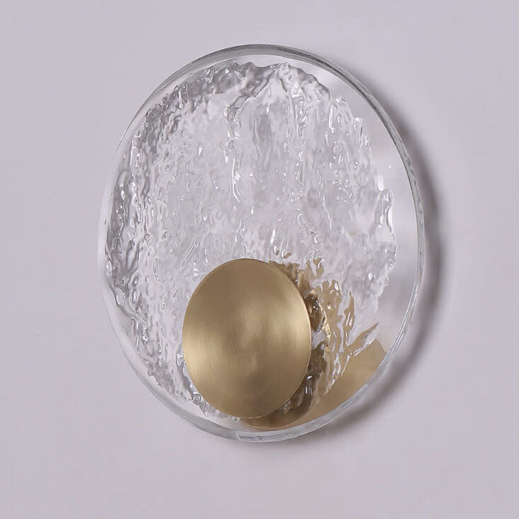 Modern Ice Cracked Glass Copper Round LED Wall Sconce Lamp