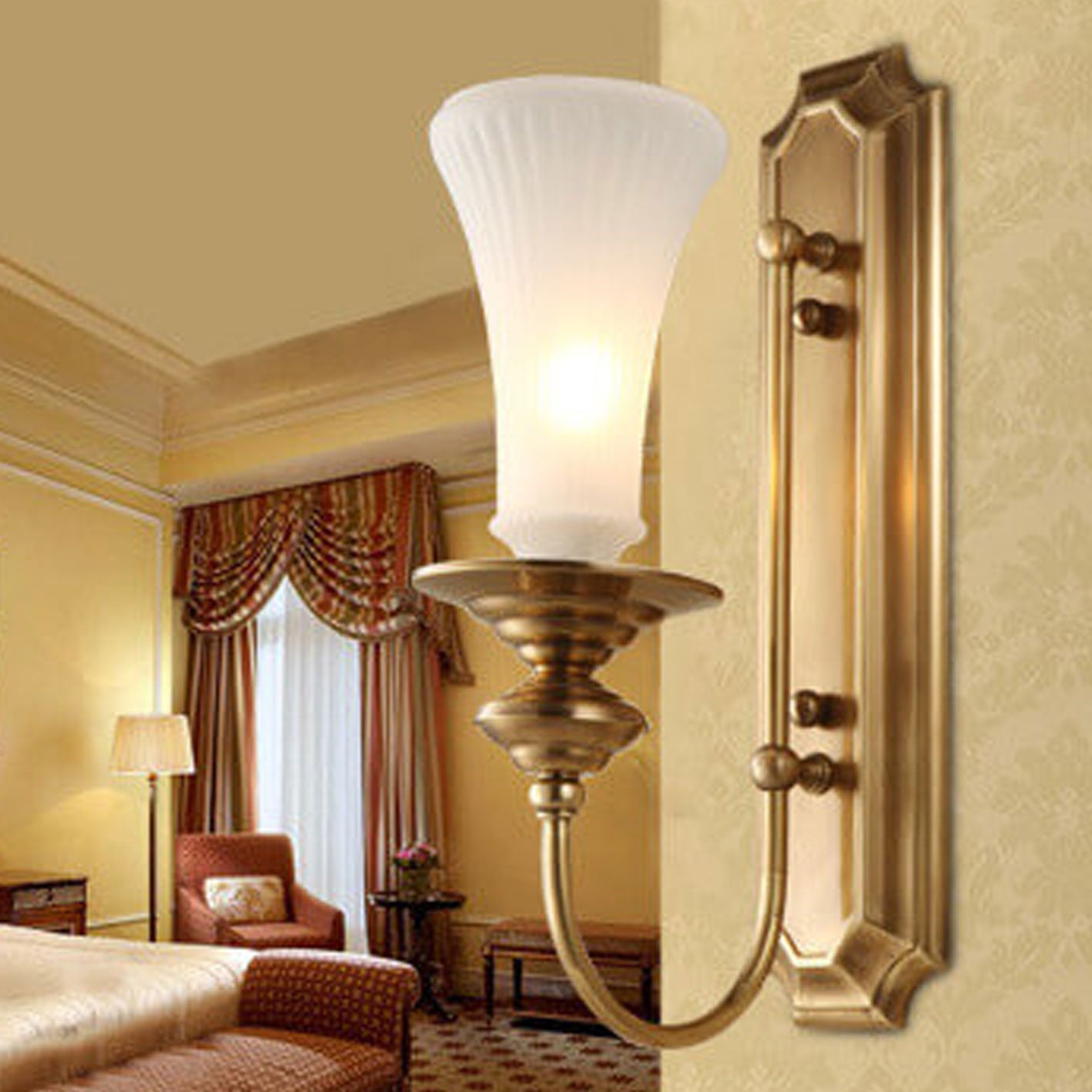 Modern Light Luxury All Copper Glass Petals 1/2-Light Wall Sconce Lamp